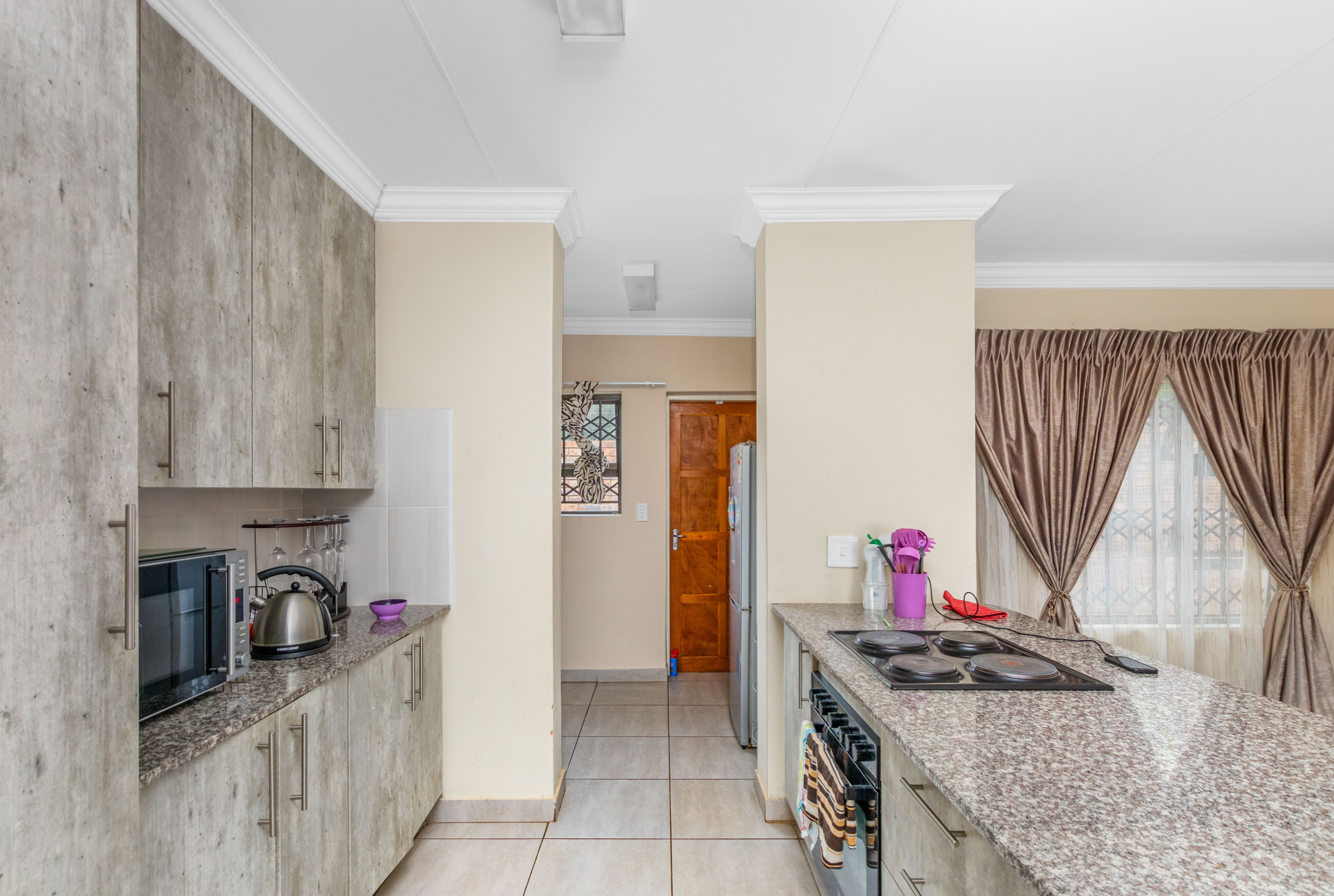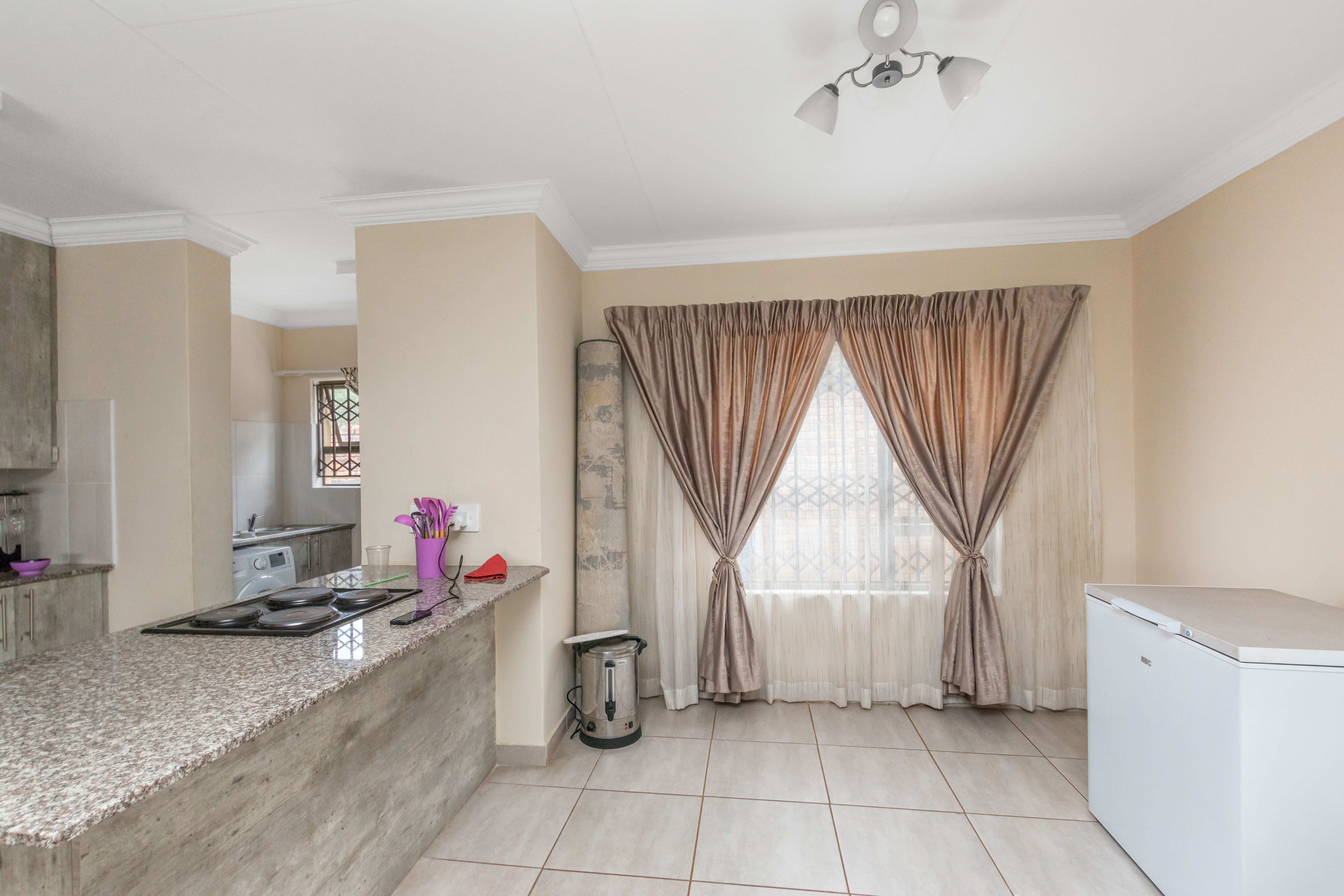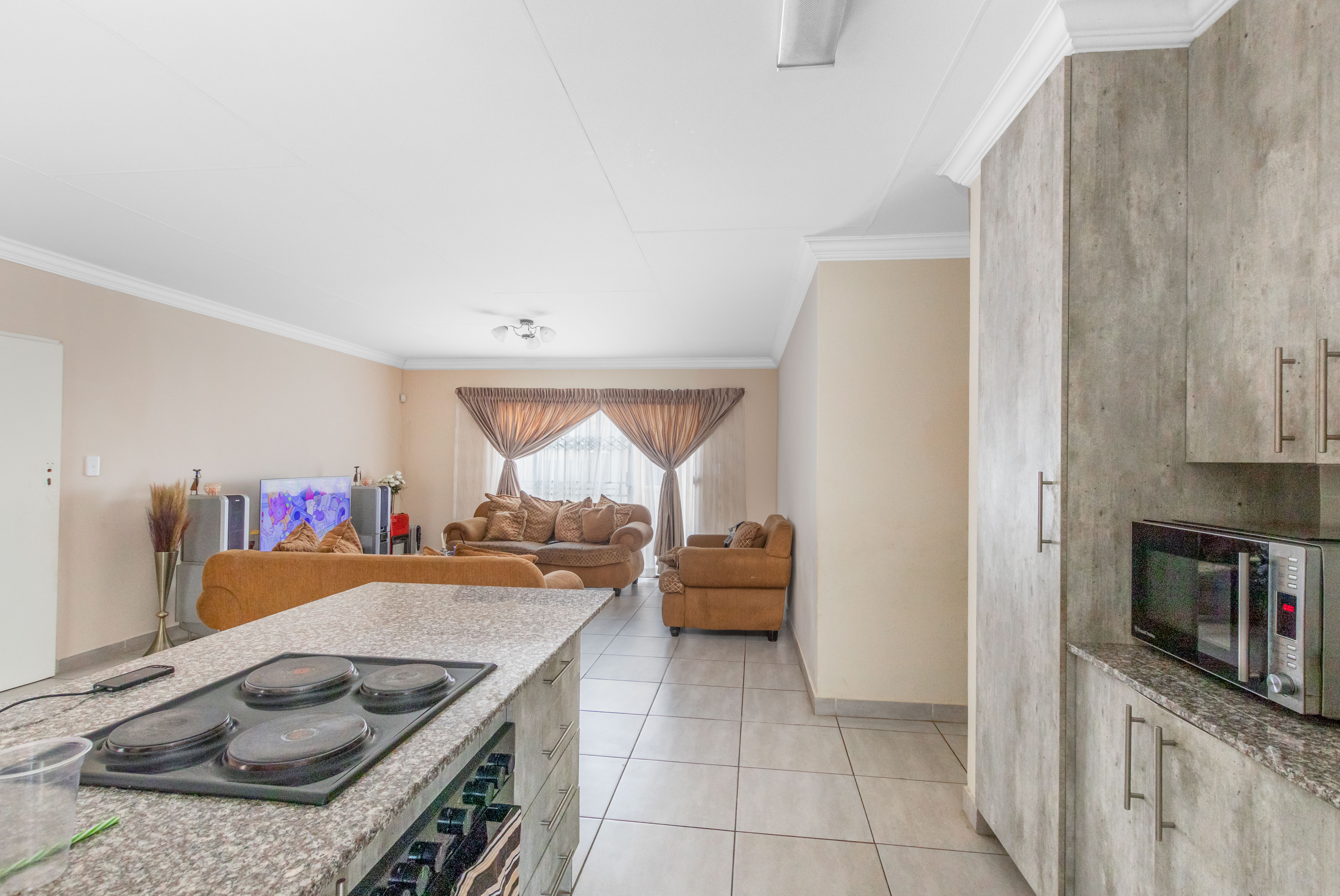 Experience luxury and modern living in this stunning 3-bedroom corner house, ideally located in the highly desirable Perez Estate. This home seamlessly blends sophistication, comfort, and convenience to offer a lifestyle beyond compare. As you enter, you are welcomed by open-plan living spaces that are bathed in natural light, creating a warm and inviting atmosphere. The kitchen, designed with elegance and functionality in mind, features beautiful granite countertops, a cozy breakfast nook, and a separate scullery for added practicality. Stylish tiling throughout the home enhances the sense of space and cleanliness. The two well-appointed bathrooms strike the perfect balance between luxury and convenience, each offering both a bath and a shower. The master bedroom is a true retreat, complete with a private en-suite bathroom, providing the ultimate in comfort and privacy. This corner home also boasts a spacious single garage and a carport, ensuring ample parking for multiple vehicles. The yard has been thoughtfully paved for low maintenance, while still providing room for additional parking, making it both practical and visually appealing. With meticulous landscaping and a well-maintained exterior, this home offers a seamless blend of style and easy living. It’s an ideal choice for modern families looking for a space that offers both elegance and functionality. This exceptional property in Perez Estate is truly a must-see. Don’t miss the opportunity to make this beautiful home yours and embrace a lifestyle that combines comfort, convenience, and sophistication.