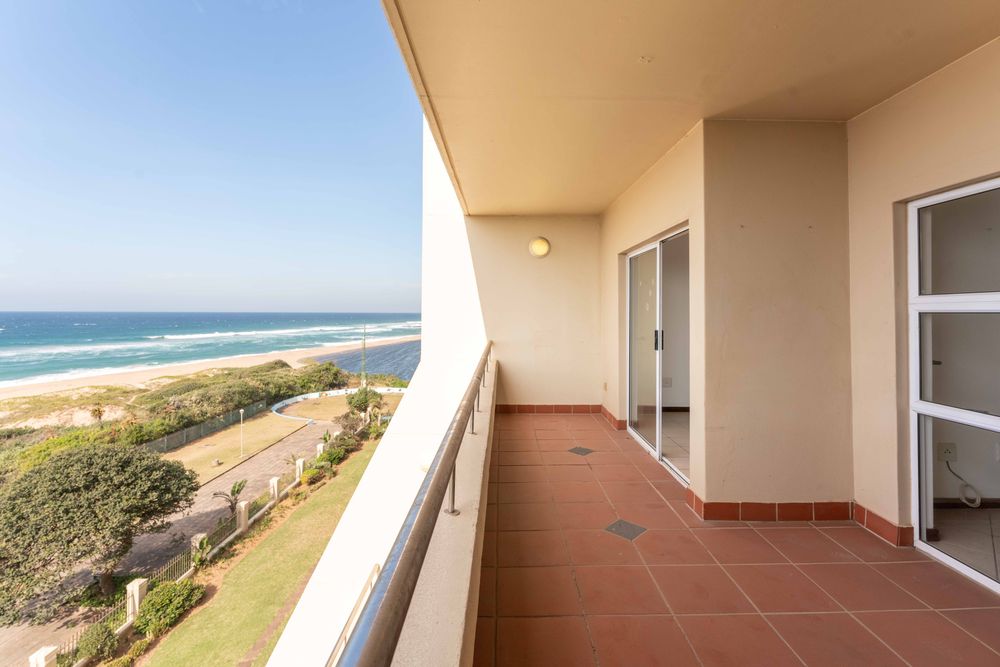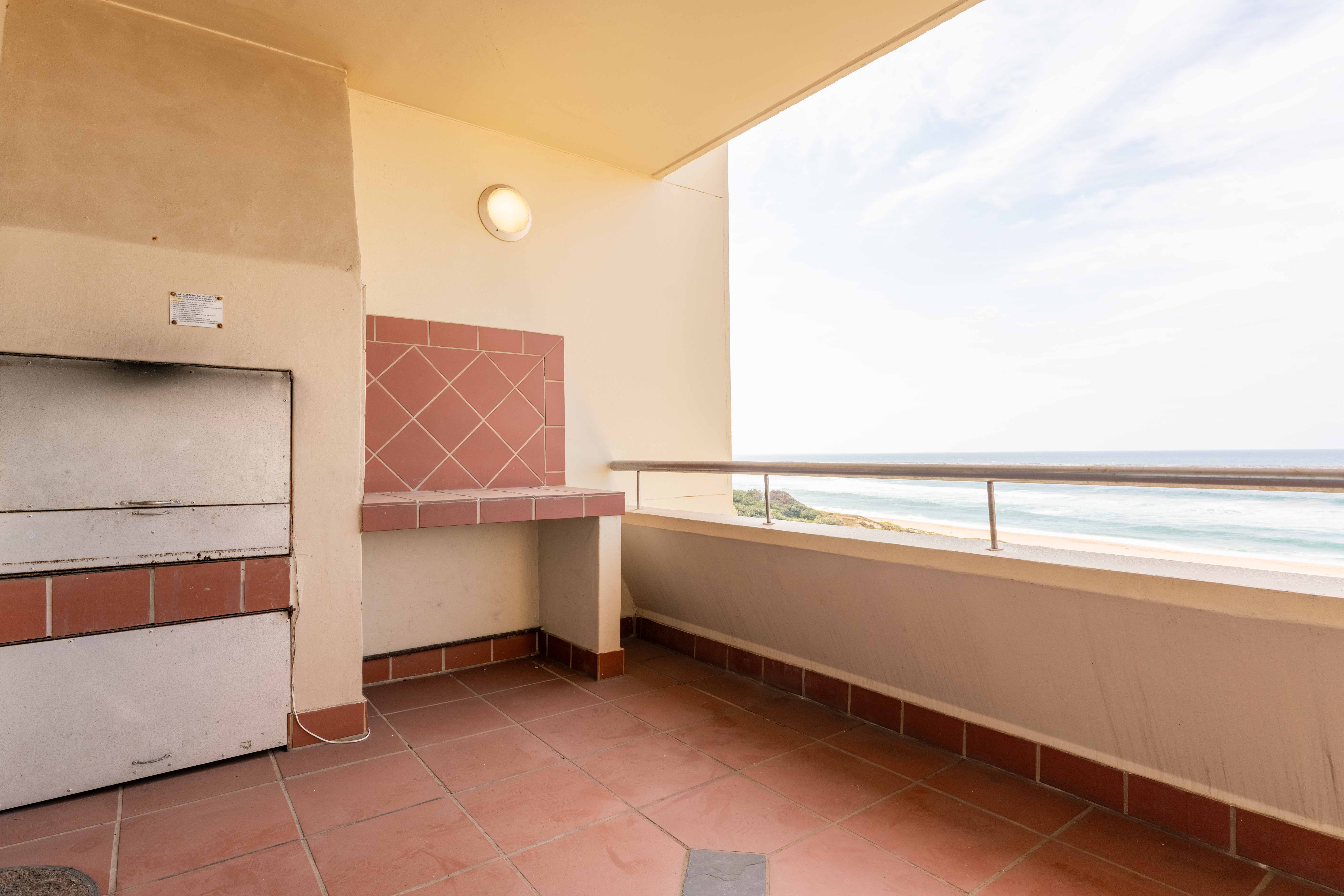 This fully tiled gem, located on the 4th floor of the sought-after L'Escalier Cabanas, offers a prime beachfront location in Amanzimtoti. It boasts breathtaking ocean and beach views, with a spacious open balcony featuring a built-in braai accessible from both the lounge and the master bedroom. The apartment includes two more bedrooms, two bathrooms (with the main bedroom having an en-suite), and a contemporary kitchen with granite countertops and a fitted stove. There's also a designated area for a dishwasher. Residents can enjoy the two inviting swimming pools and the deck area for picnicking between the pools or take a stroll directly onto the beach.