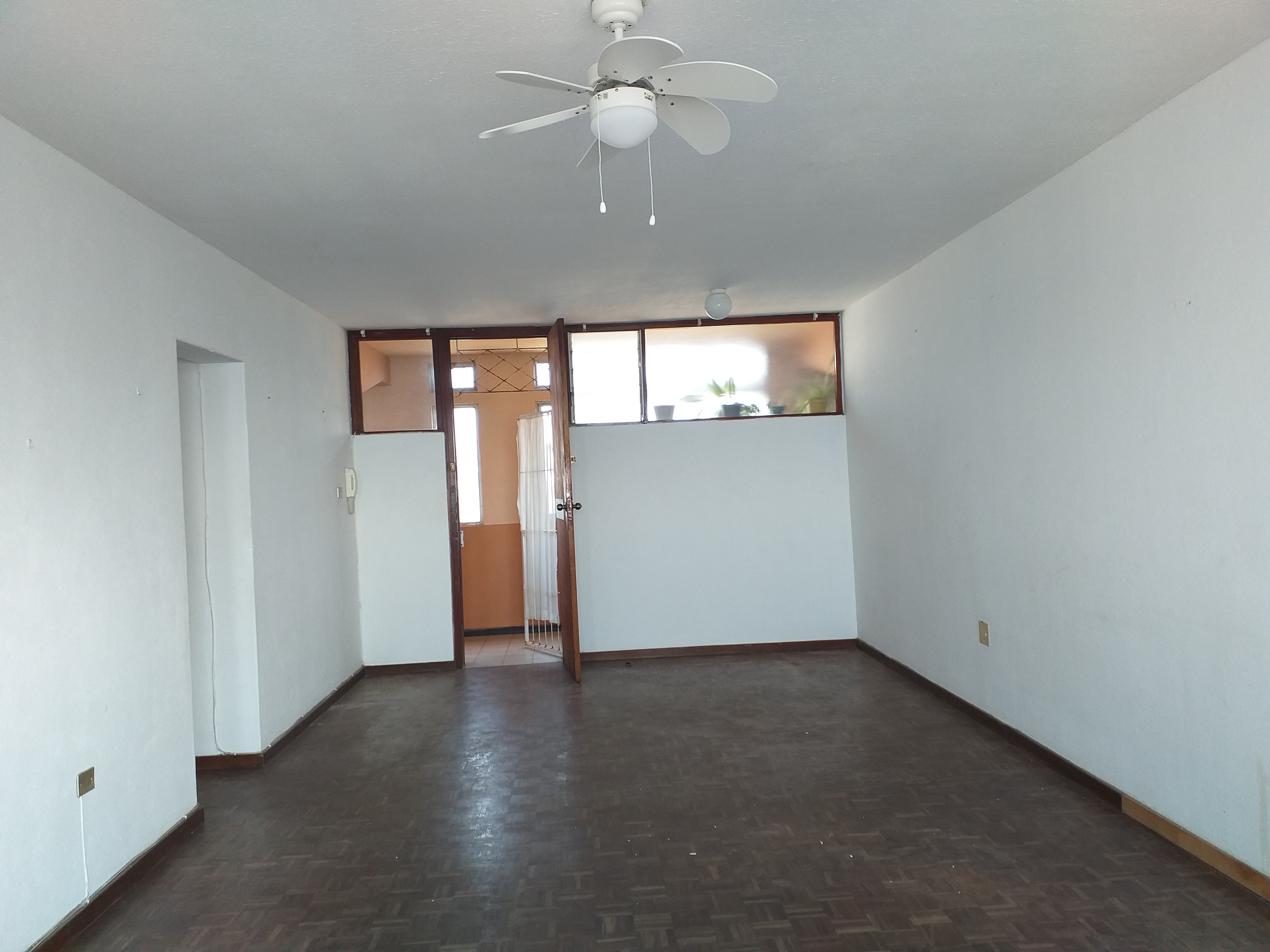 The apartment features a spacious open-plan lounge and dining area. The kitchen is separate and includes a built-in cupboard.