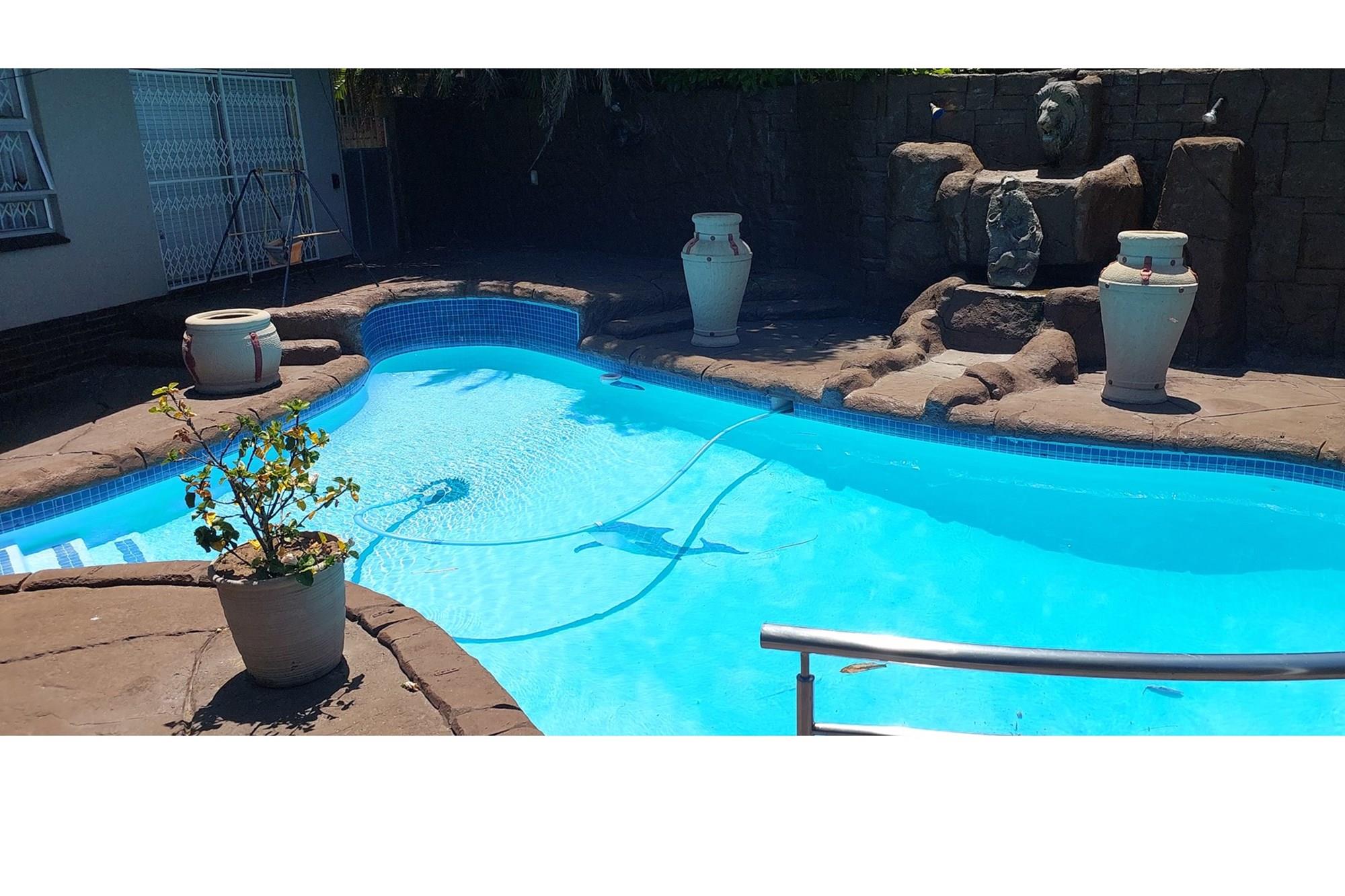 This Spacious 4 bedroom home is in a sought after area. A rare home to find from the art of the kitchen to the elegance of the entire house leading to your entertainment area. The modern granite fitted kitchen is a dream for any chef, with fully built in cupboards, breakfast nook and scullery. A huge lounge that has a sliding door into the balcony and a dining room. The main bedroom opens into the pool area and features a spacious walk in closet with an n 'suite and jacuzzi. All other bedrooms have fully built in cupboards and aircons for those humid days. All the bathrooms boasts luxurious finishes. This contemporary home is fitted with an electric fence, remote control gate and alarm. This spacious lady with enough entertainment for everyone. The garden is beautiful, with a lovely jungle gym, swing and glistening pool with features that cascade into the pool. For an extra income you have 2 granny cottages that generates an income of R 8000.00 per month, that comprises of 1 bedroom each, a bathroom, open lounge and dining room. There is a double automated garage and ample parking space for 7 vehicles.
