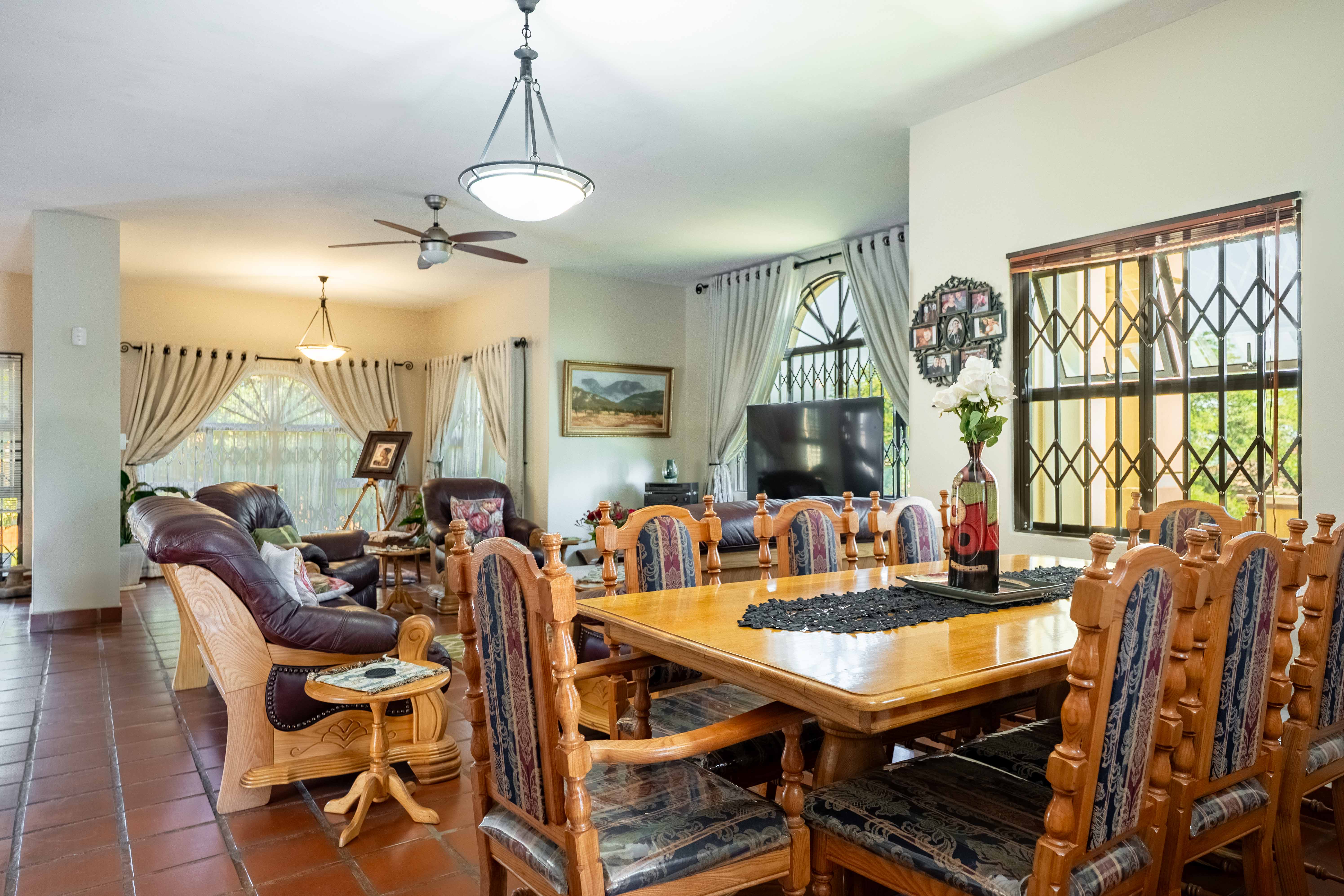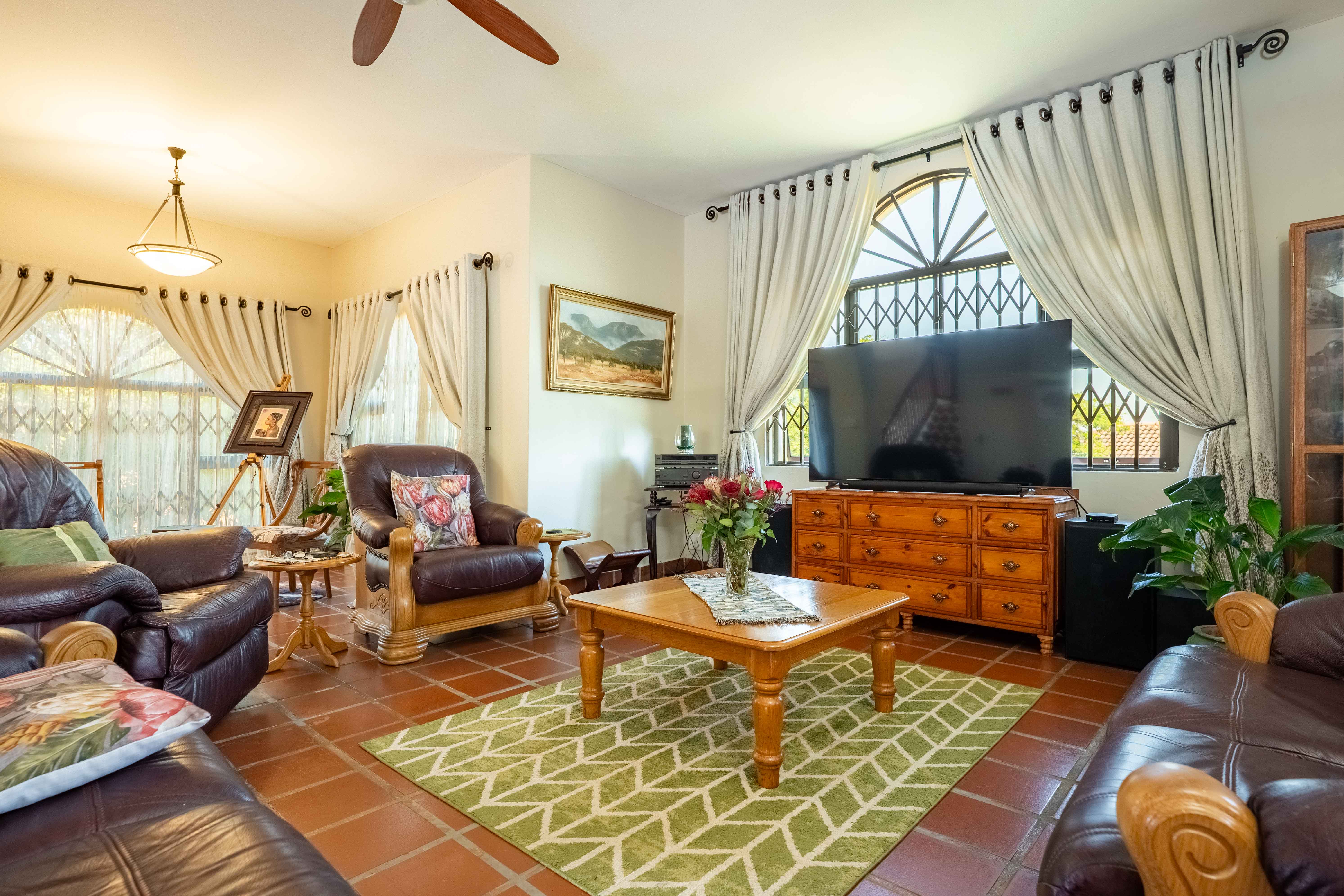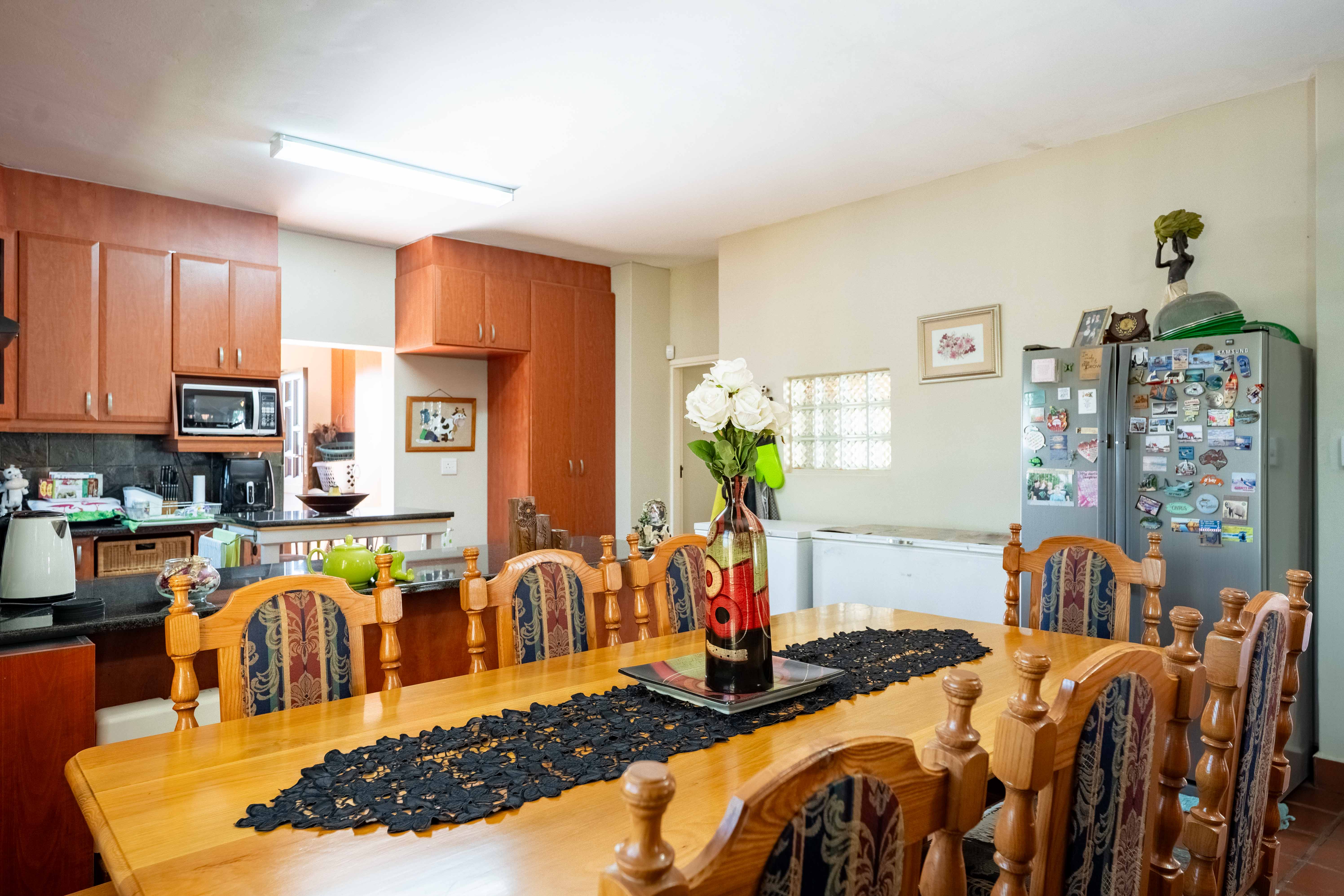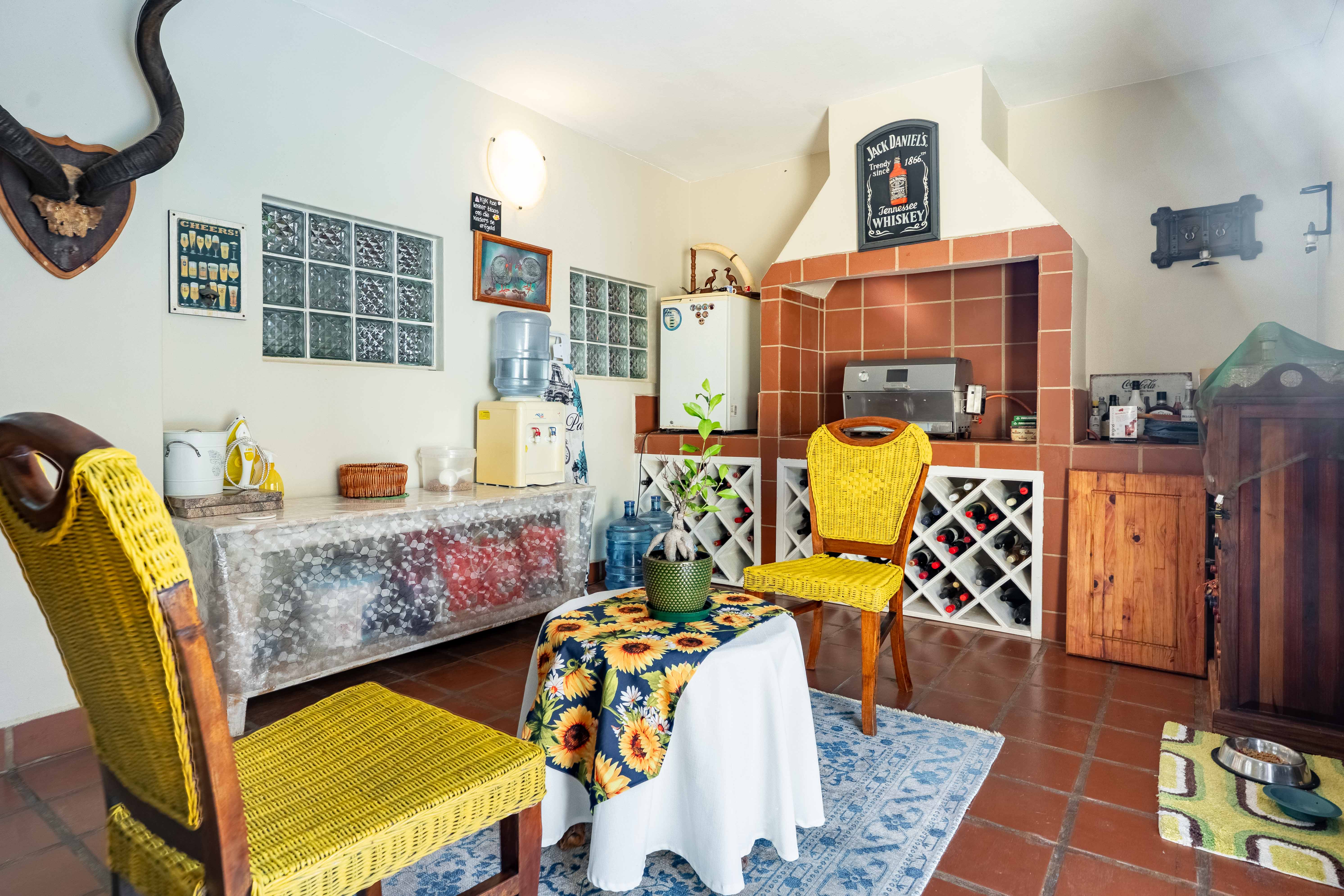 From the moment you step inside, you're welcomed by a striking double-volume entrance hall that flows effortlessly into expansive open-plan living areas. The formal lounge and dining area offer refined spaces for entertaining guests or enjoying family meals, while a guest toilet adds convenience. The heart of the home is the beautiful indoor family/braai room—perfectly designed for year-round entertaining. This airy space features sliding doors that lead directly to a private outdoor haven, complete with a sparkling pool, manicured garden, and built-in braai. It’s an entertainer’s dream, offering seamless indoor-outdoor living and the perfect setup for weekend braais, pool parties, or relaxed evenings under the stars. The kitchen is both stylish and functional, featuring granite countertops, ample cupboard space, and a separate scullery/laundry that leads to a neat backyard with a washing line.