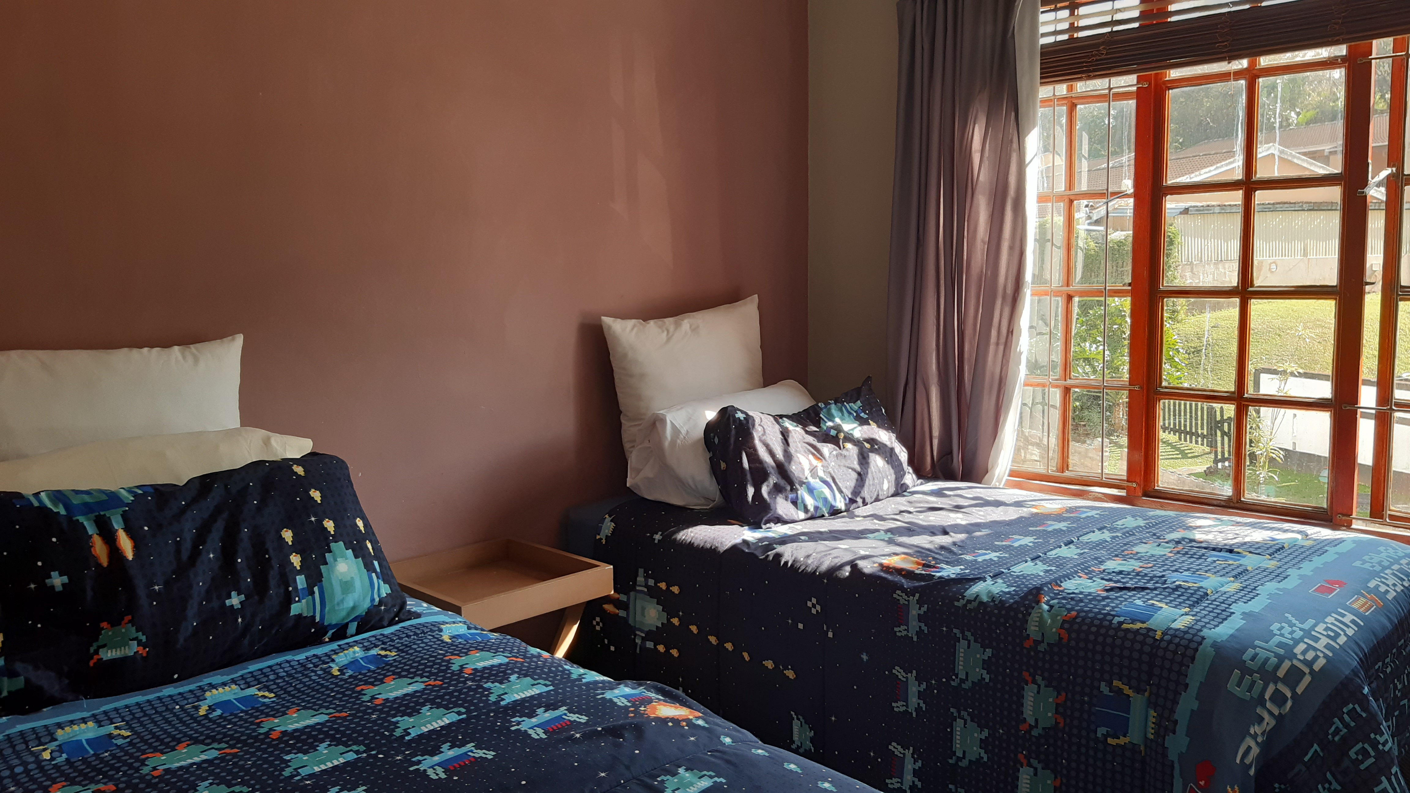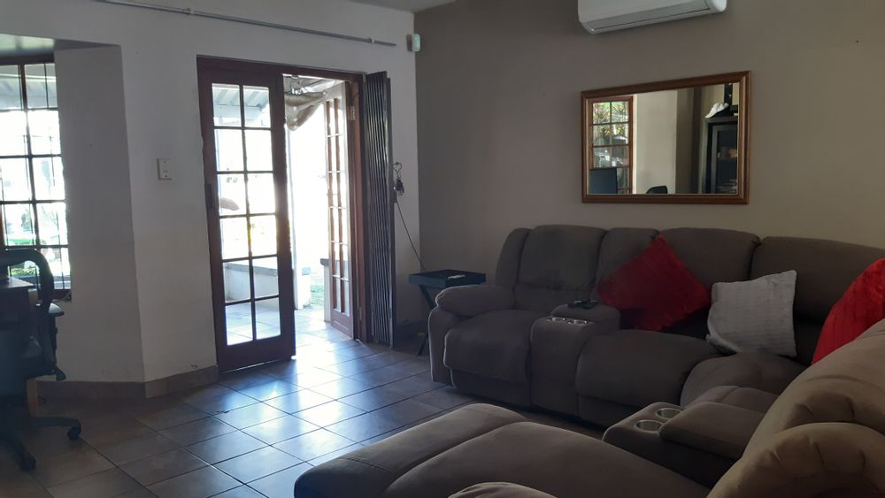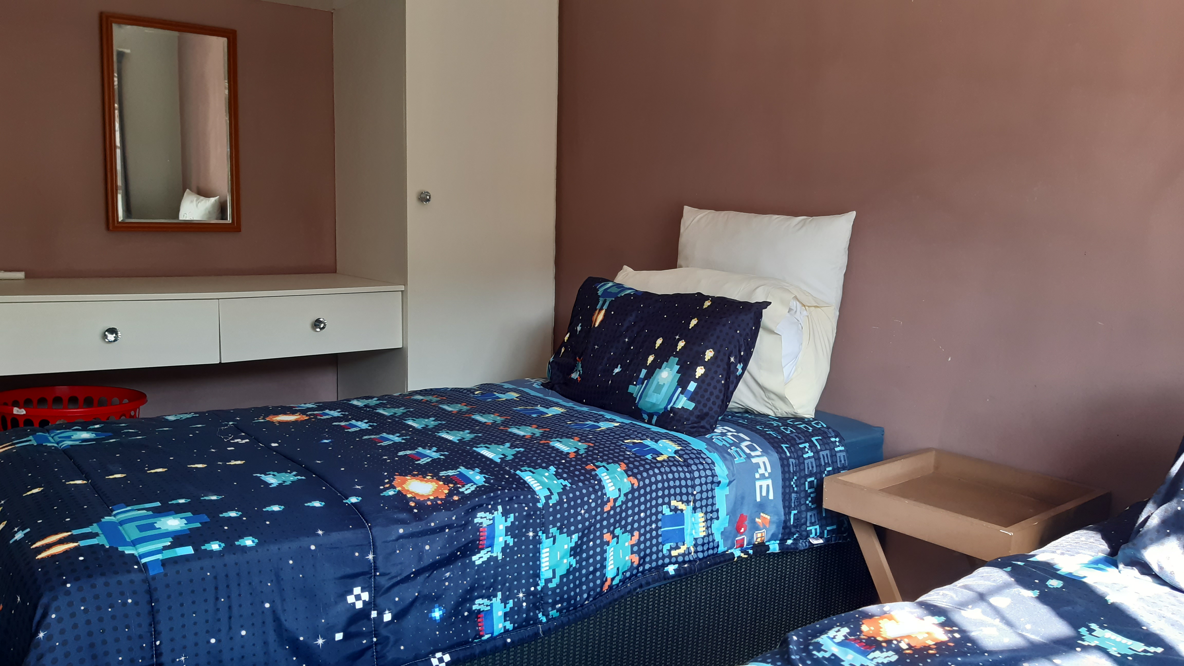 Additional storage includes an indoor space with a ceiling fan and an outdoor utility area that’s equipped with laundry plumbing. The unit offers two dedicated parking bays, is fibre-ready, and has a security system already installed (at the tenant's cost). Water is included in the rental, and electricity is billed via a municipal meter—with prepaid installation pending.