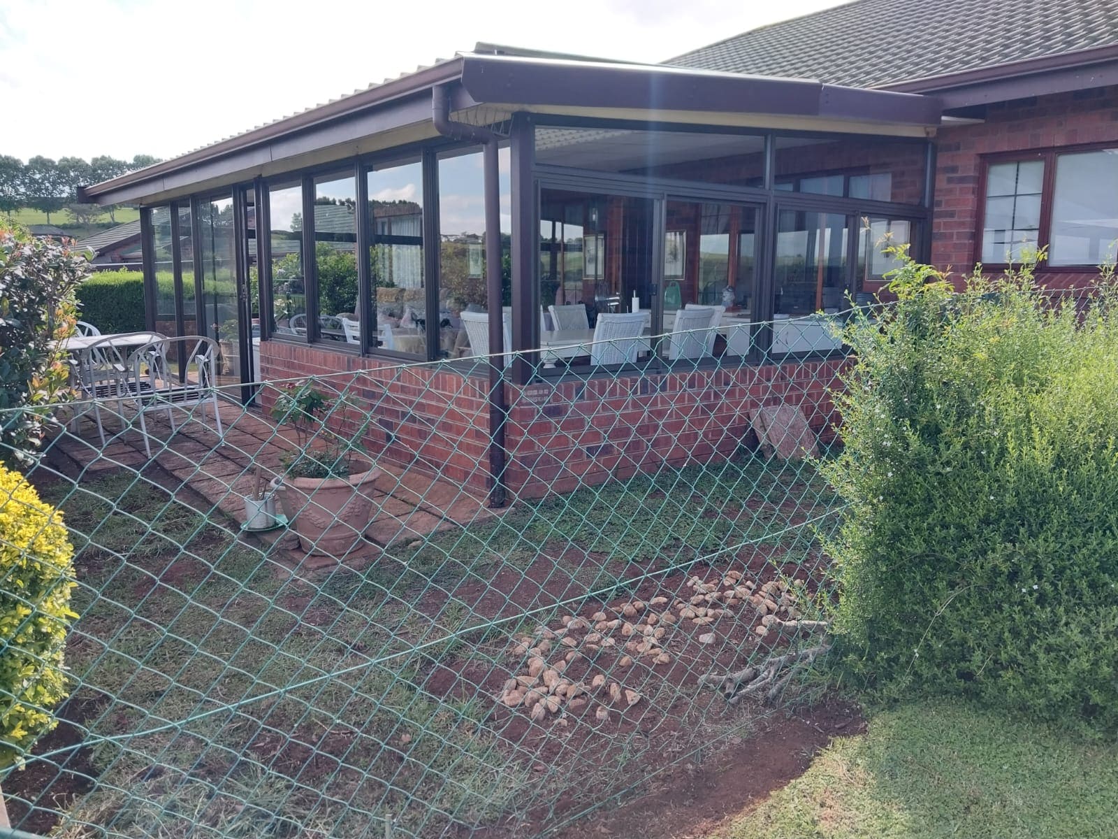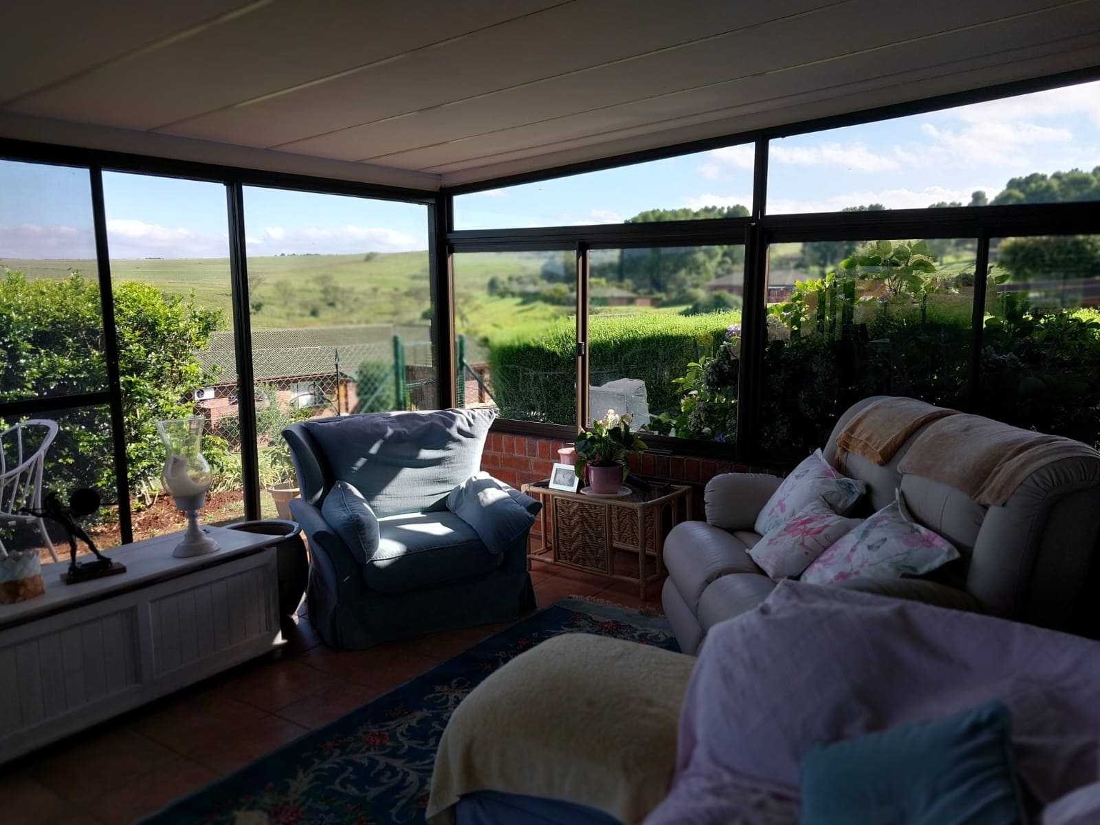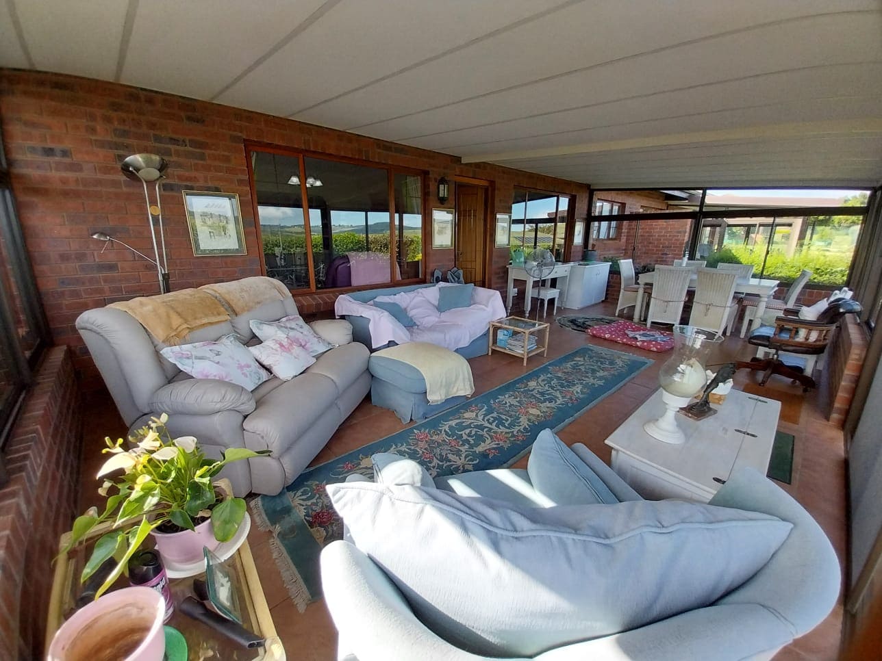 The living area is open-plan and leads out onto a huge, glassed-in front patio which offers spectacular views of the surrounding countryside.