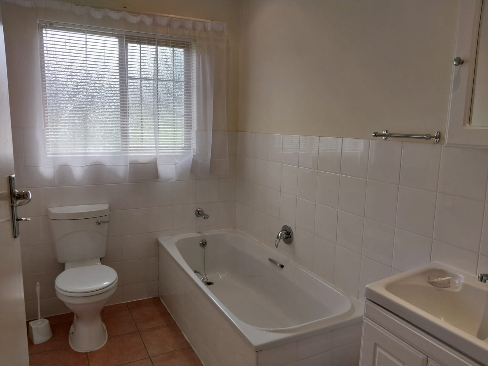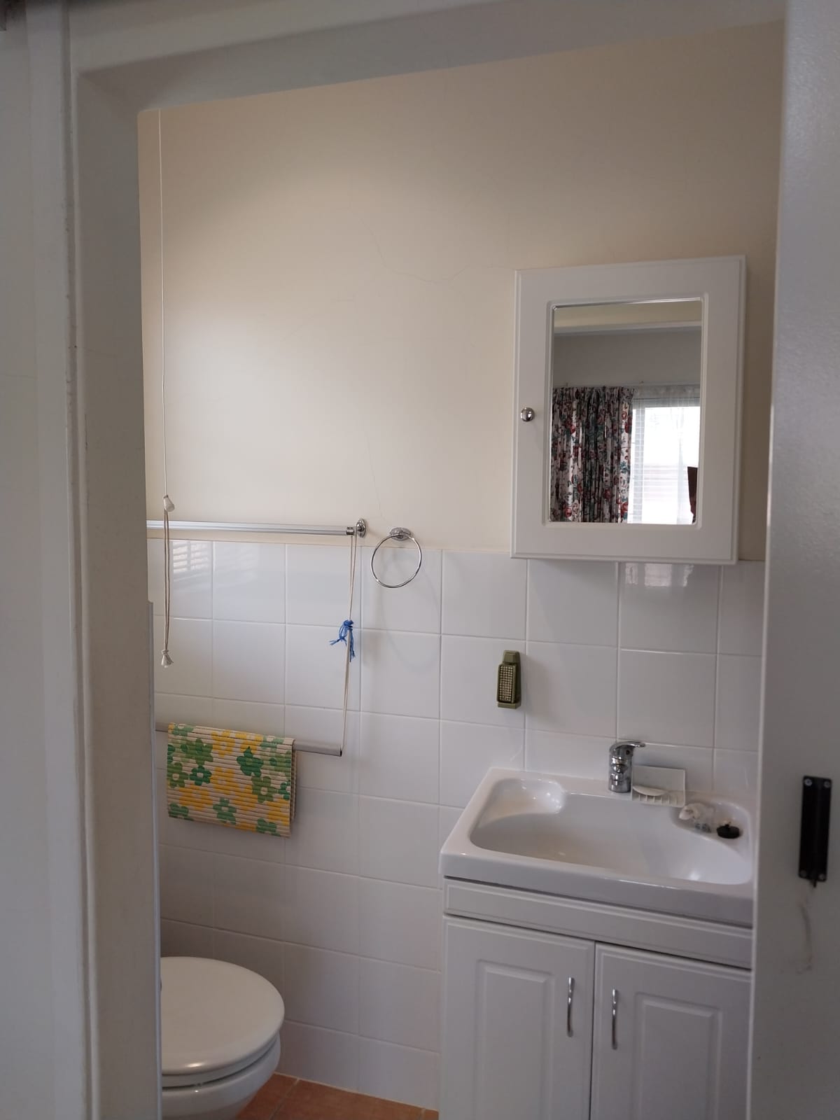 The second bedroom is served by another bathroom with a bath, basin and toilet.