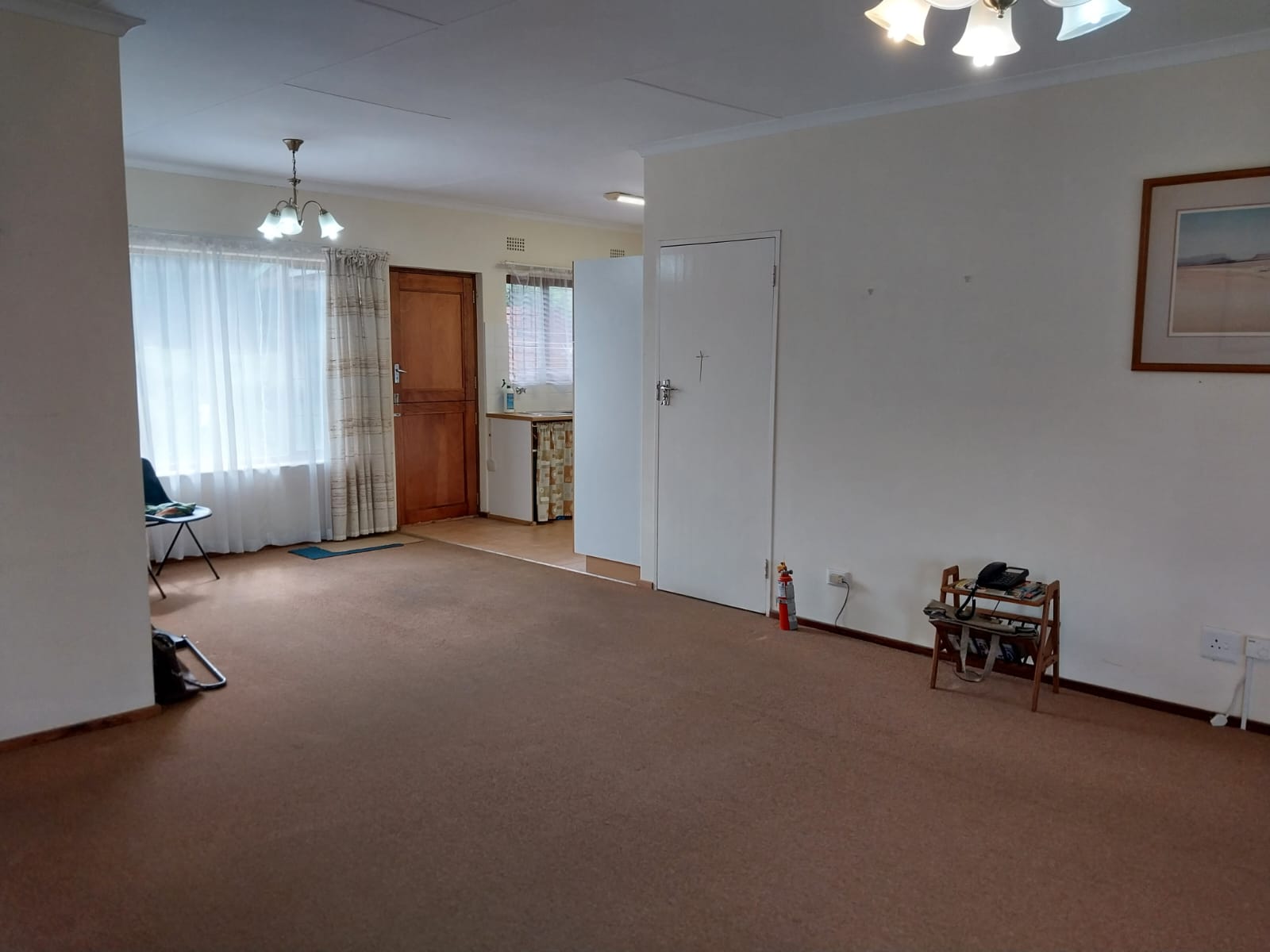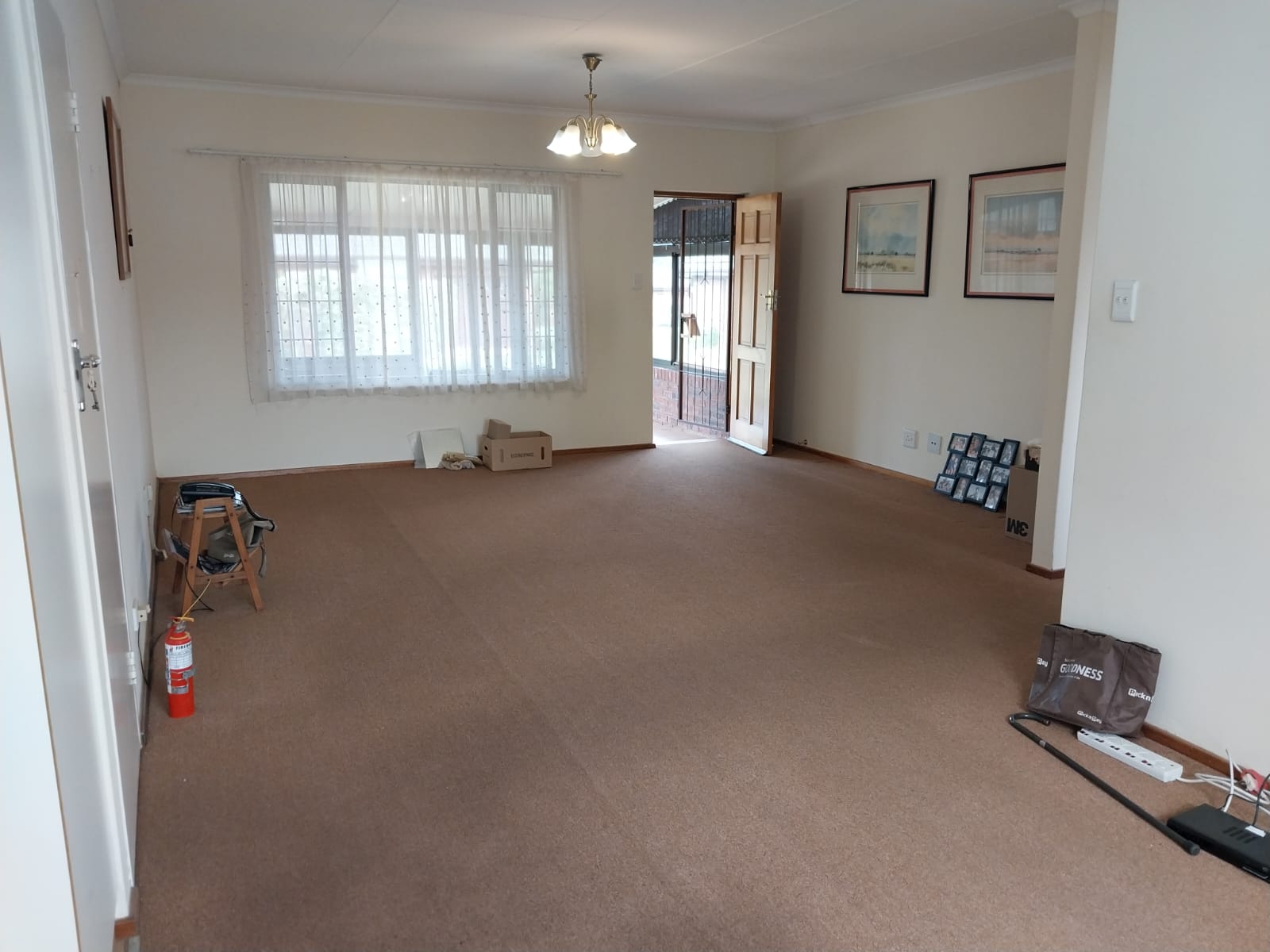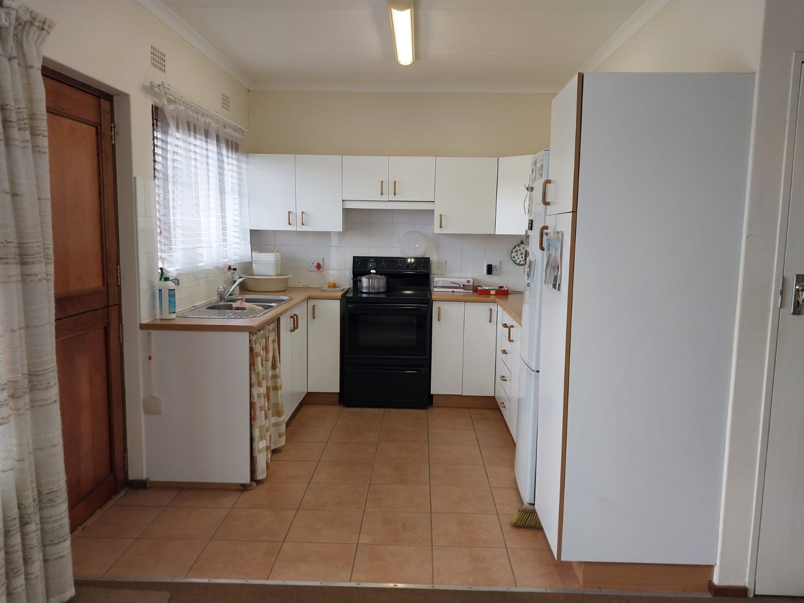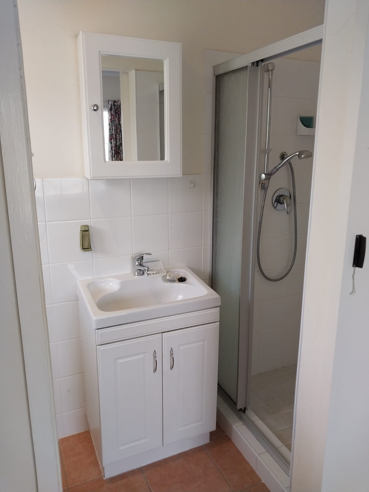 One enters into a spacious and carpeted lounge and dining area which has underfloor heating. This leads on to an open-plan kitchen which has a Free-standing stove and a connection for a dishwasher.