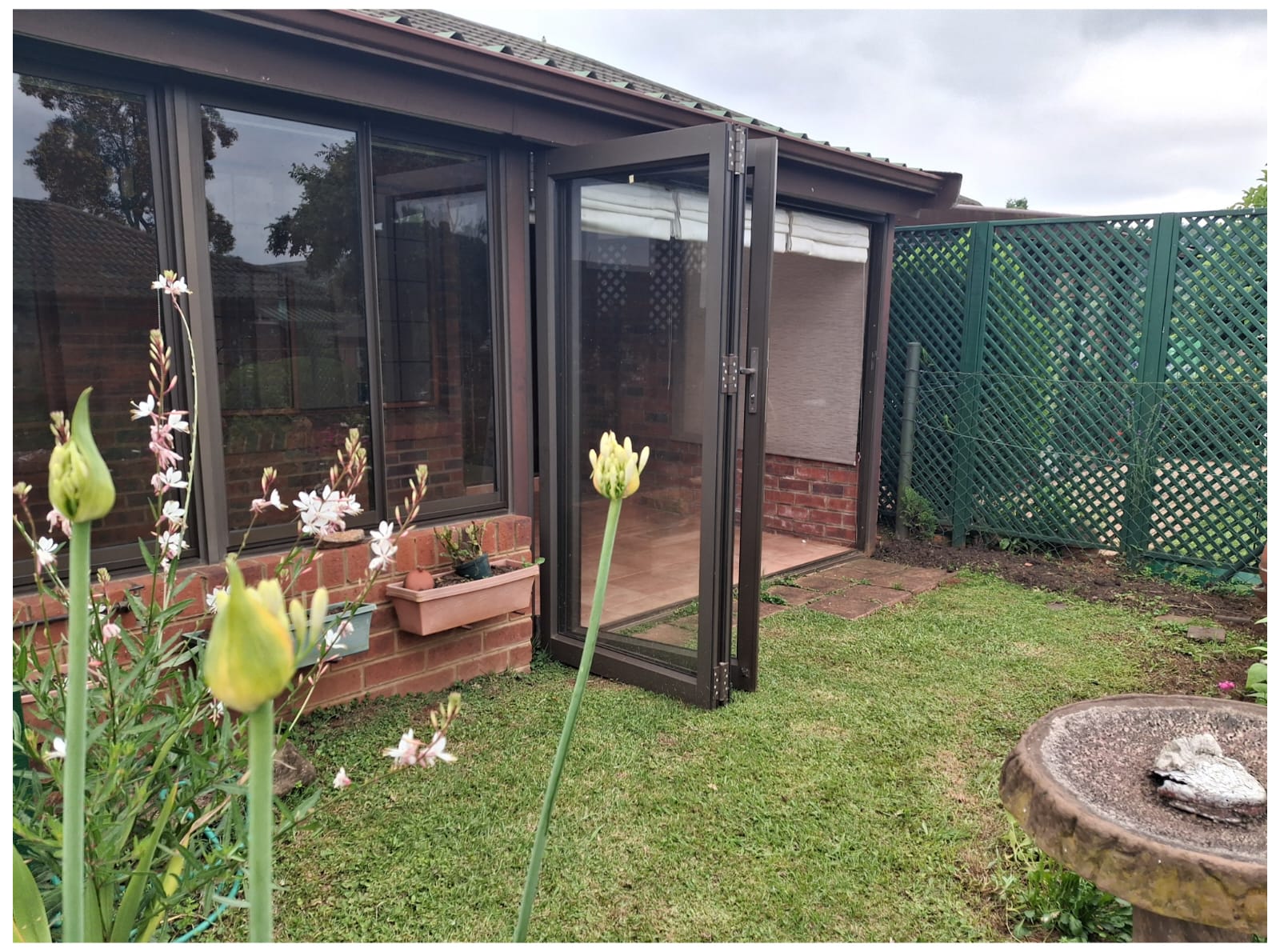 A lounge flows out to a fully enclosed veranda which offers enough space for dining-room table and additional seating. Doors can stack open allowing you to fully enjoy your garden which is fenced and pets are allowed.