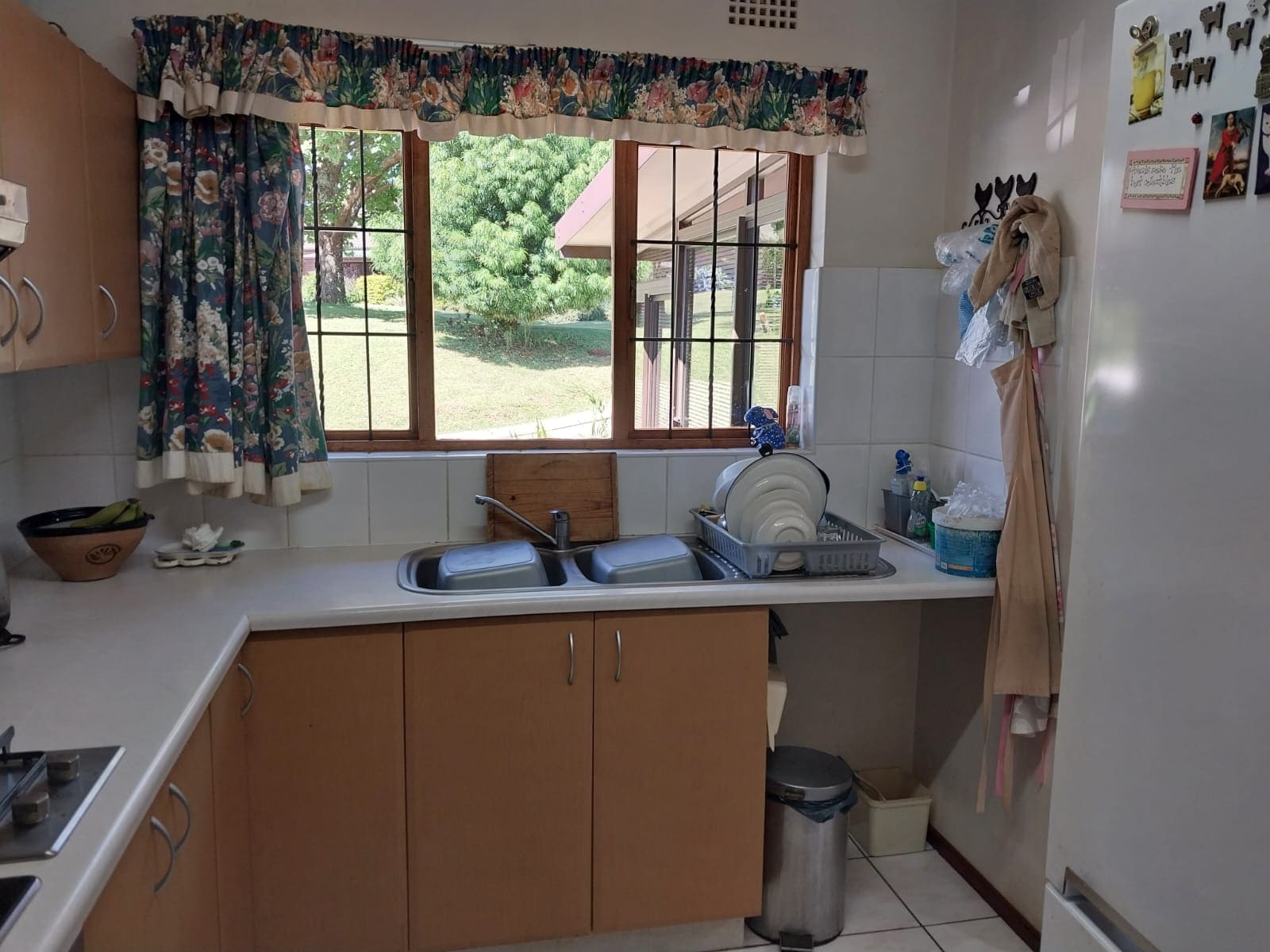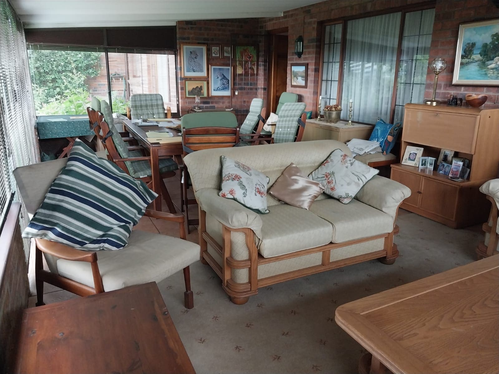 The open-plan lounge and dining room leads out onto a huge, fully glassed-in patio which is ideal for entertaining or just relaxing and enjoying the view. The separate kitchen has a large, walk-in pantry, an electric under-counter oven and hob plus a two-plate gas hob and a connection for a dishwasher.