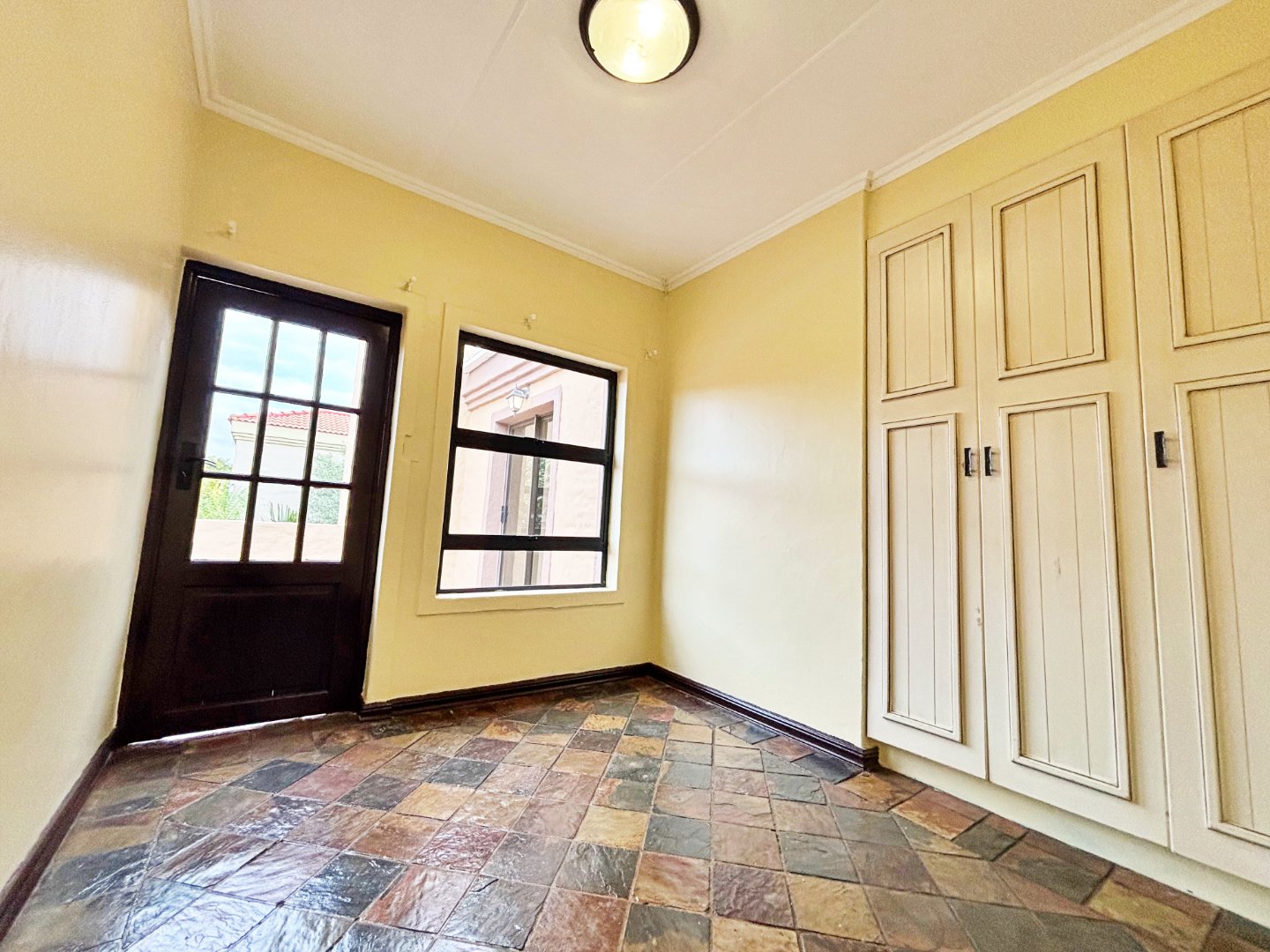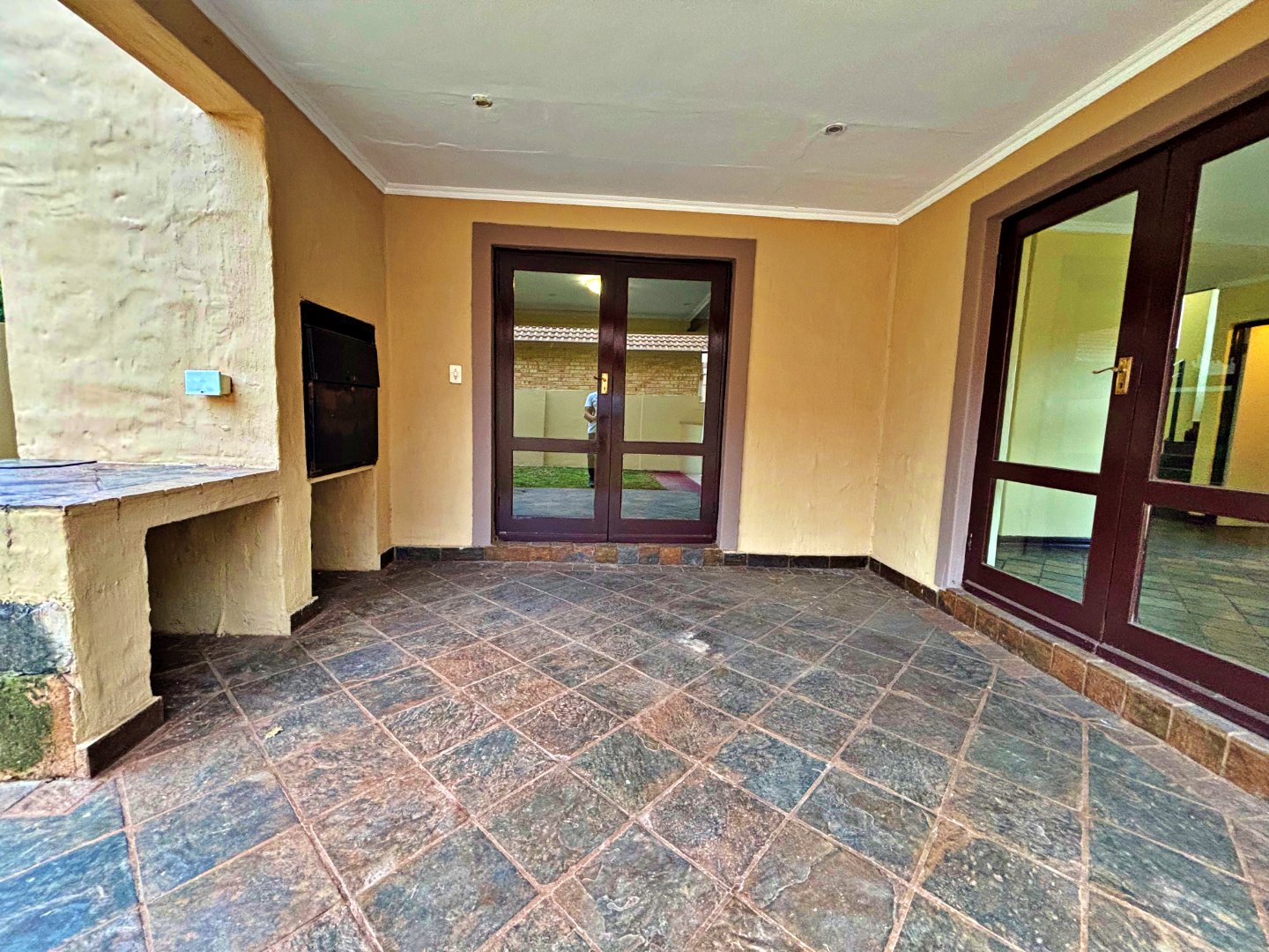 Perfect for entertaining guests, the patio includes a built-in braai and connects seamlessly to the dining room and kitchen area through double doors, allowing for effortless indoor-outdoor living.