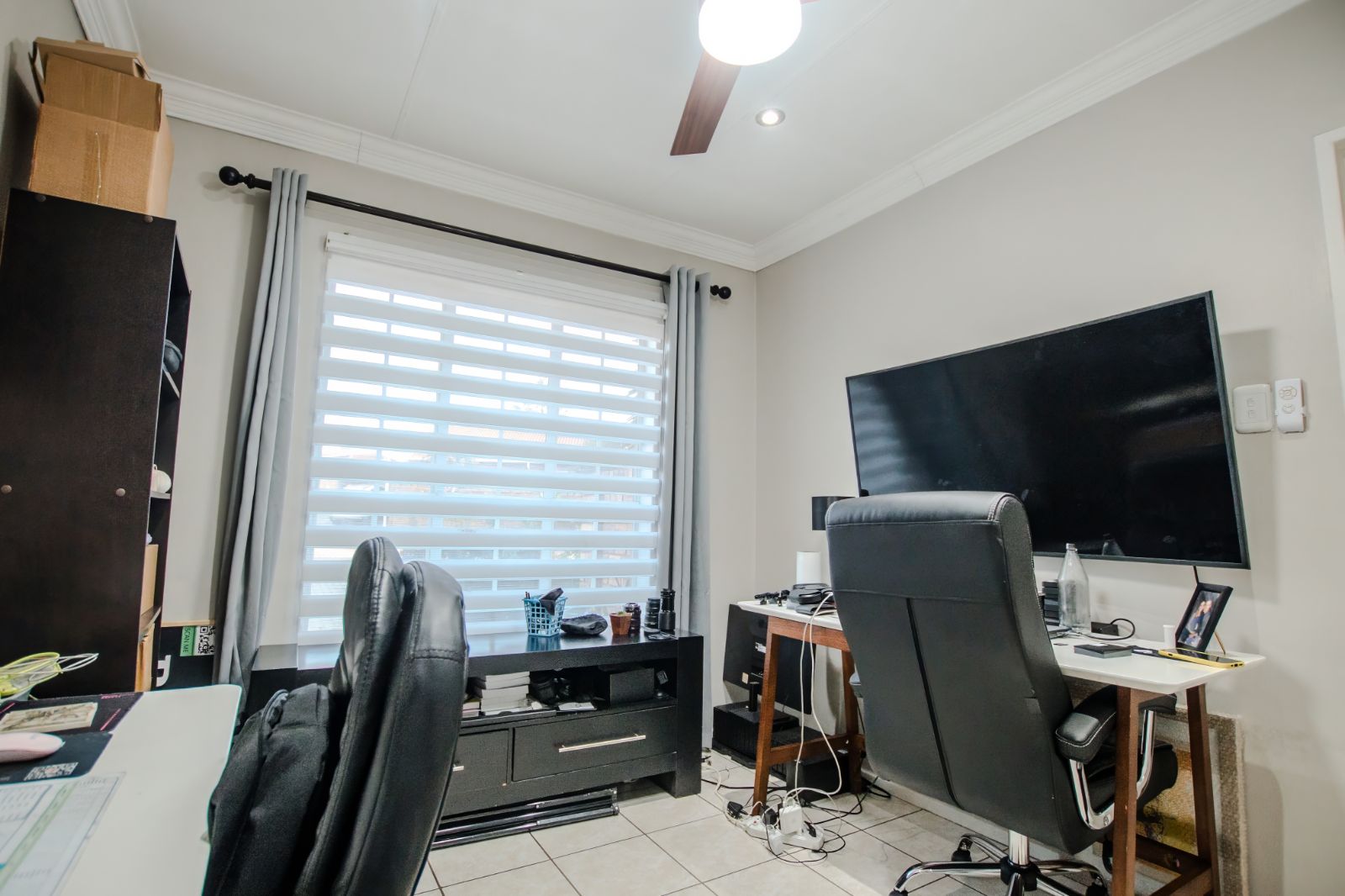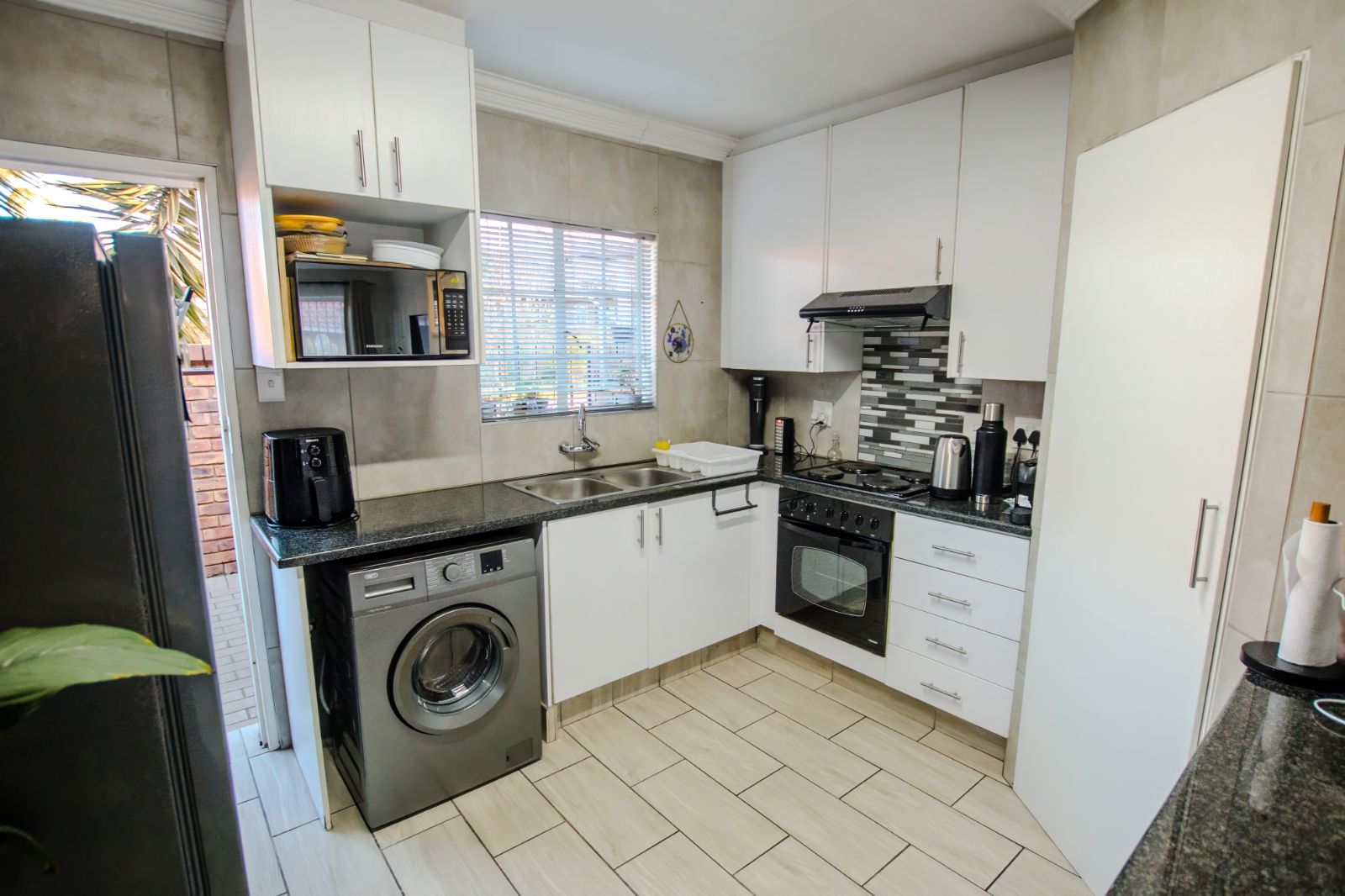 The stylish kitchen is one of the highlights of the property.It features enough space for appliances-something not often found,a sizeable pantry and beautiful flooring.Granite tops,a double zink and a stunning kitchen backsplash rounds it off well.