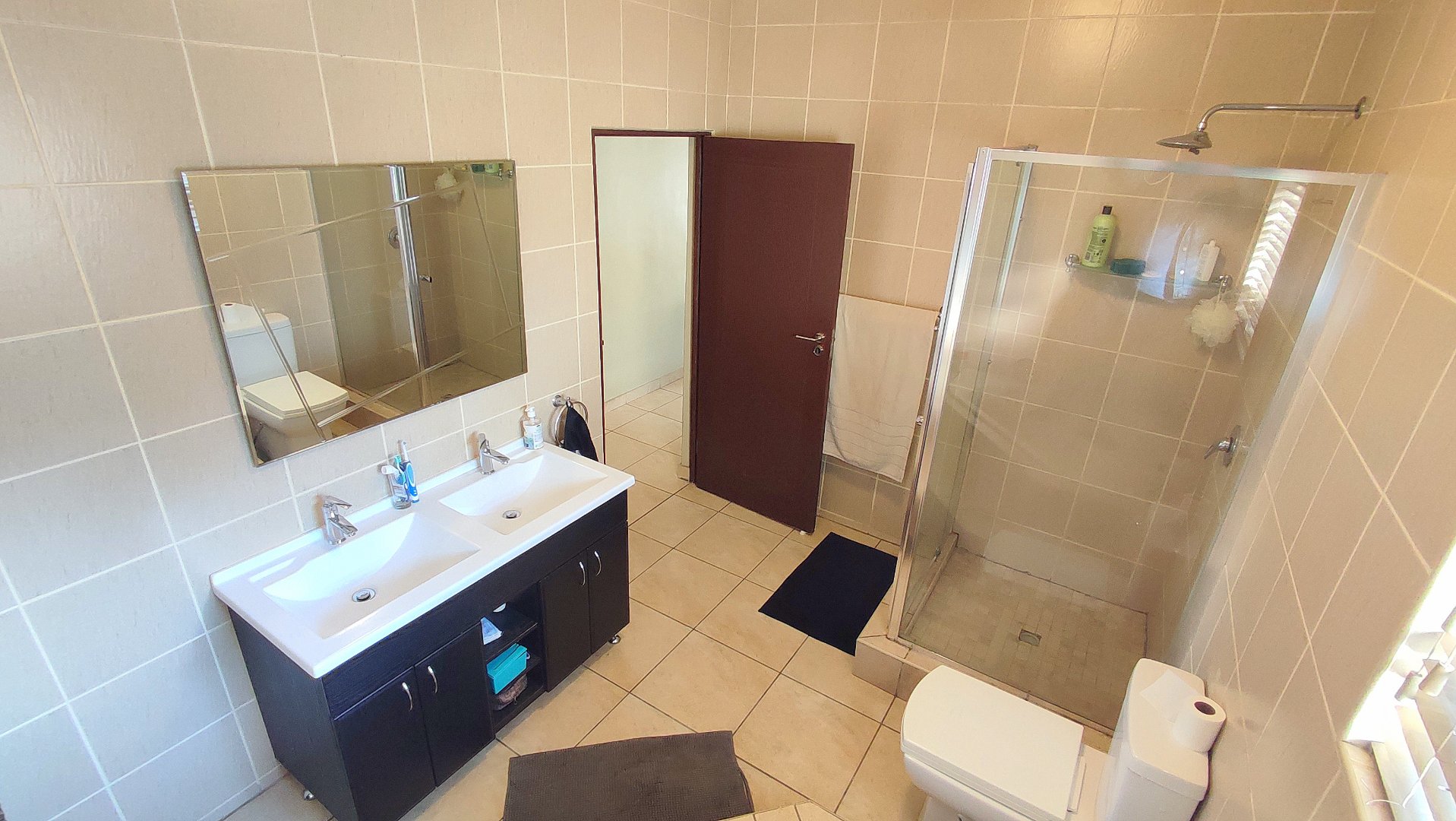 All bedrooms come with built-in cupboards, while the main bedroom features a beautiful en-suite bathroom. The additional bedrooms share a well-appointed guest bathroom nearby.