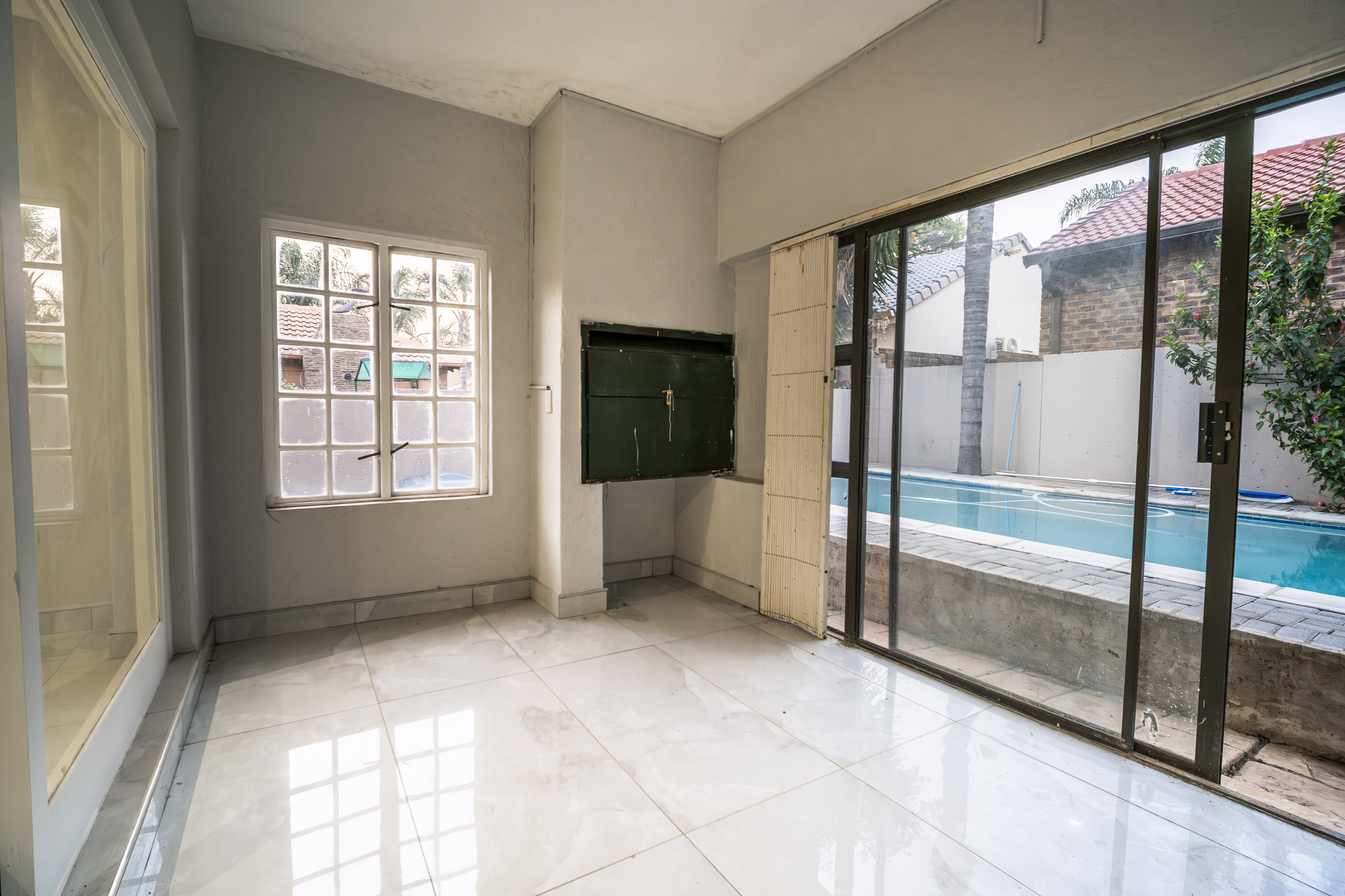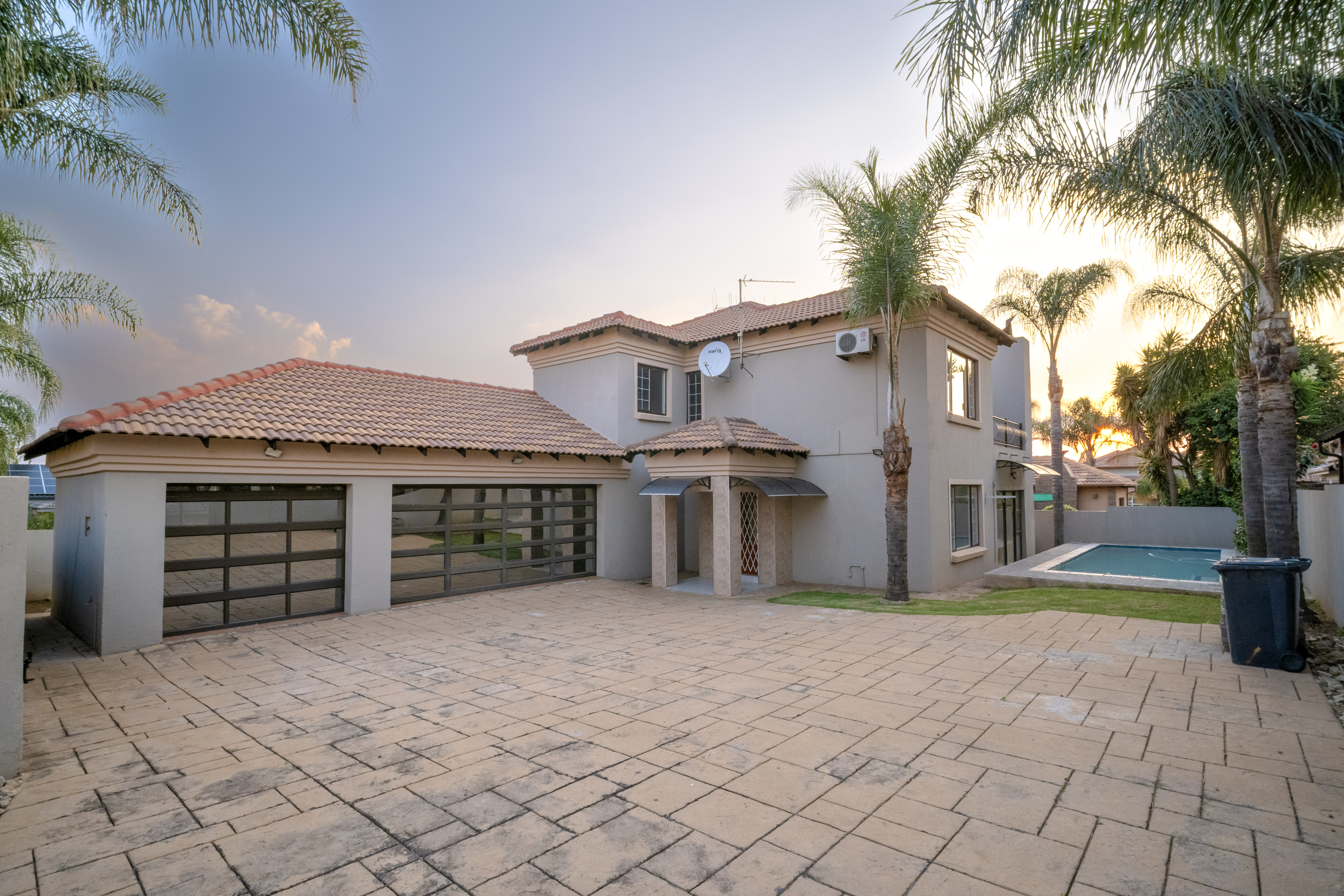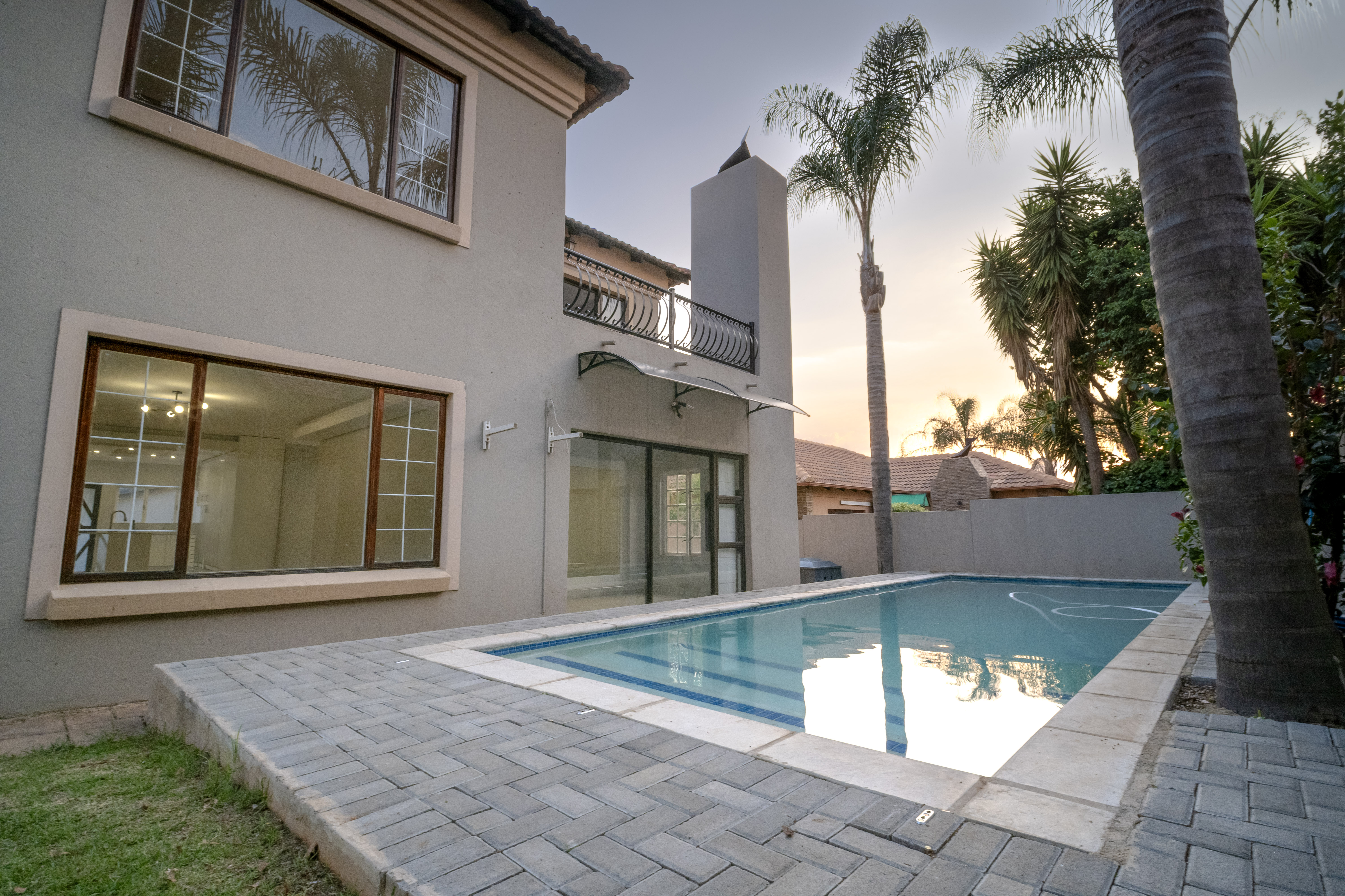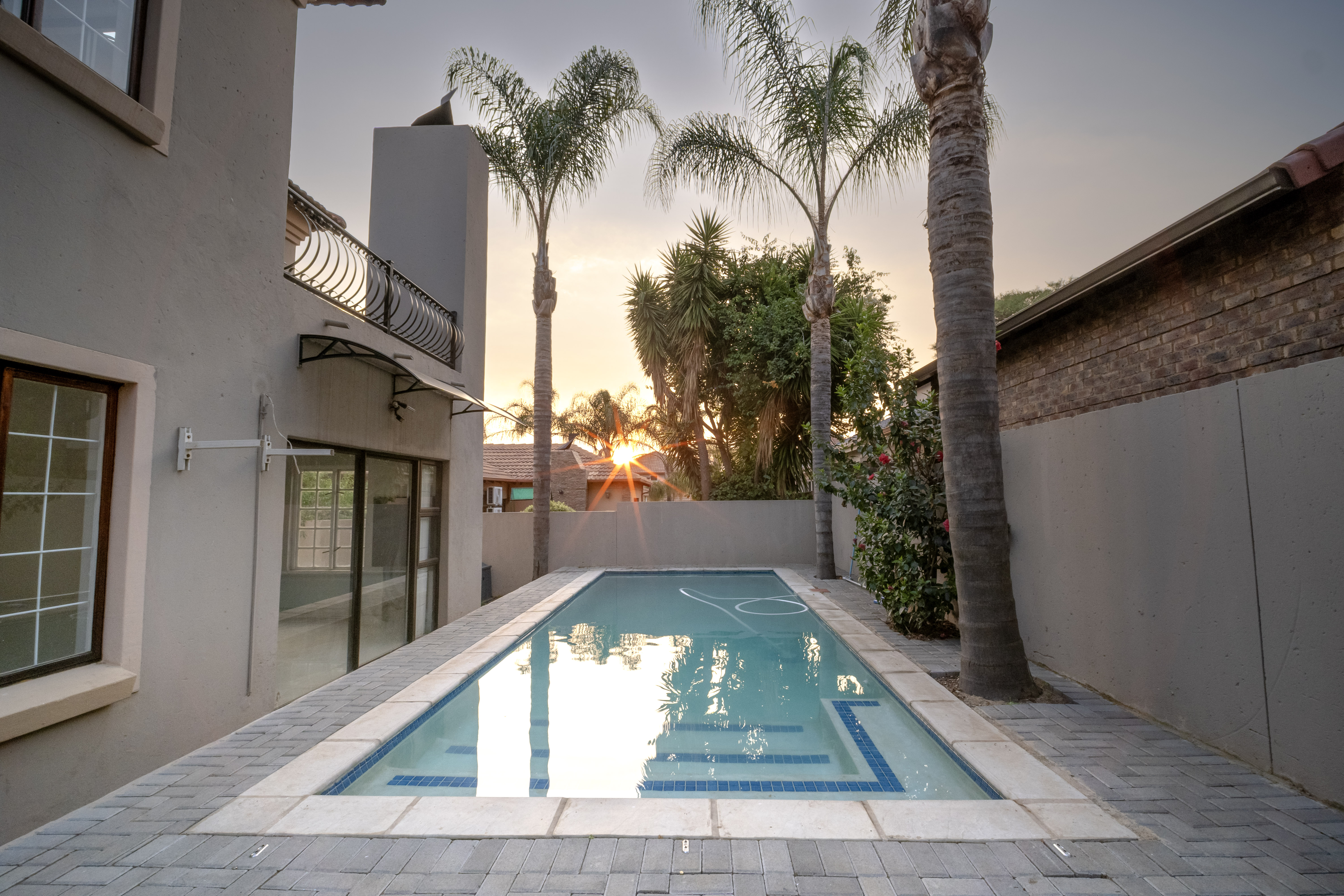 Step into this beautifully renovated 4-bedroom family home located in the sought-after Amberfield Estate, offering a perfect balance of modern luxury, comfort, and everyday practicality. From the moment you arrive, the home’s clean lines, warm finishes, and spacious layout invite you to experience a lifestyle designed for family living and entertaining. The ground floor features an open-plan lounge, dining area, and kitchen that blend seamlessly together. The modern kitchen is a true showpiece, fitted with top-end appliances, sleek white cabinetry, and a central island that doubles as a breakfast bar. Just off the main living area is a separate lounge that leads to an enclosed indoor patio overlooking the swimming pool, ideal for hosting guests or relaxing with family. A guest toilet and a conveniently placed downstairs bedroom complete the lower level, making it perfect for guests or use as a private home office. Upstairs, you’ll find three spacious bedrooms, including the luxurious main en-suite with modern finishes and ample cupboard space. The main and second bedrooms open onto a shared balcony, providing beautiful estate views and a sense of openness. A stylish pyjama lounge offers the perfect family relaxation area, while a second full bathroom serves the remaining bedrooms. Additional features include three automated garages with direct access to the home, plenty of guest parking, and modern ceilings with recessed lighting throughout. Located in a secure lifestyle estate with 24-hour access control, this home offers peace of mind and an exceptional sense of community. Perfectly positioned close to excellent schools, shopping centres, and main routes, this Amberfield home combines style, space, and security — making it an ideal choice for a modern family.