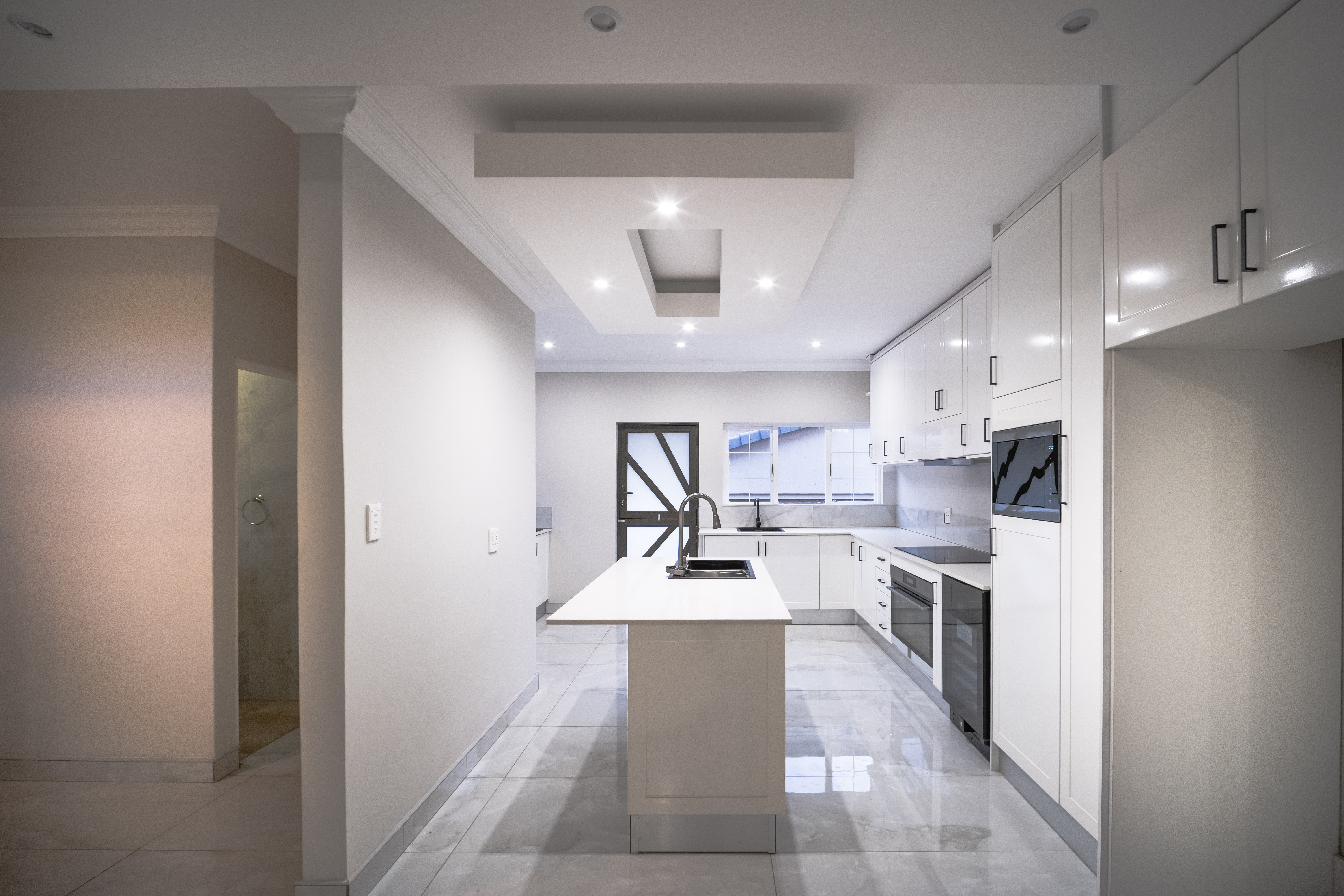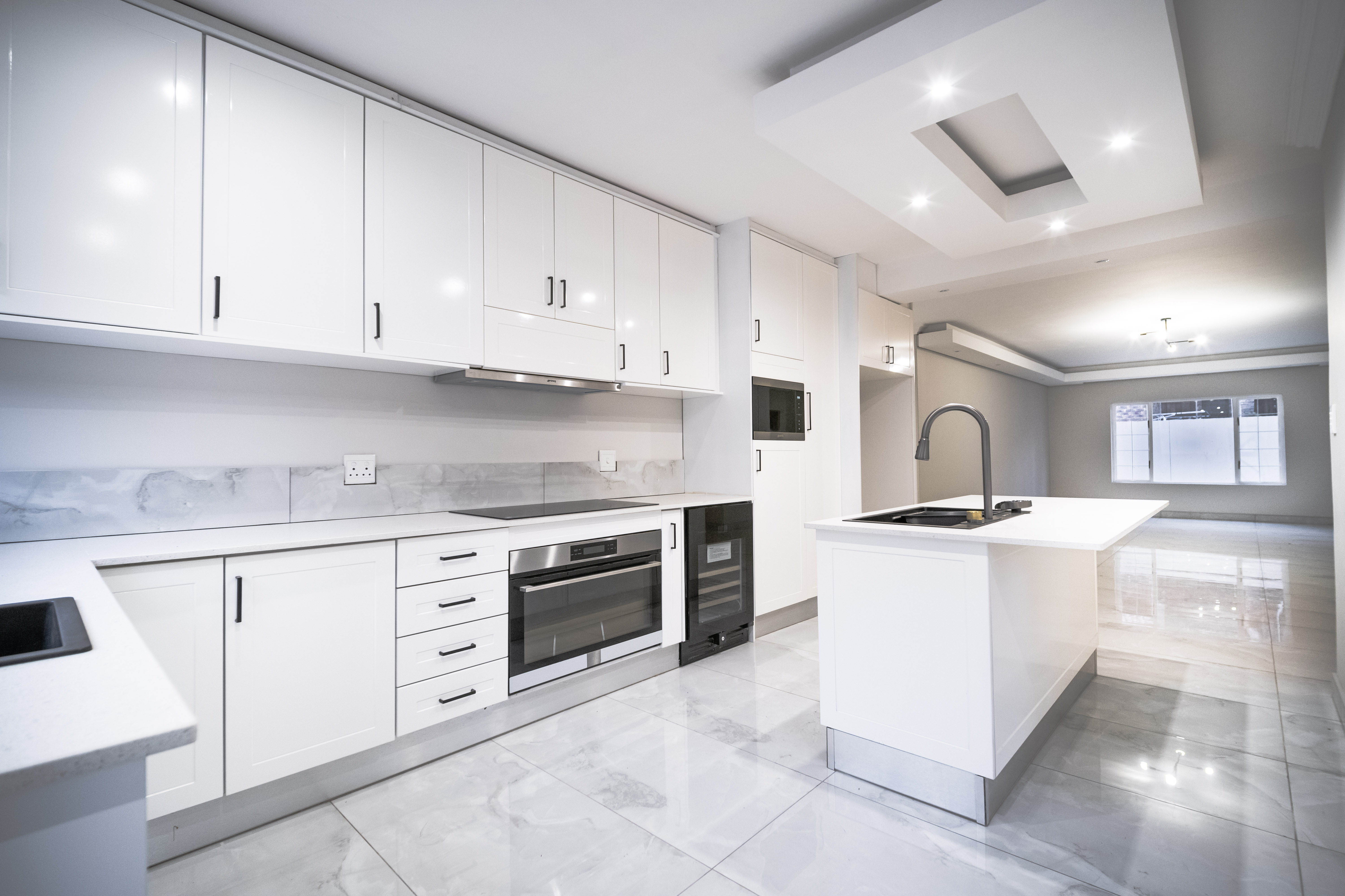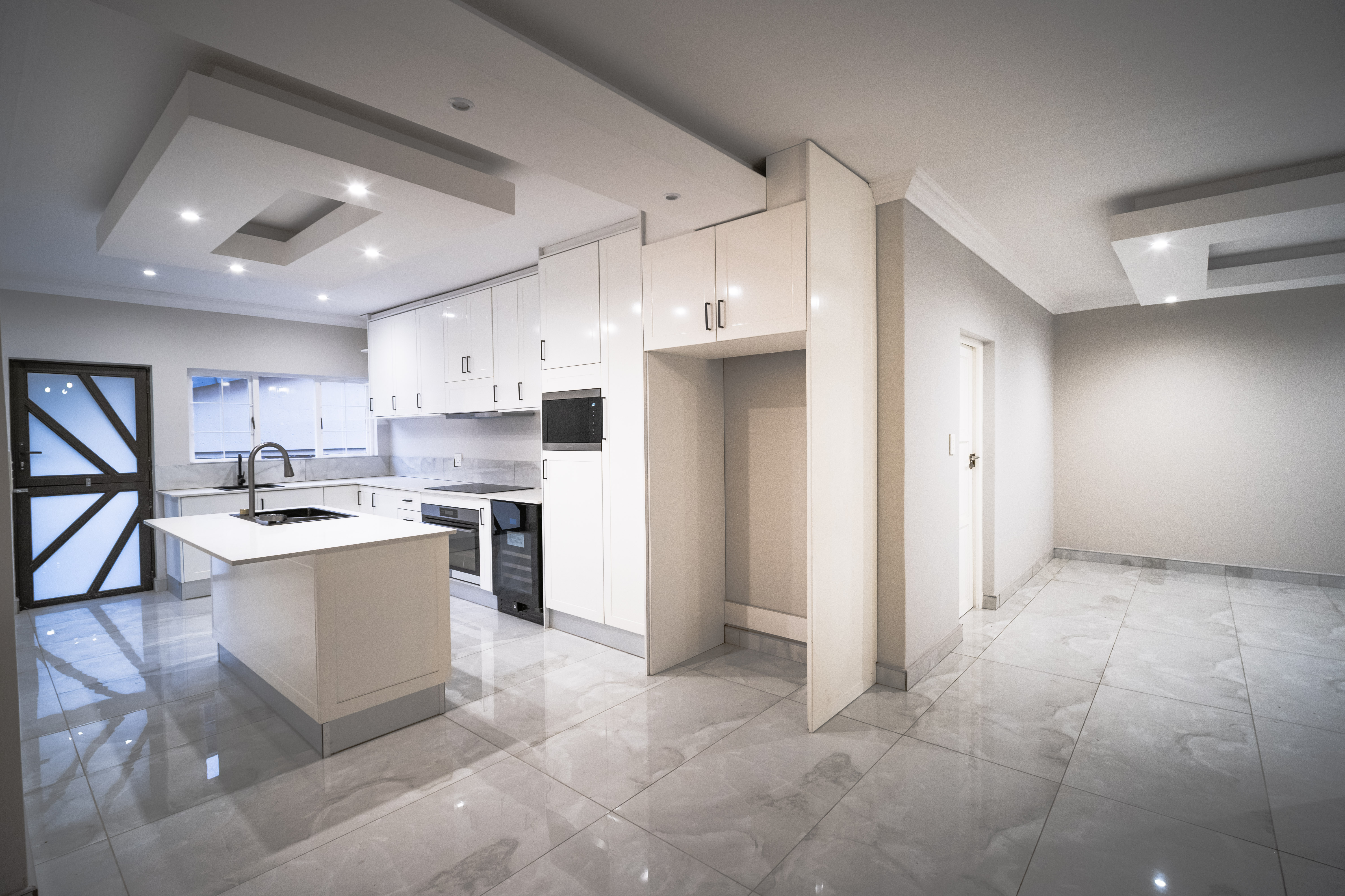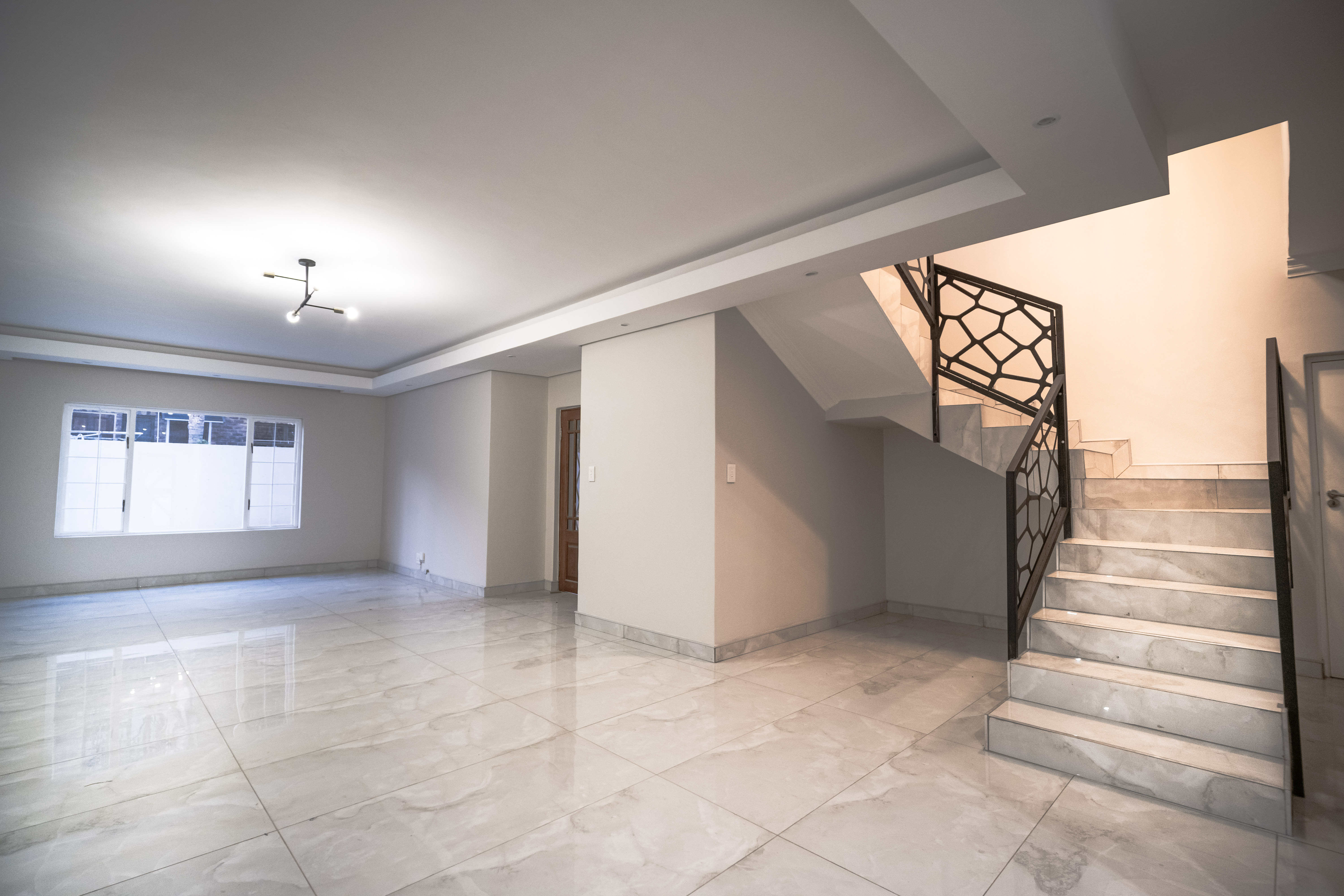 Step into this beautifully renovated 4-bedroom family home located in the sought-after Amberfield Estate, offering a perfect balance of modern luxury, comfort, and everyday practicality. From the moment you arrive, the home’s clean lines, warm finishes, and spacious layout invite you to experience a lifestyle designed for family living and entertaining. The ground floor features an open-plan lounge, dining area, and kitchen that blend seamlessly together. The modern kitchen is a true showpiece, fitted with top-end appliances, sleek white cabinetry, and a central island that doubles as a breakfast bar. Just off the main living area is a separate lounge that leads to an enclosed indoor patio overlooking the swimming pool, ideal for hosting guests or relaxing with family. A guest toilet and a conveniently placed downstairs bedroom complete the lower level, making it perfect for guests or use as a private home office. Upstairs, you’ll find three spacious bedrooms, including the luxurious main en-suite with modern finishes and ample cupboard space. The main and second bedrooms open onto a shared balcony, providing beautiful estate views and a sense of openness. A stylish pyjama lounge offers the perfect family relaxation area, while a second full bathroom serves the remaining bedrooms. Additional features include three automated garages with direct access to the home, plenty of guest parking, and modern ceilings with recessed lighting throughout. Located in a secure lifestyle estate with 24-hour access control, this home offers peace of mind and an exceptional sense of community. Perfectly positioned close to excellent schools, shopping centres, and main routes, this Amberfield home combines style, space, and security — making it an ideal choice for a modern family.