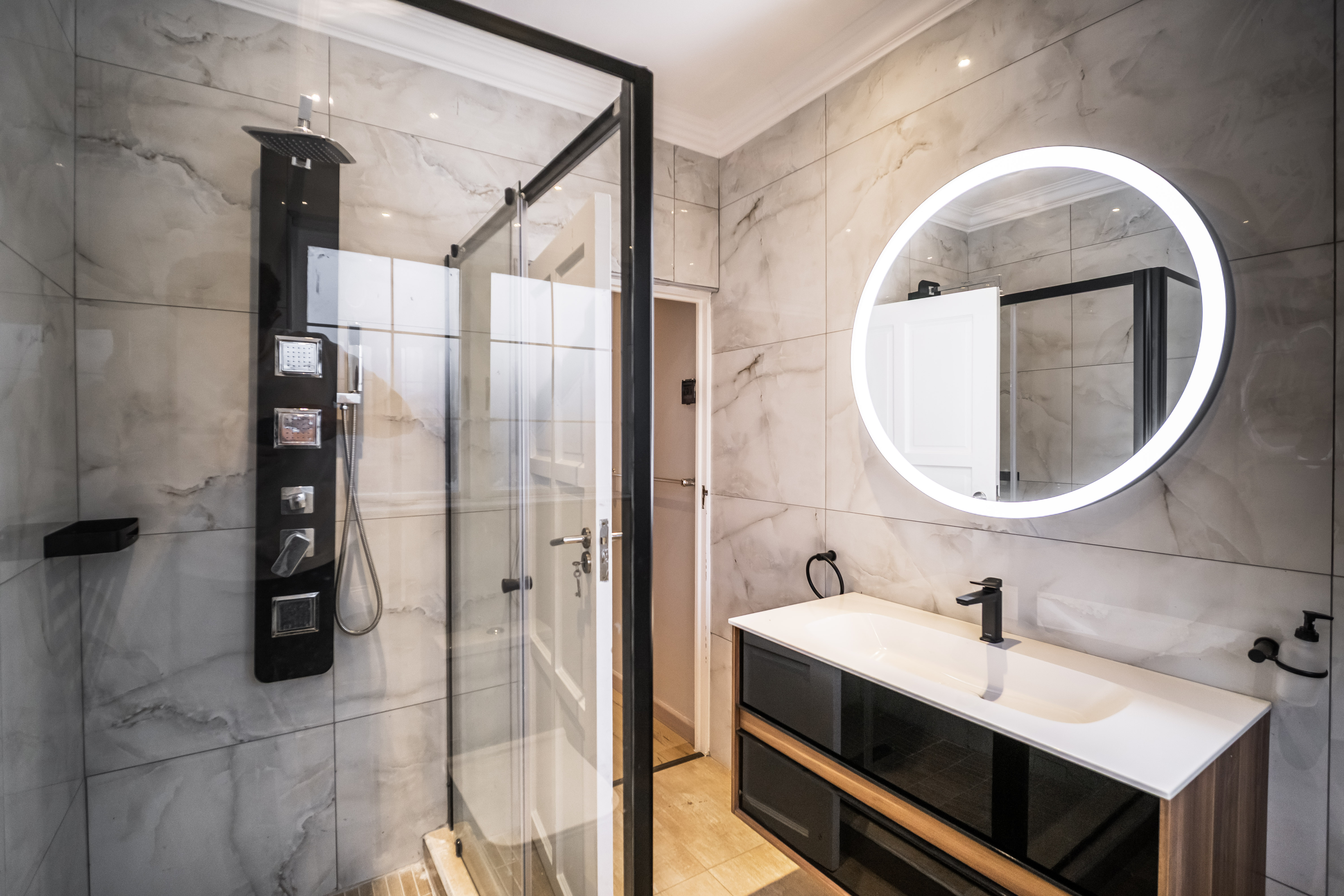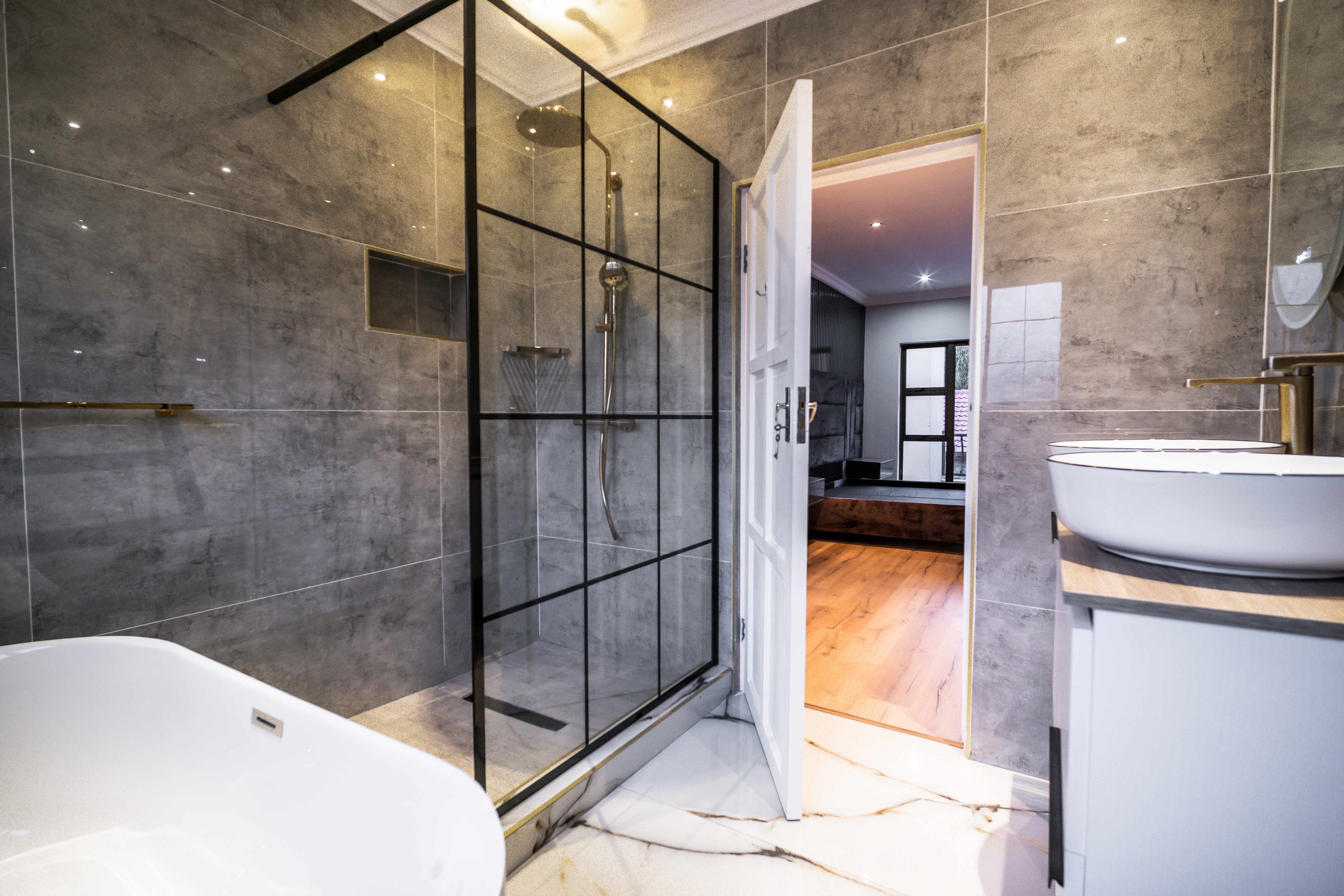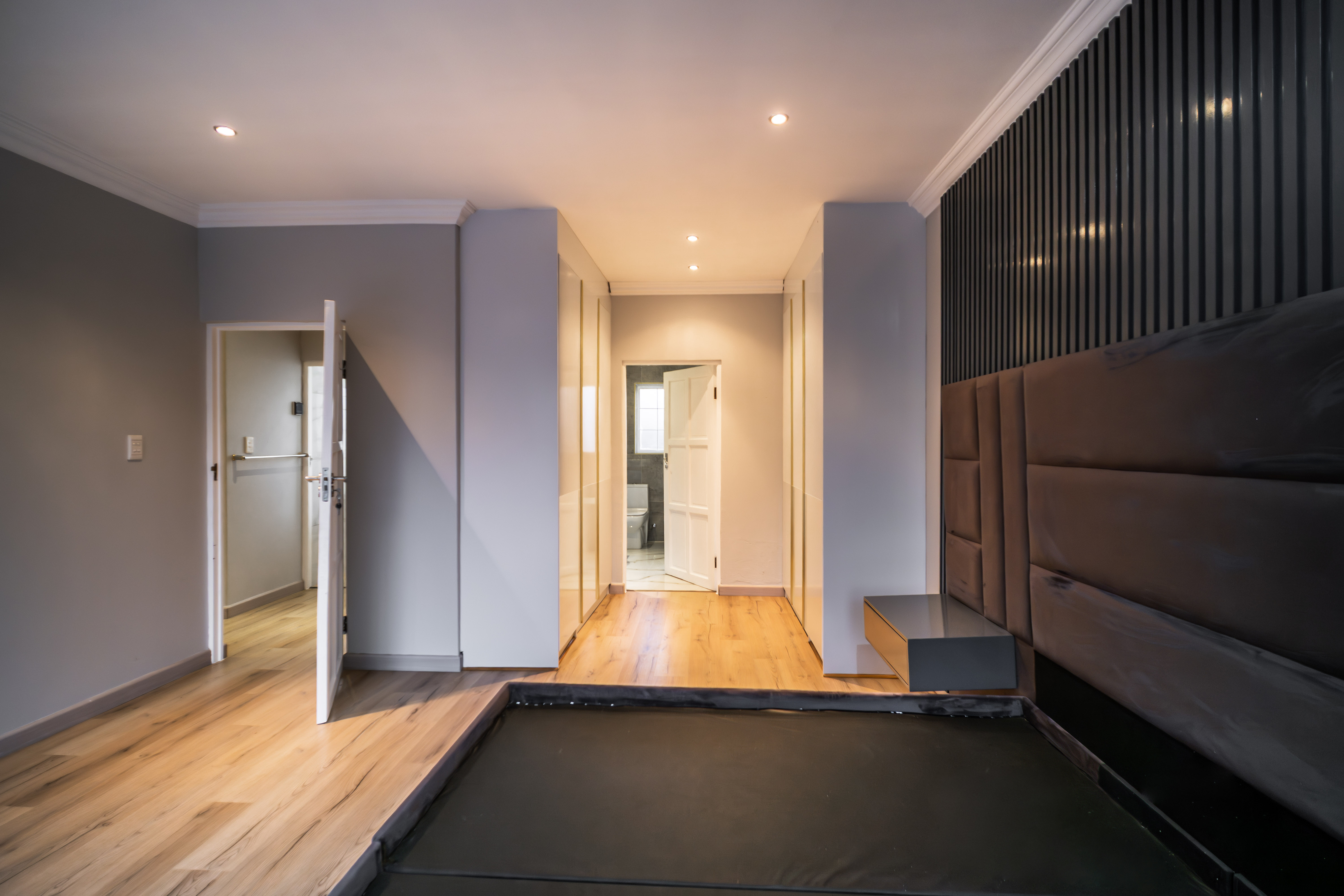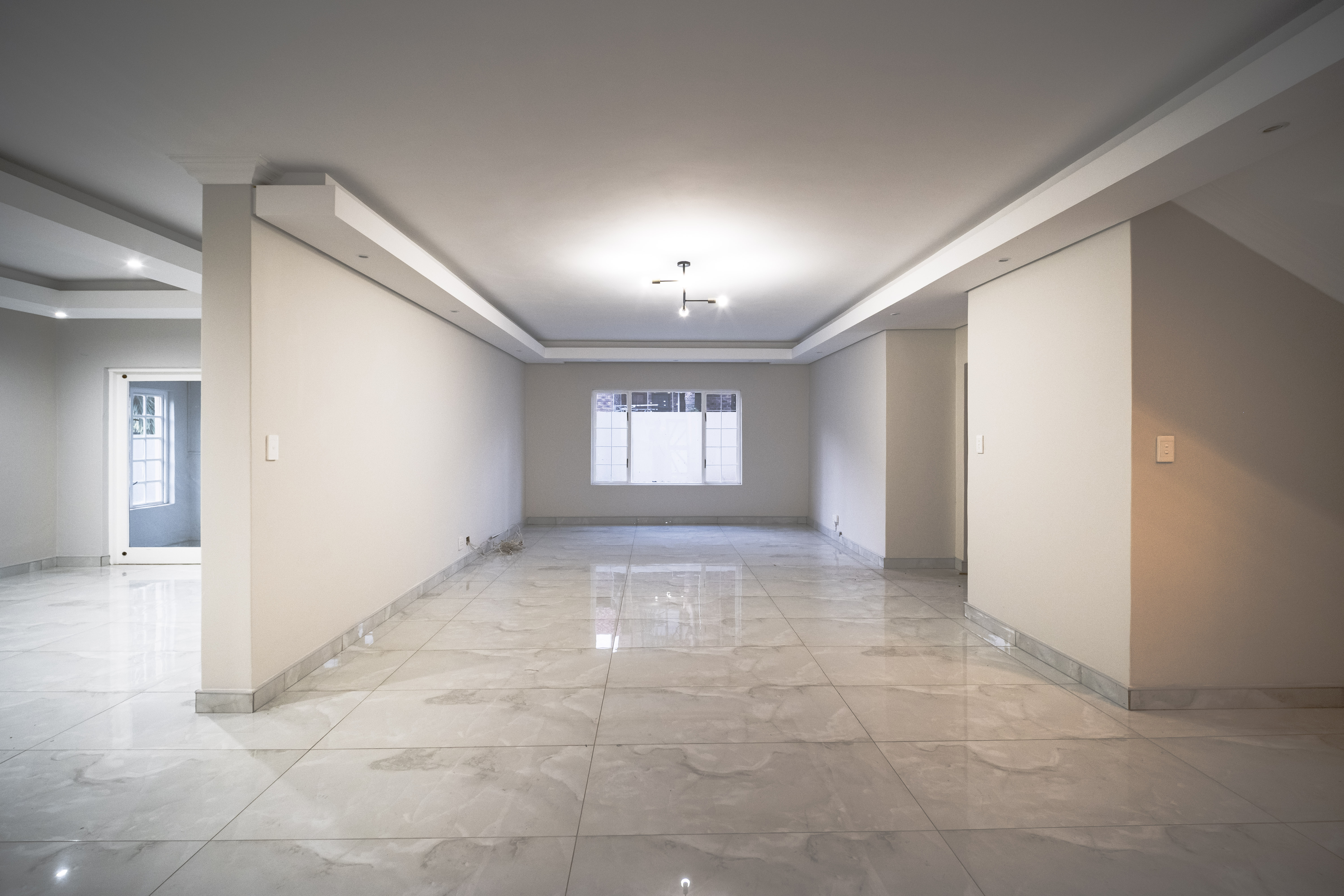 Step into this beautifully renovated 4-bedroom family home located in the sought-after Amberfield Estate, offering a perfect balance of modern luxury, comfort, and everyday practicality. From the moment you arrive, the home’s clean lines, warm finishes, and spacious layout invite you to experience a lifestyle designed for family living and entertaining. The ground floor features an open-plan lounge, dining area, and kitchen that blend seamlessly together. The modern kitchen is a true showpiece, fitted with top-end appliances, sleek white cabinetry, and a central island that doubles as a breakfast bar. Just off the main living area is a separate lounge that leads to an enclosed indoor patio overlooking the swimming pool, ideal for hosting guests or relaxing with family. A guest toilet and a conveniently placed downstairs bedroom complete the lower level, making it perfect for guests or use as a private home office. Upstairs, you’ll find three spacious bedrooms, including the luxurious main en-suite with modern finishes and ample cupboard space. The main and second bedrooms open onto a shared balcony, providing beautiful estate views and a sense of openness. A stylish pyjama lounge offers the perfect family relaxation area, while a second full bathroom serves the remaining bedrooms. Additional features include three automated garages with direct access to the home, plenty of guest parking, and modern ceilings with recessed lighting throughout. Located in a secure lifestyle estate with 24-hour access control, this home offers peace of mind and an exceptional sense of community. Perfectly positioned close to excellent schools, shopping centres, and main routes, this Amberfield home combines style, space, and security — making it an ideal choice for a modern family.