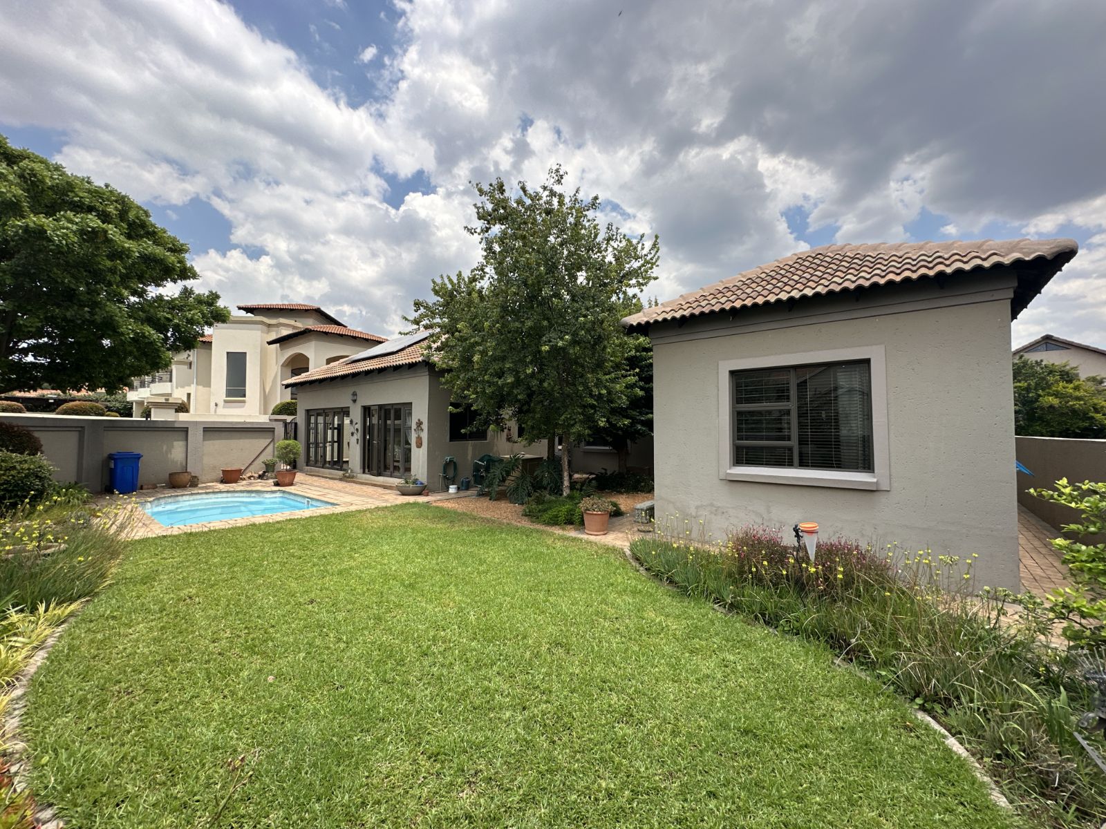 Beyond the main house, a private 1-bedroom flatlet offers incredible versatility for extended family or rental income, all set within a garden oasis featuring a sparkling pool and double garage.
