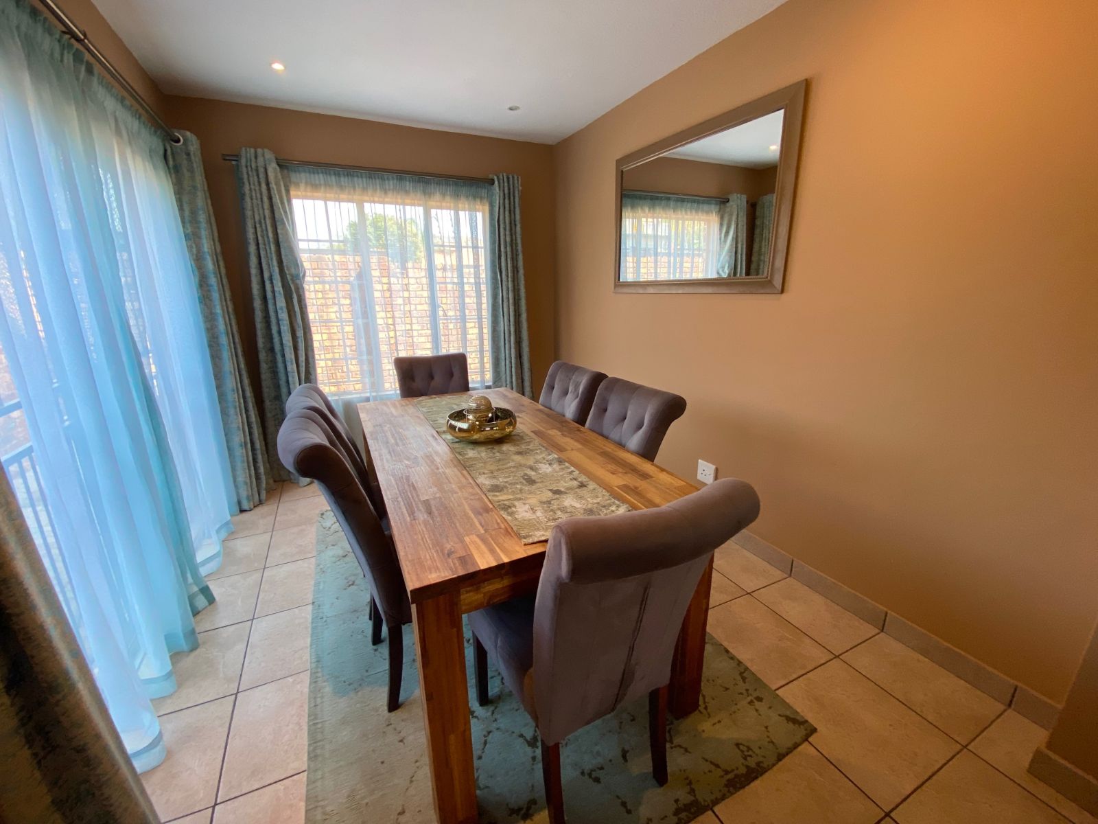 Neat and move-in ready, this 3-bedroom townhouse is located in the highly sought-after Amberfield Manor Estate. It offers 2.5 bathrooms (including two full bathrooms upstairs and a guest toilet), a modern kitchen with space for a double fridge, two living areas, and an enclosed patio with a built-in braai. A double garage, double carport, private garden, and courtyard add to the home’s convenience and appeal.