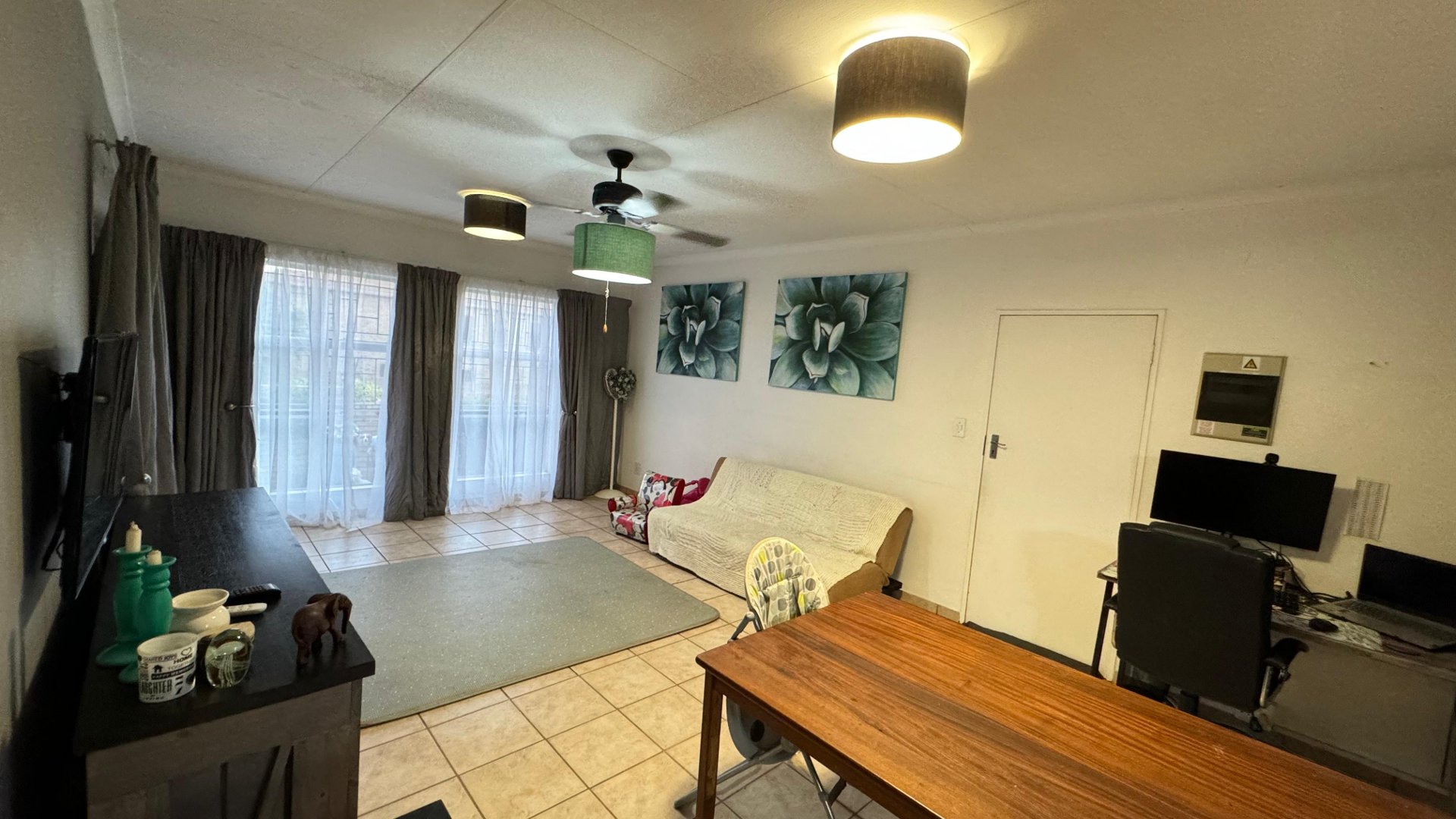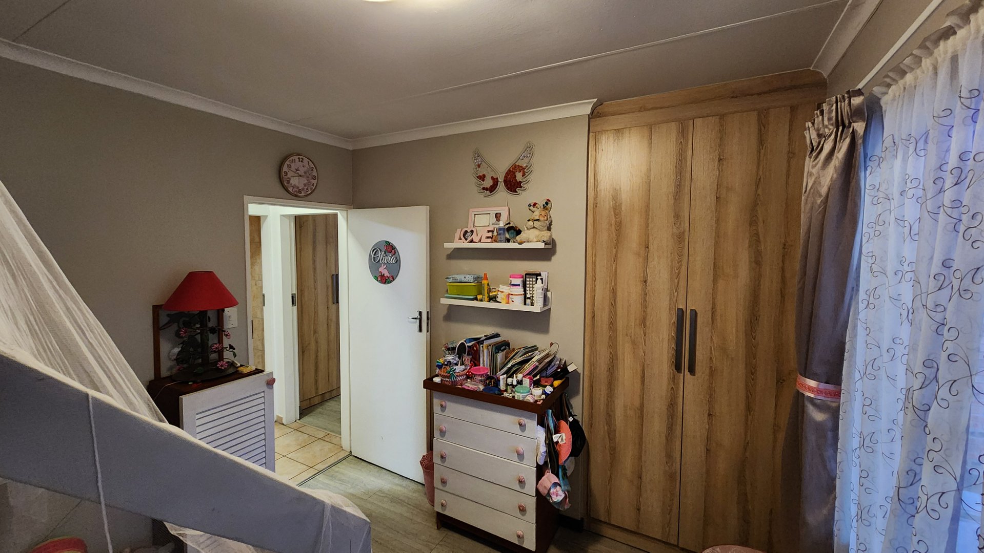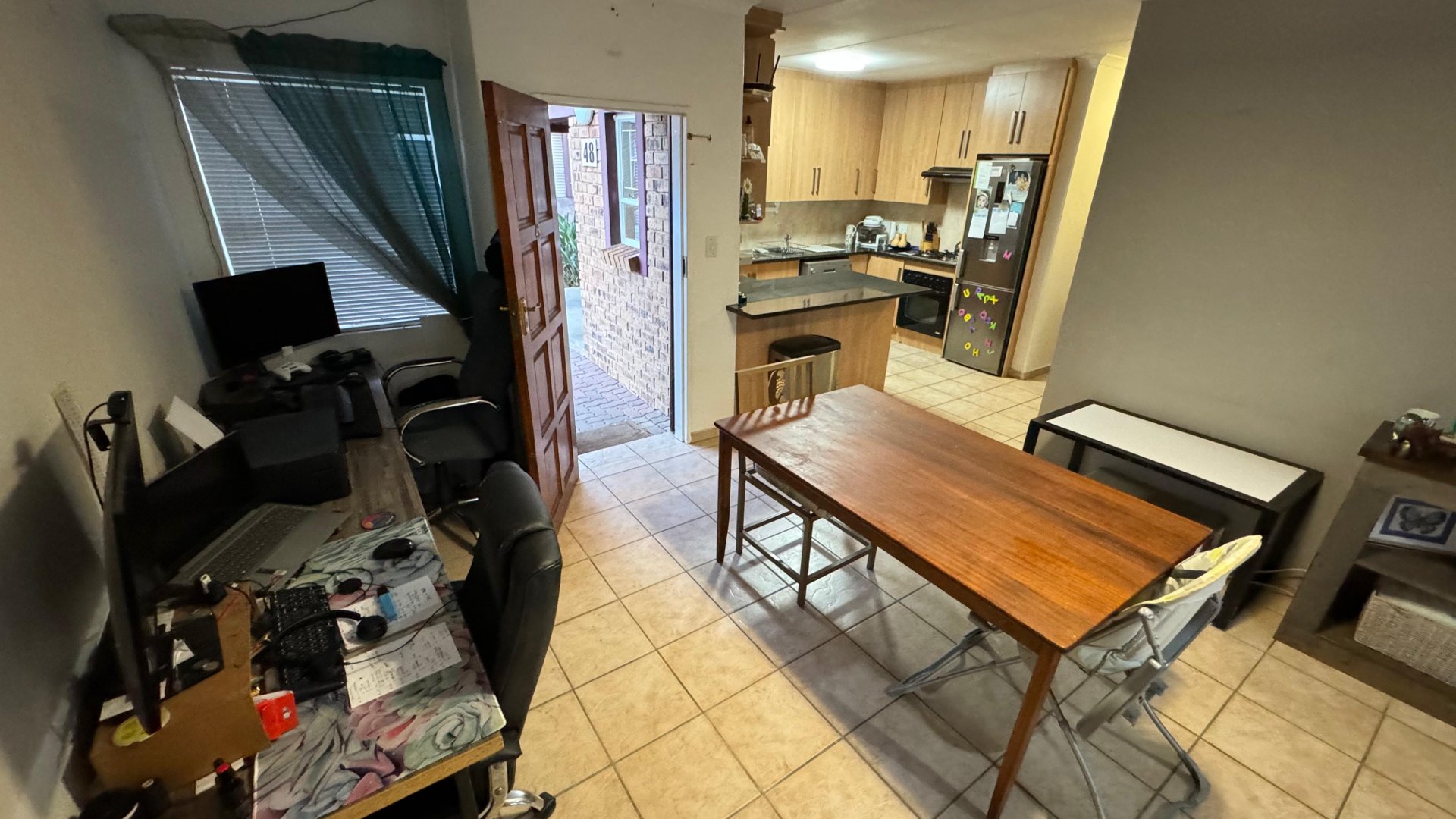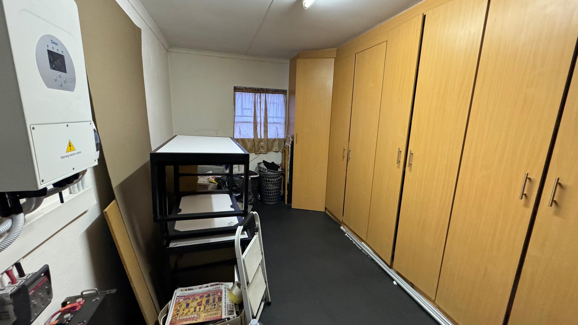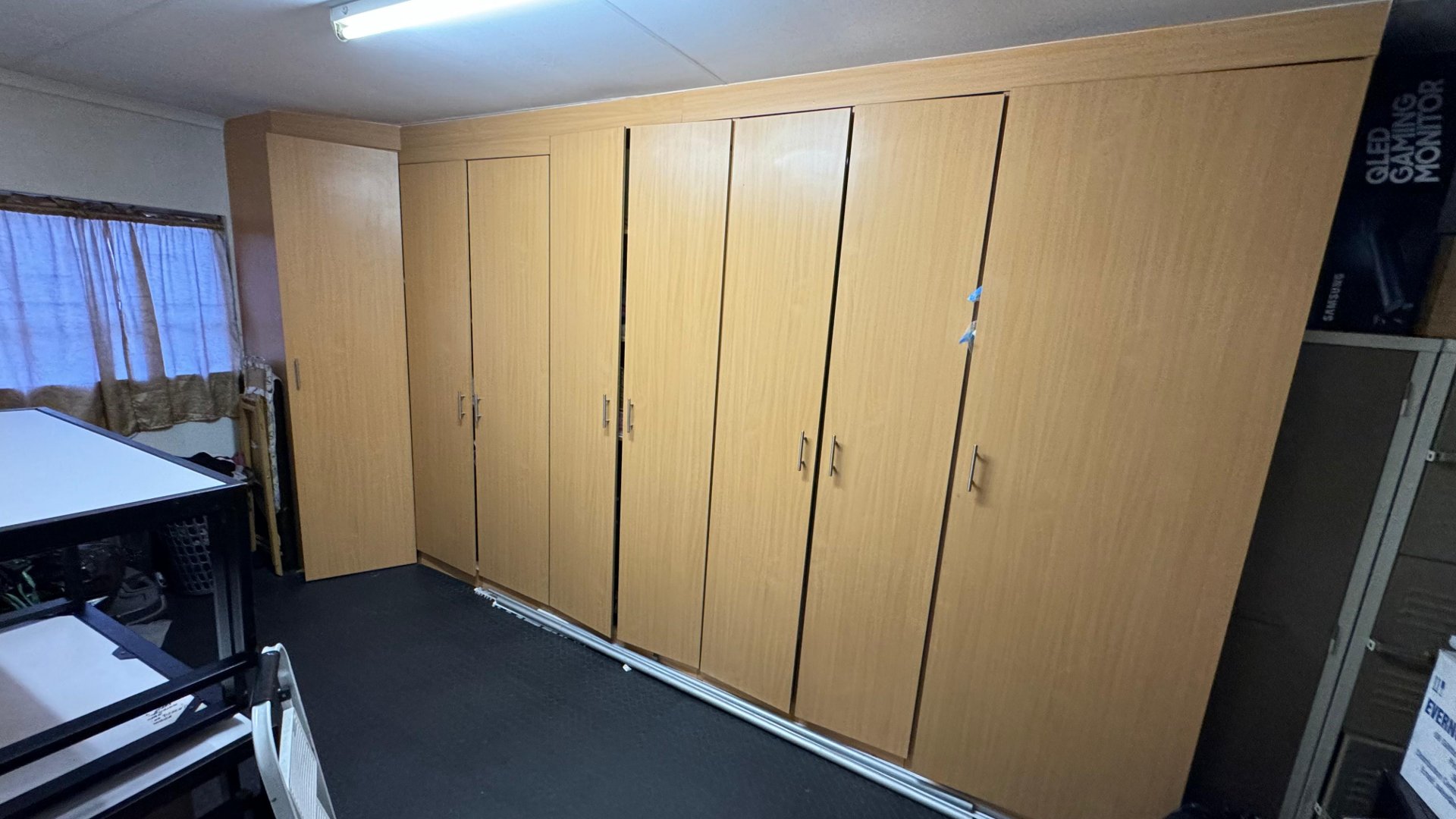 The converted garage now serves as an additional room, equipped with ample cupboard space, making it perfect for a home office, hobby room, or additional bedroom.