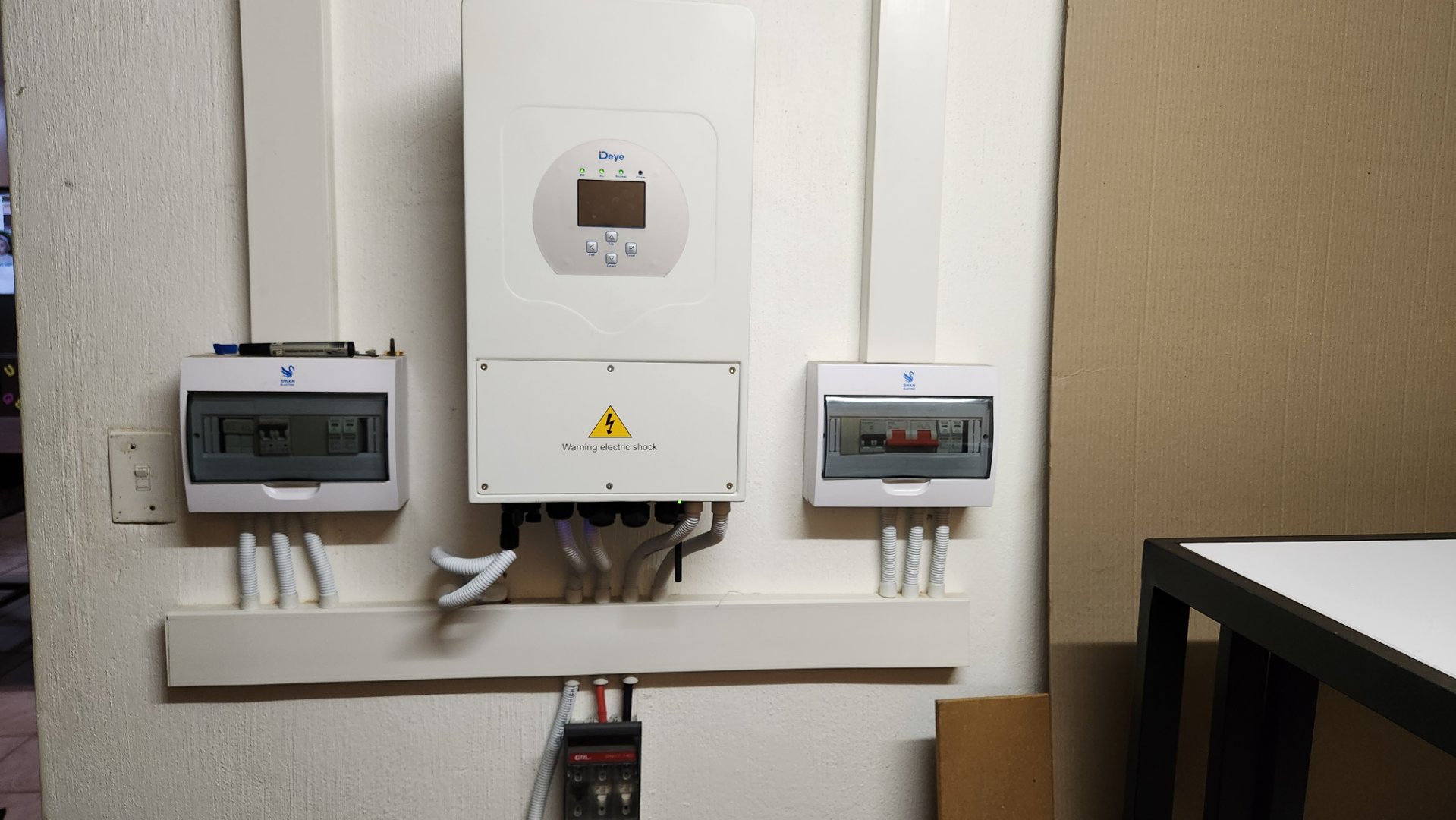Eco-friendly solar power system with four four hundred and sixty watt solar panels, a five kilowatt Dye inverter, and a five kilowatt battery for energy savings and independence