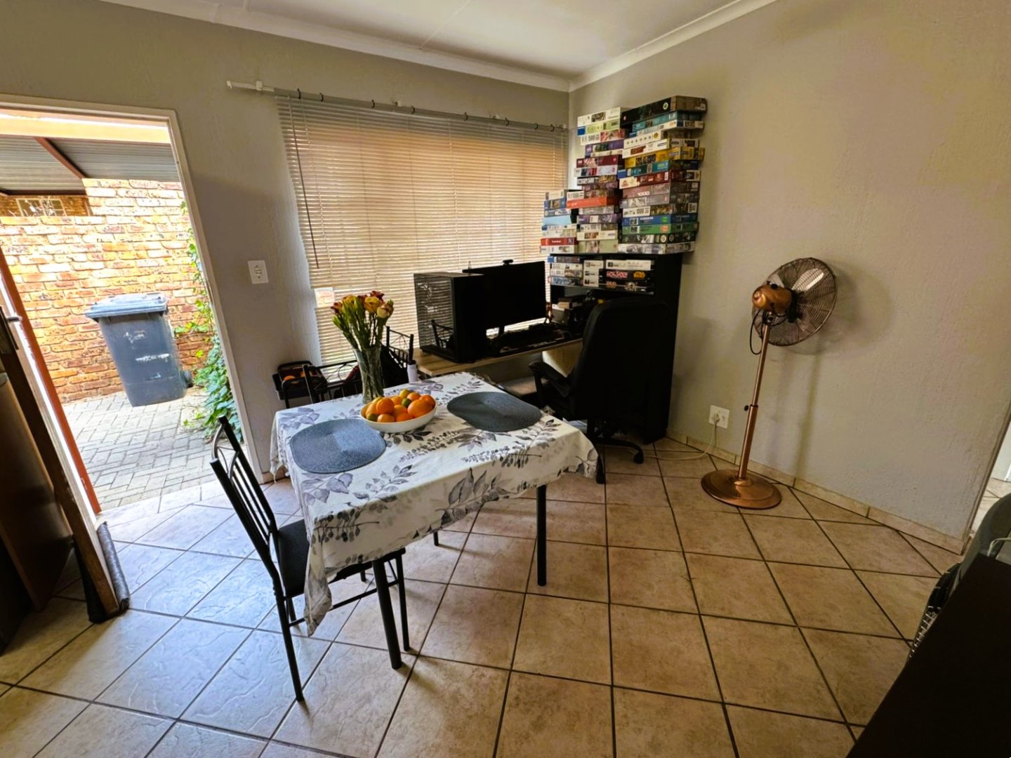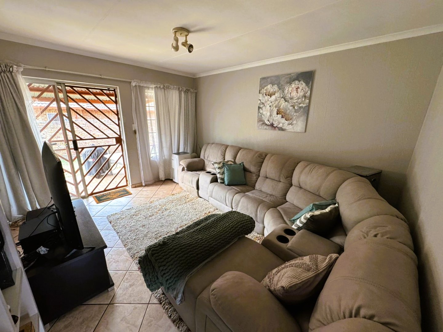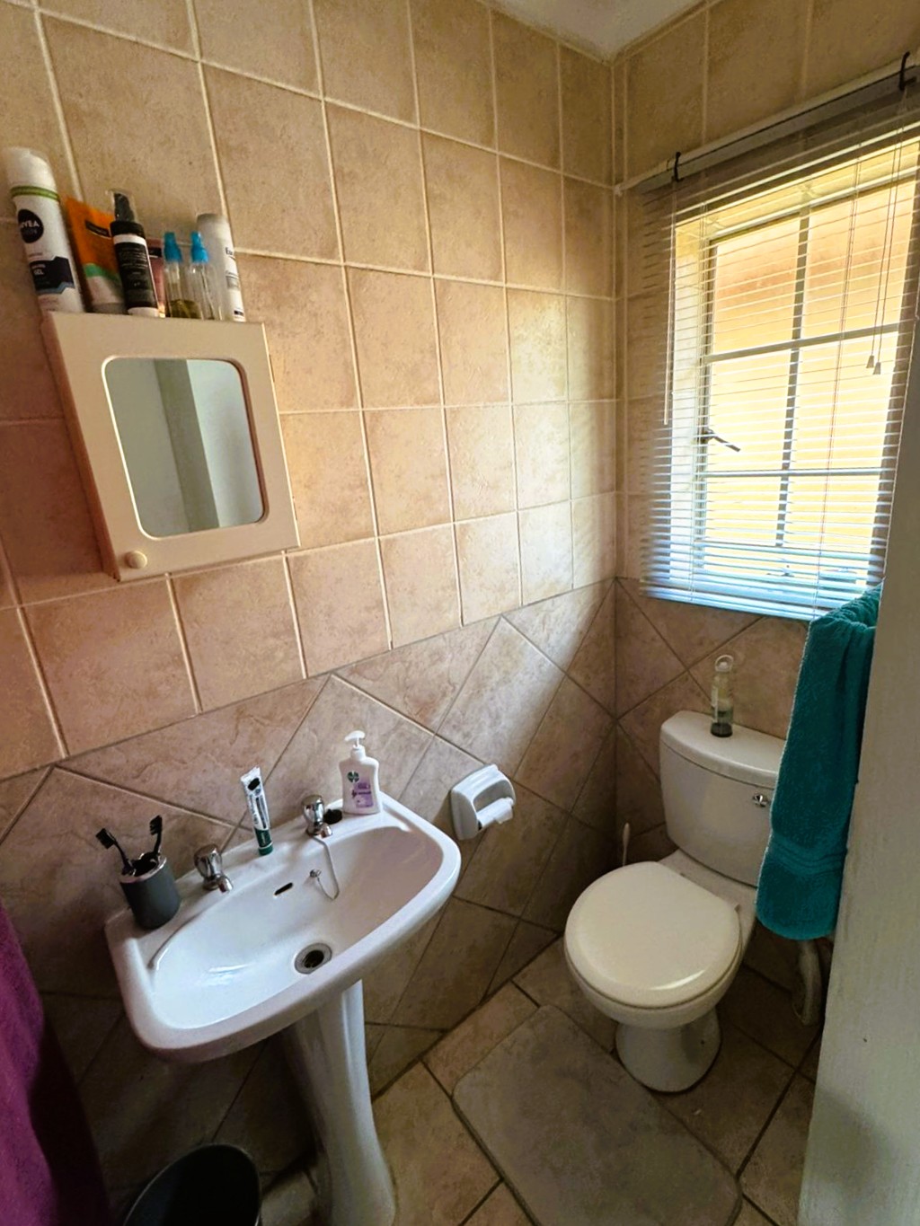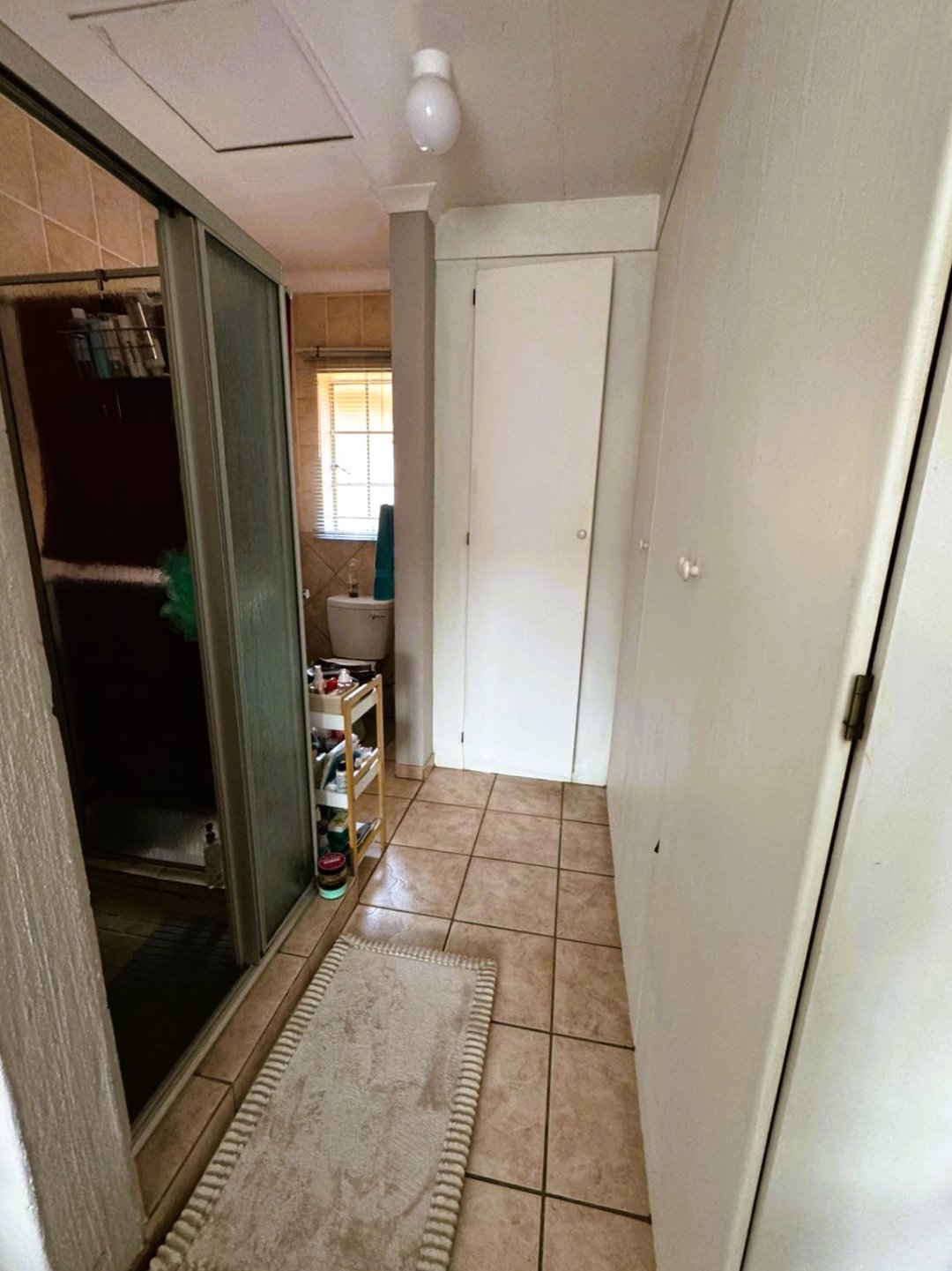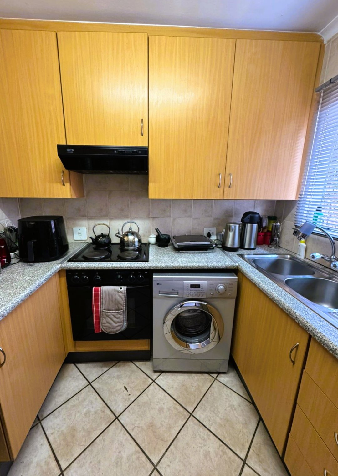 The kitchen is fitted with ample cupboard space and allows for one under-counter appliance, making it both functional and practical. The two well-sized bedrooms feature laminated flooring, while the rest of the home is finished with tiles throughout.