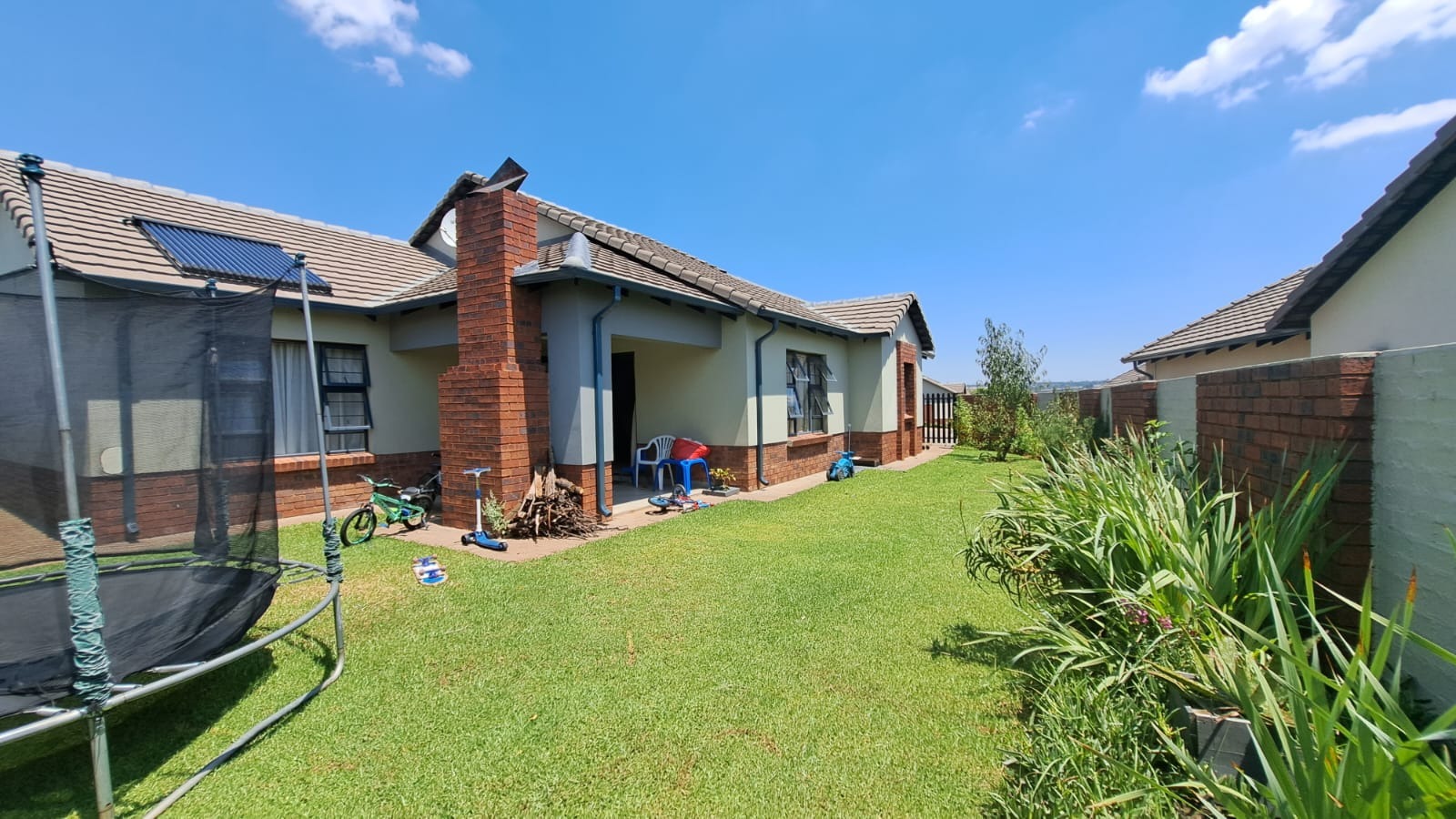 The stack doors open up to a patio with built-in braai and a lovely spacious garden with more than enough space for children to play. With a double garage and carport, it provides convenient and secure parking. The solar system ensures energy efficiency and offers both practicality and sustainability. Whether you're enjoying a peaceful morning coffee on the patio or hosting gatherings with friends and family, this property offers a lifestyle of unparalleled comfort and elegance.