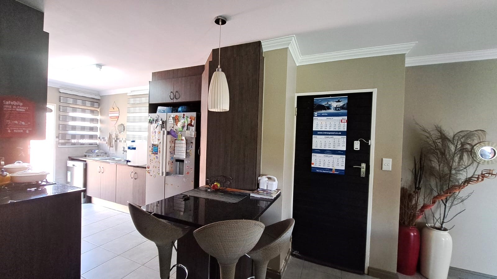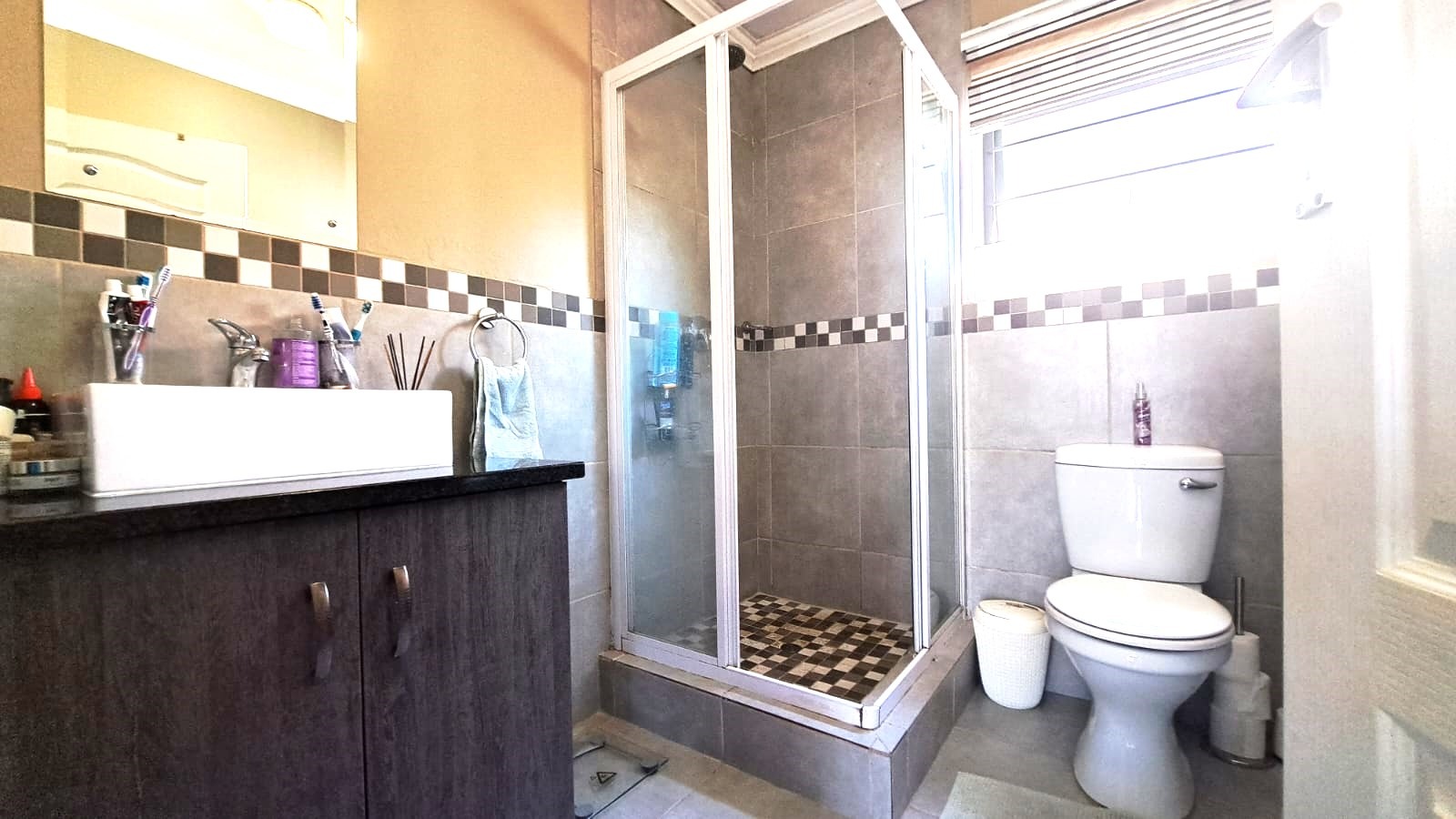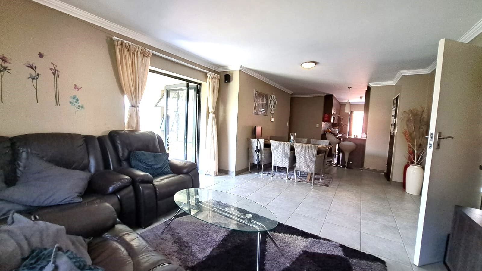 Step into this lovely modern townhouse, tucked away in a serene estate. This townhouse with three bedrooms and two bathrooms, offers a haven of tranquility amidst the hustle and bustle of everyday life. As you enter, be embraced by the warmth of natural light. The modern kitchen, with enough space for your appliances, has granite tops, a built-in hob and oven as well as a breakfast nook.