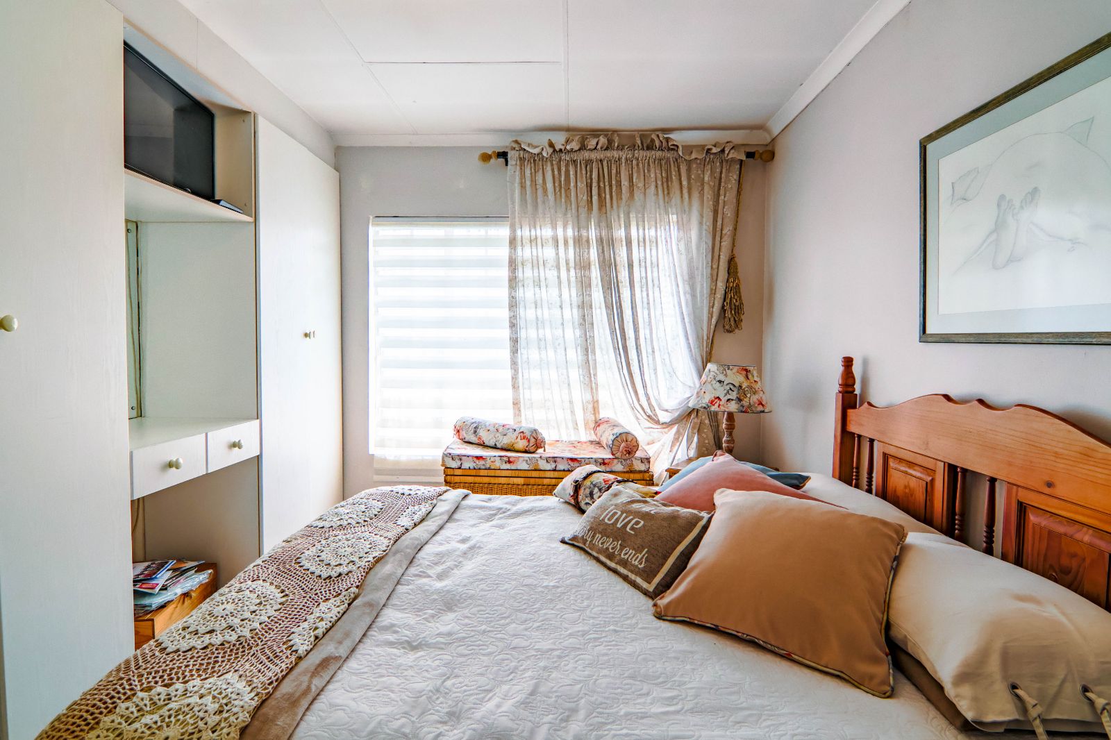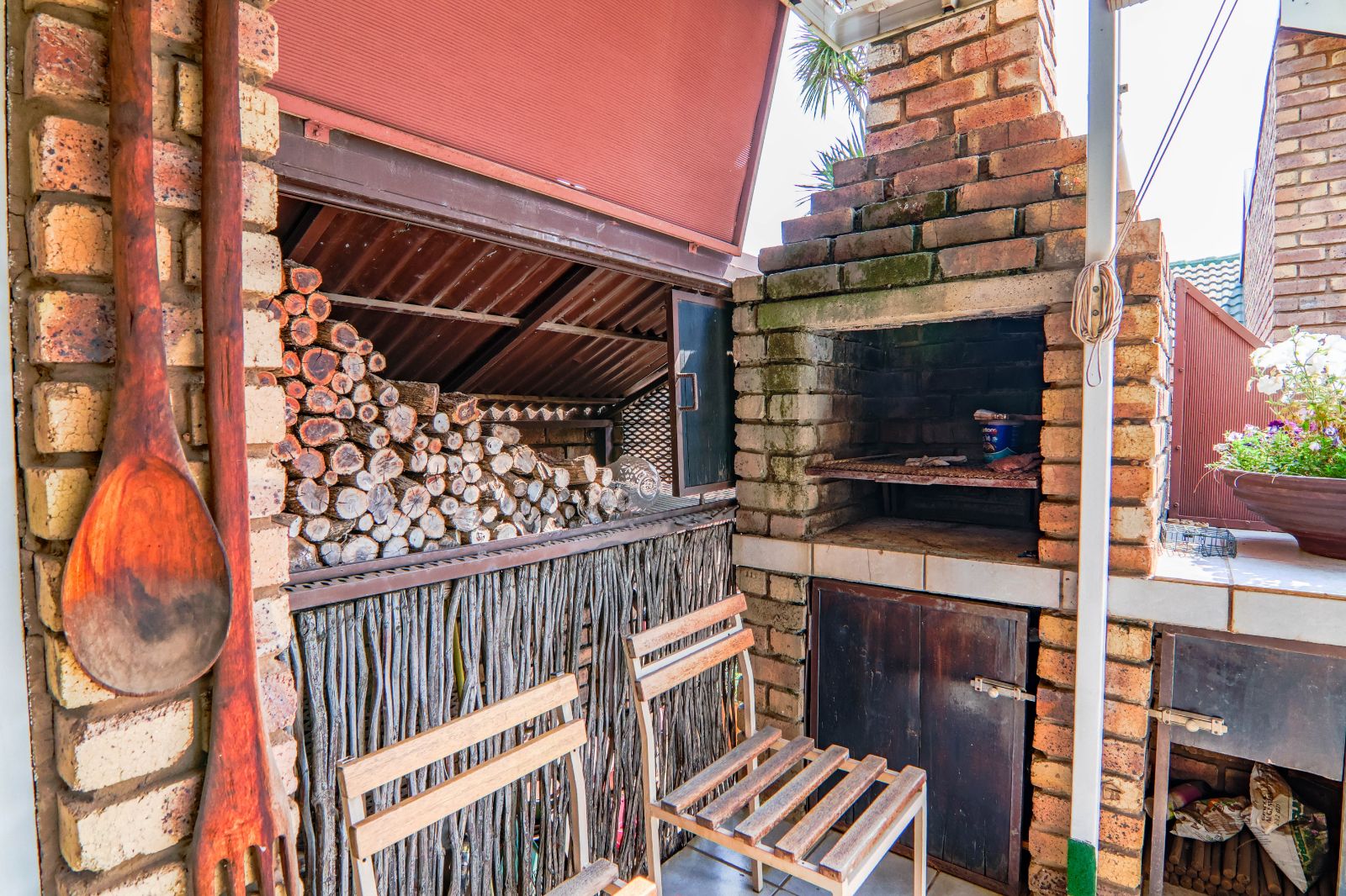 The home features 2 well-sized bedrooms, a full spacious bathroom (beautifully tiled), and generous living areas. A separate dining room and lounge flow seamlessly to a covered stoep with a built-in braai and a louvre roof – perfect for entertaining.