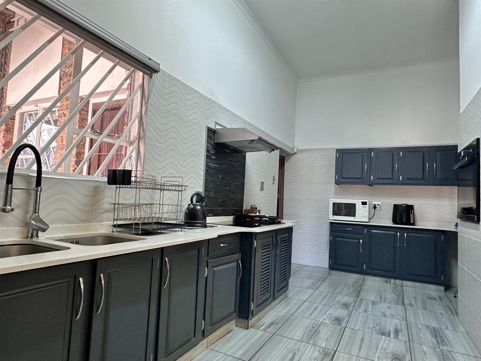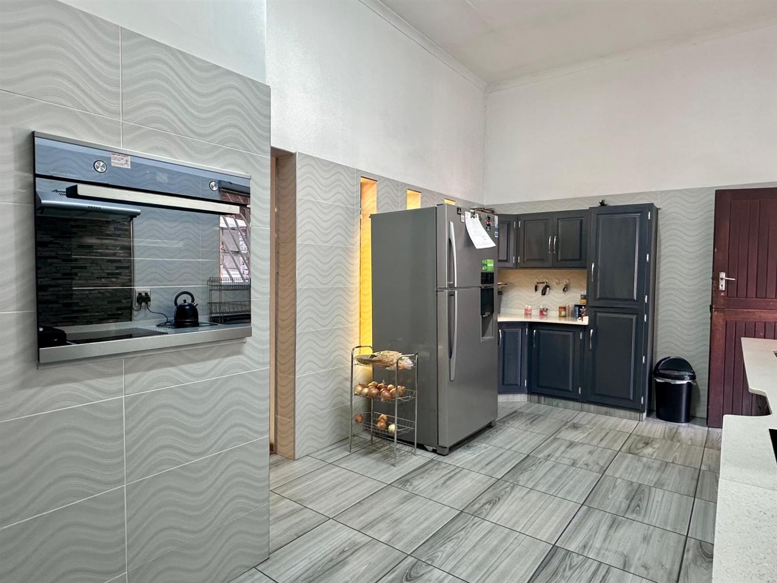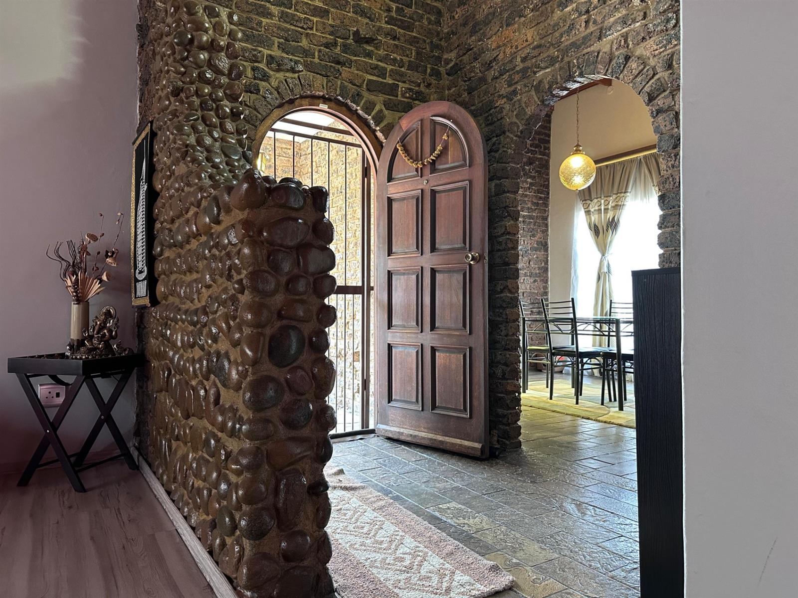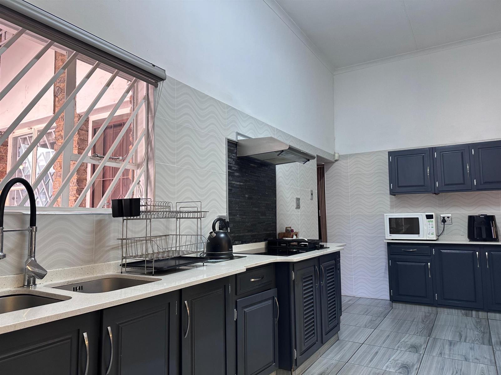 Step inside to find a well-planned layout featuring a dining room that flows seamlessly into a spacious lounge. The timeless face-brick exterior ensures low maintenance while adding lasting charm. At the heart of the home, the modern kitchen boasts ample built-in cupboards, generous counter space, and a convenient serving hatch—perfect for entertaining. A laundry room adds further functionality.