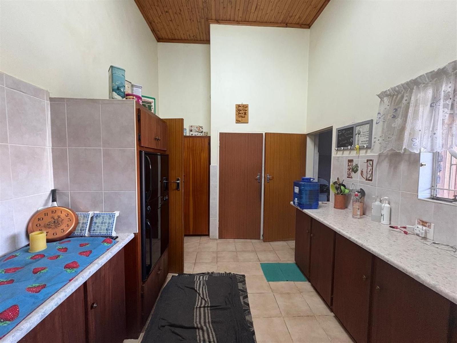 Large, well-appointed kitchen with built-in cupboards, separate scullery, and laundry area
