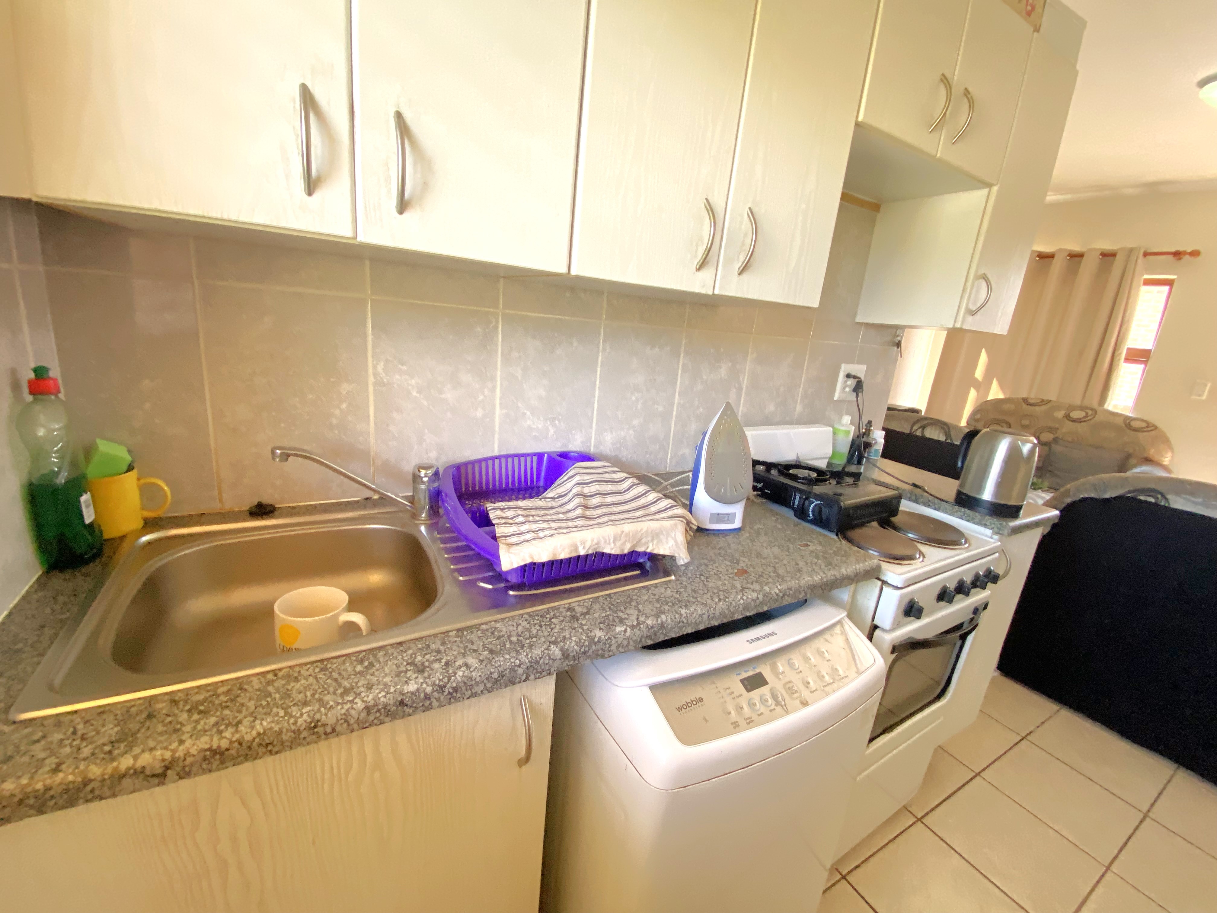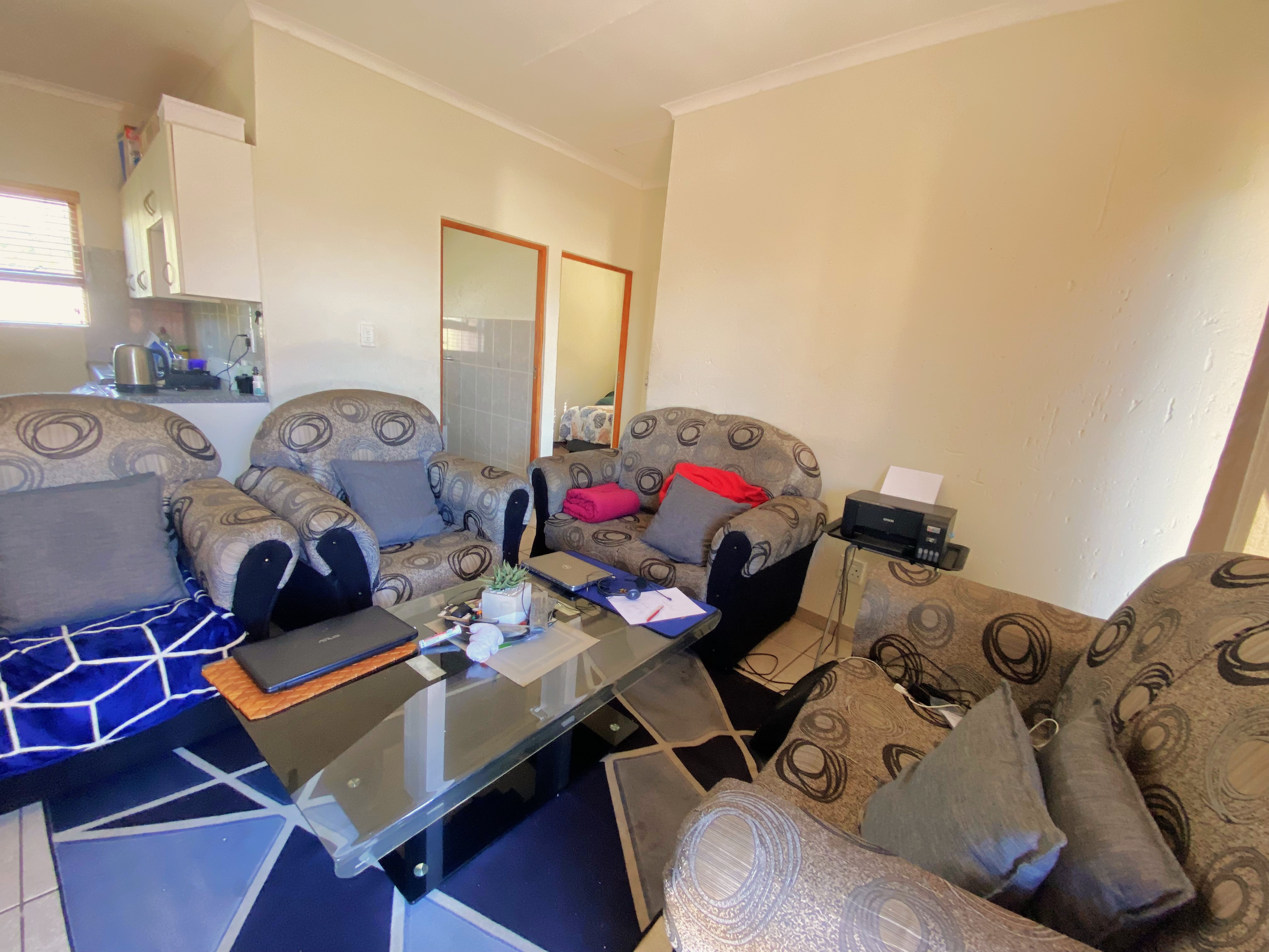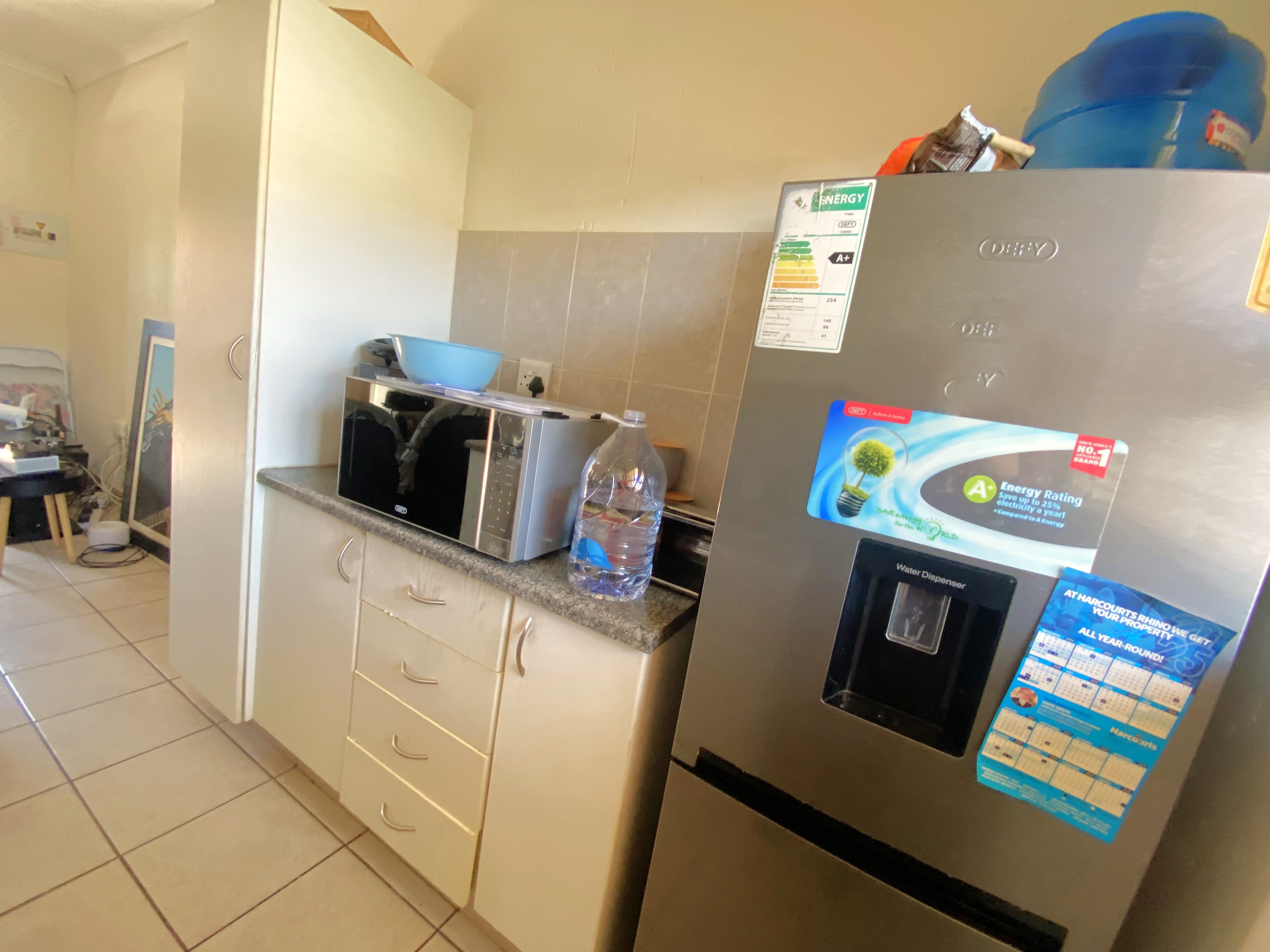 The unit leads directly into the open plan lounge- & kitchen (with cupboards and space for appliances).