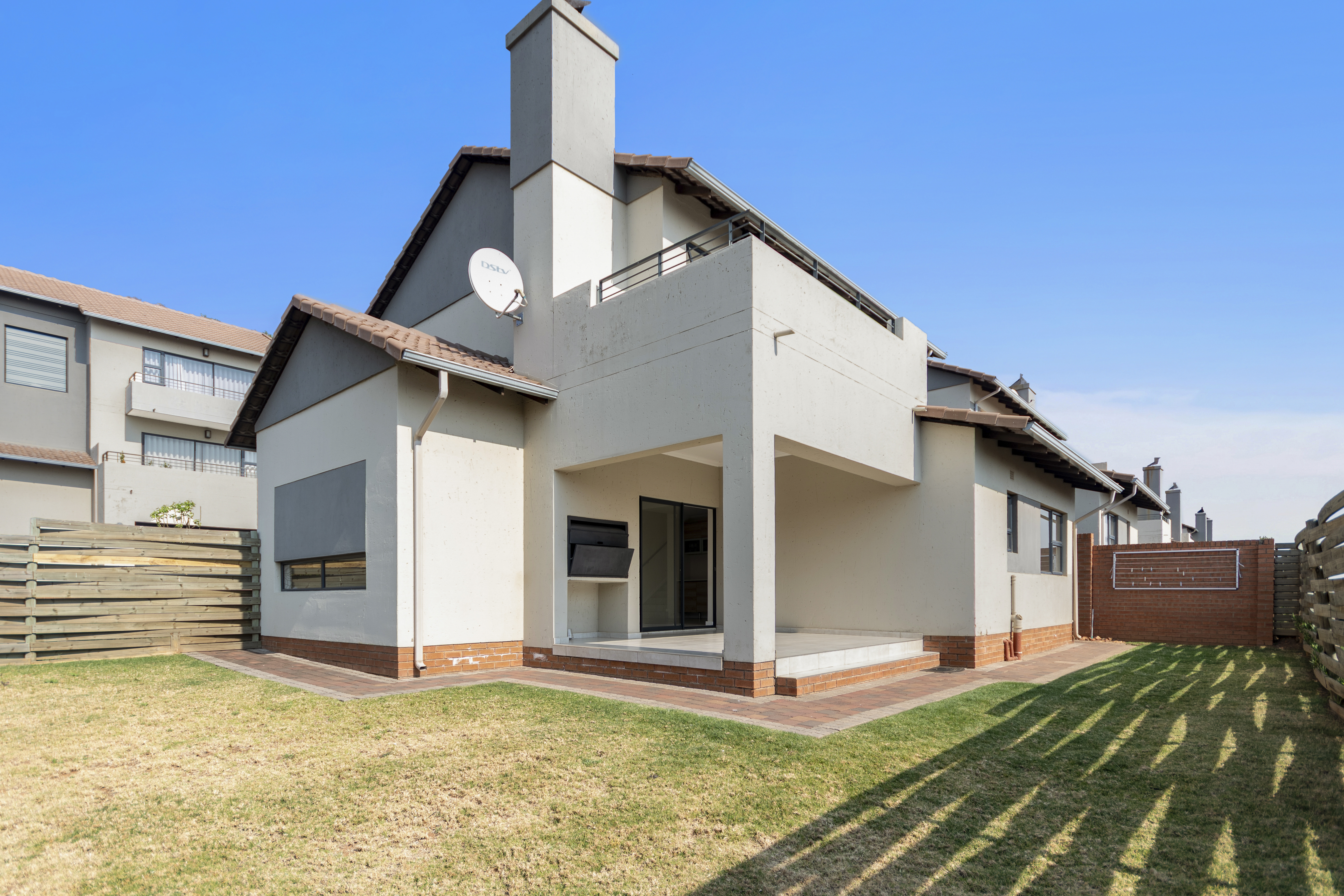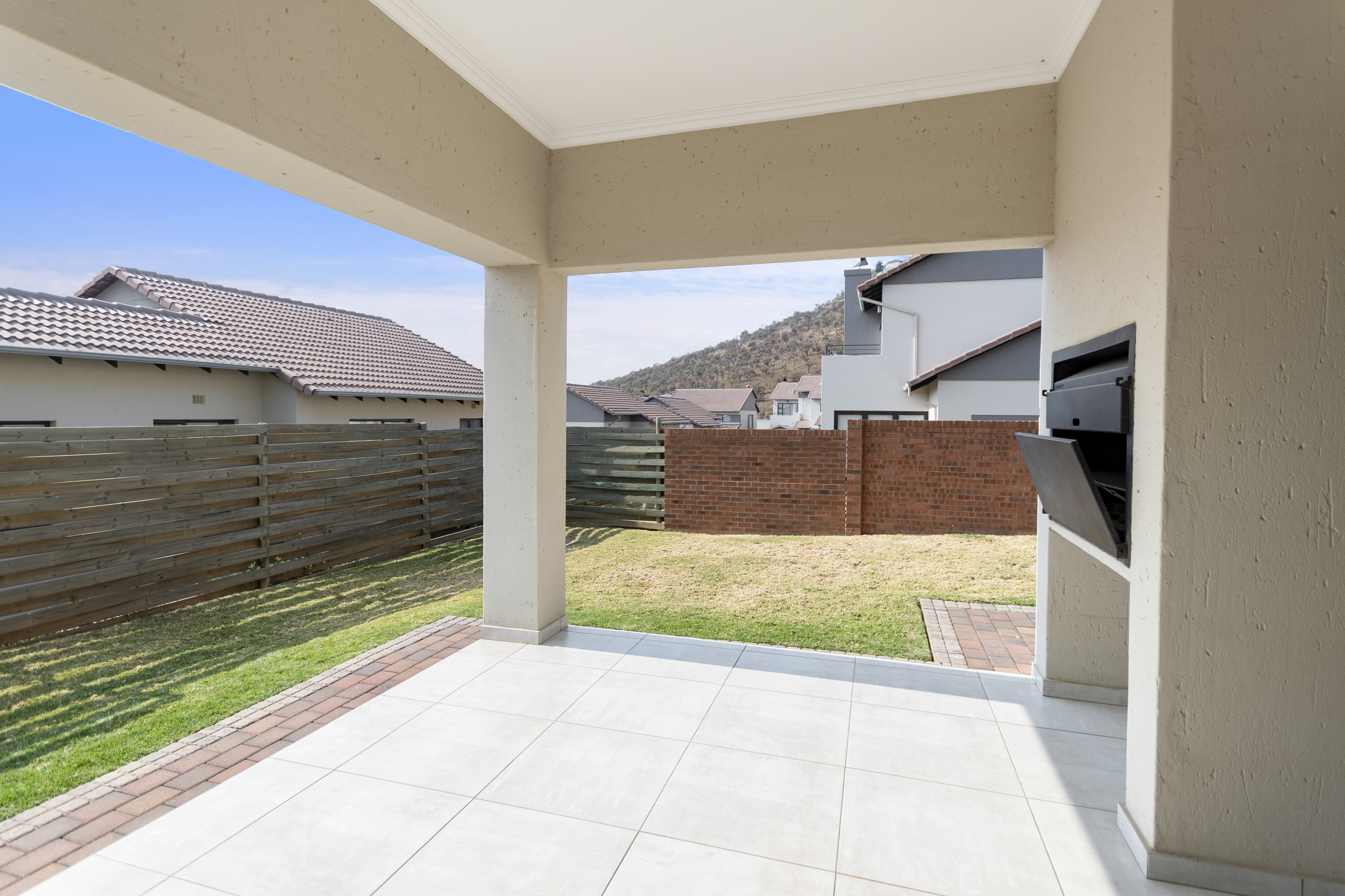 Nestled in the heart of Amorosa, in a serene valley surrounded by rolling hills, this modern home offers the perfect blend of comfort, security, and breathtaking views. Property Features: Spacious Bedrooms Upstairs with 2 sleek bathrooms 1 Guest Bedroom Downstairs with its own shower, toilet, and basin – ideal for guests or extended family Open-Plan Living with a seamless flow between the kitchen, dining, and lounge areas Modern Kitchen with a gas stove for convenience and efficiency Entertainment Ready: Sliders open onto a covered veranda with a built-in braai and a private garden – perfect for gatherings and quiet evenings Double Automated Garage for your convenience and peace of mind Estate & Lifestyle: This well-maintained complex offers 24/7 security, ensuring a safe and secure environment for you and your family. The estate is beautifully designed with a sense of community, offering you the perfect balance between modern living and nature’s tranquillity. Location: Amorosa is a gem of the West Rand, surrounded by natural beauty and close to all major amenities, top schools, and shopping destinations. The surrounding hills provide a peaceful escape from the city’s hustle while keeping you connected to everything you need. A modern haven with views you’ll love – move-in ready and waiting for you! So call me to setup your private viewing. Size – 211 sq m Levy – R1464.72 Electricity – prepaid Rates – R1 790.44 Refuse – R548.55 Sewer – R802.39