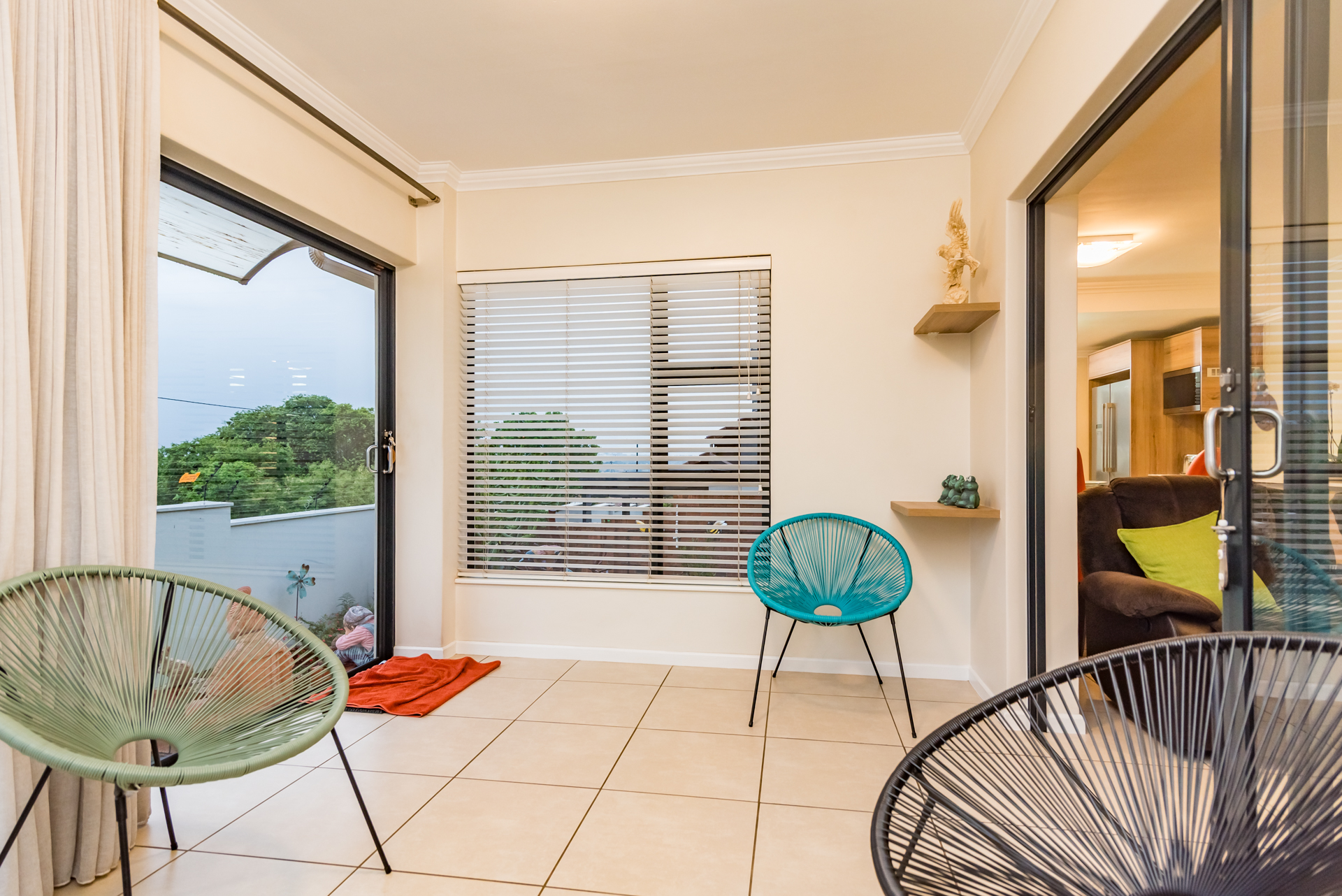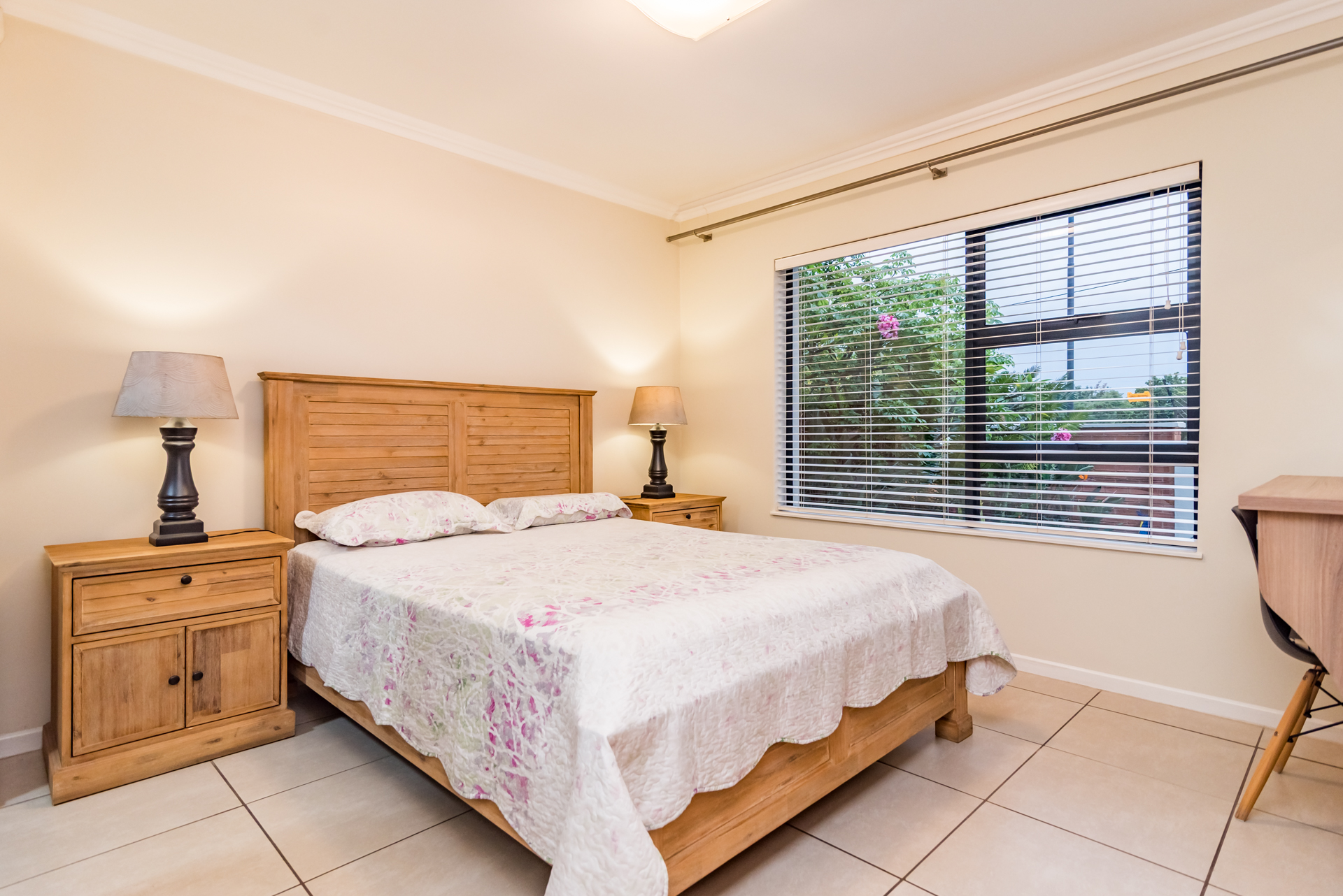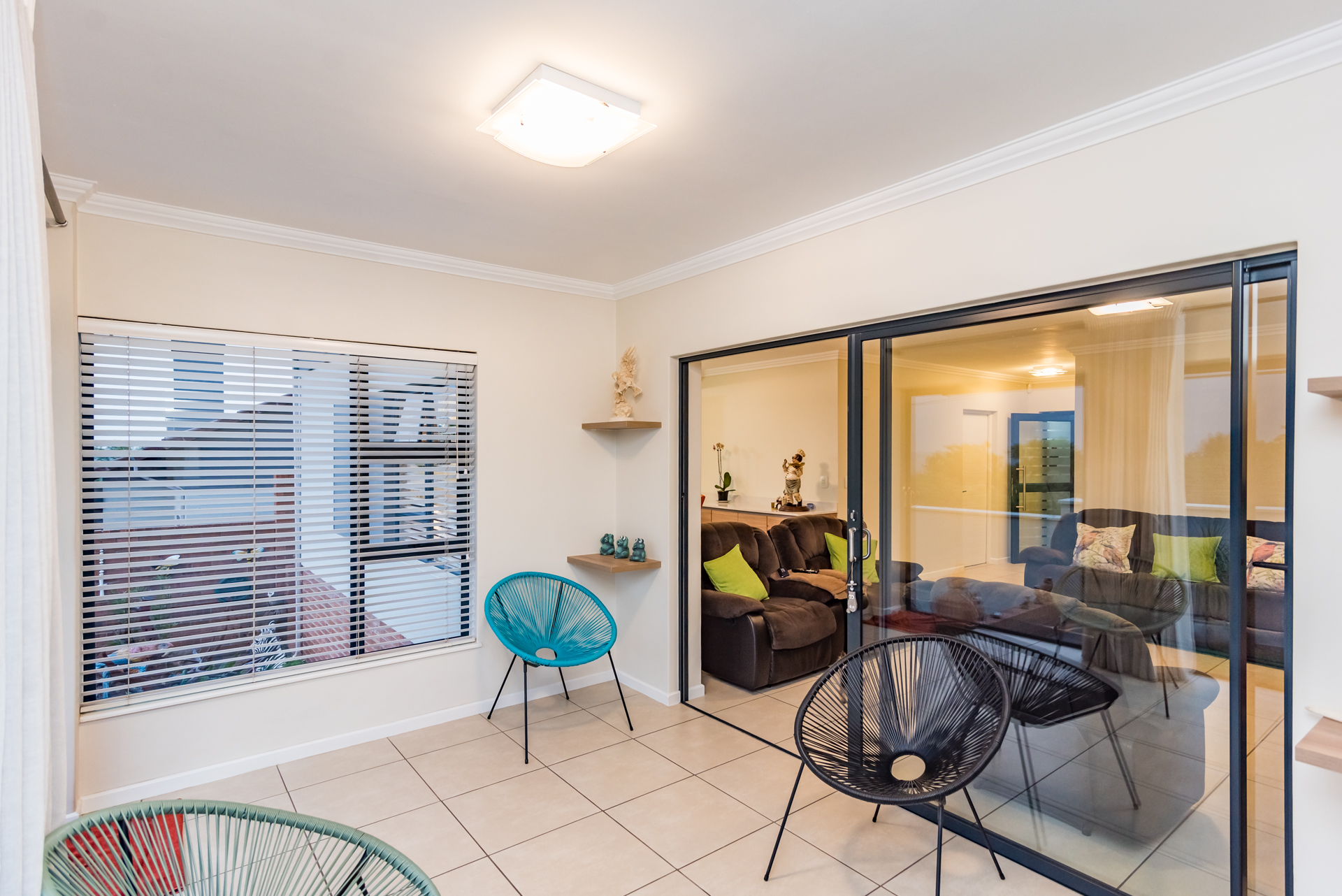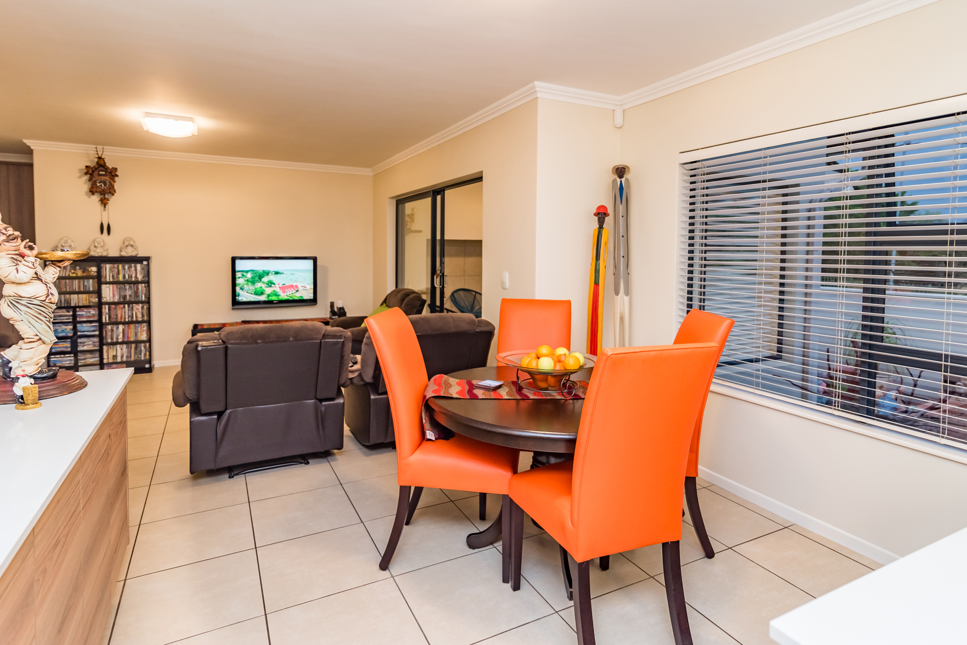The open-plan living and dining areas create a seamless flow, complemented by a sleek, fully fitted kitchen. The butler-style scullery and laundry add both convenience and sophistication, keeping the heart of the home neat and uncluttered.