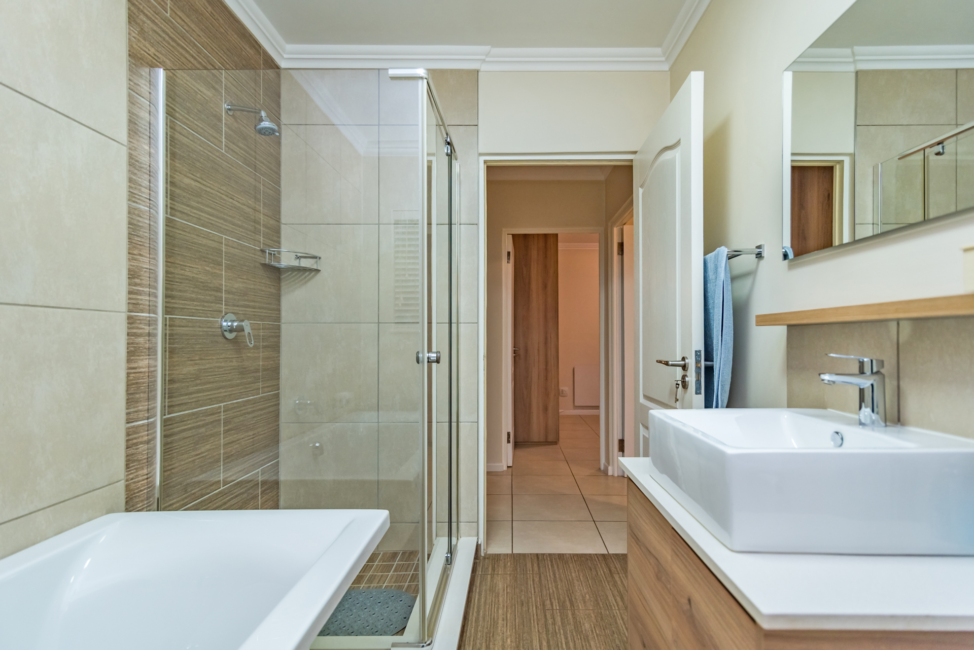 Three well-sized bedrooms provide comfort and versatility, while the modern bathrooms are designed with clean, contemporary finishes. Natural light enhances the home throughout, giving it a warm yet elegant atmosphere.