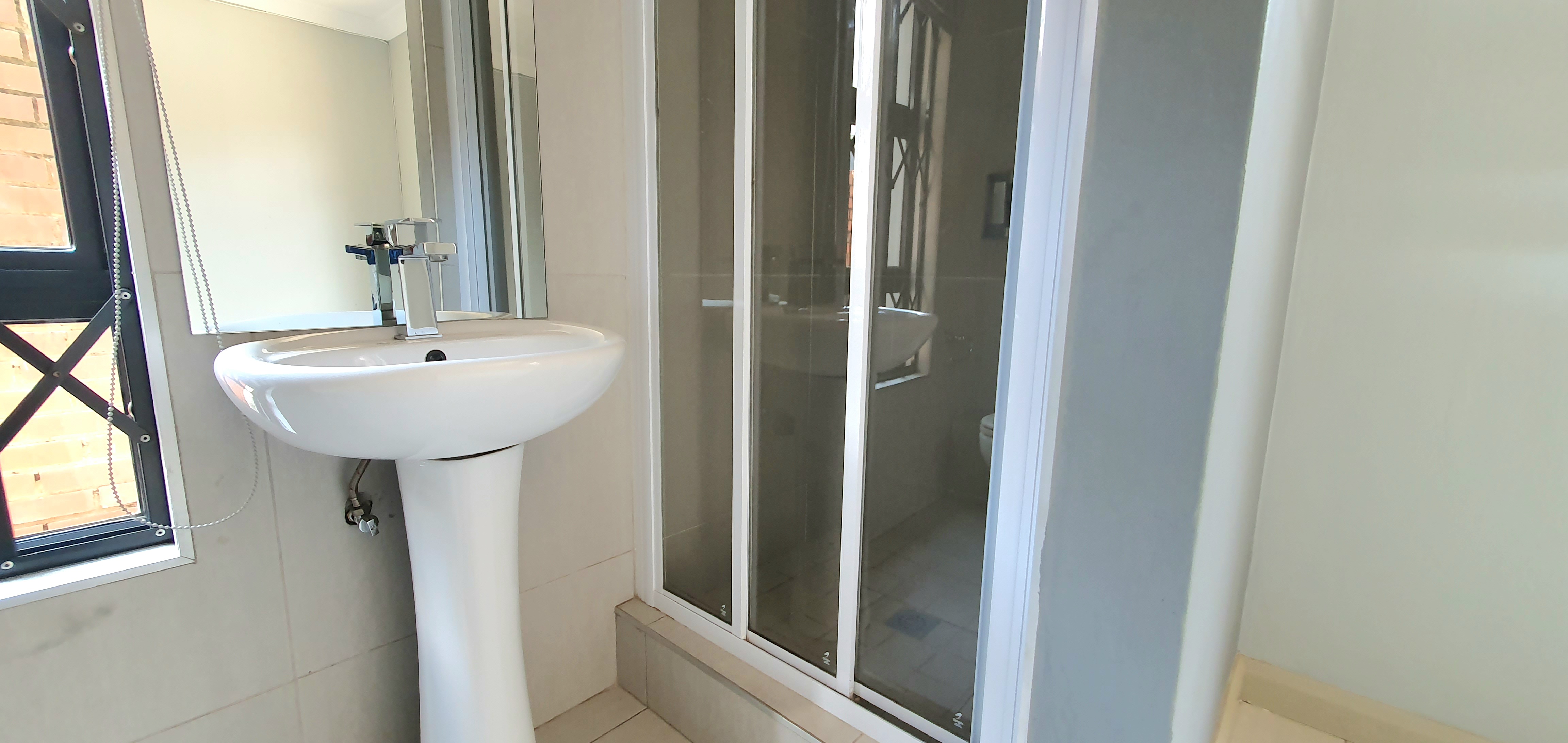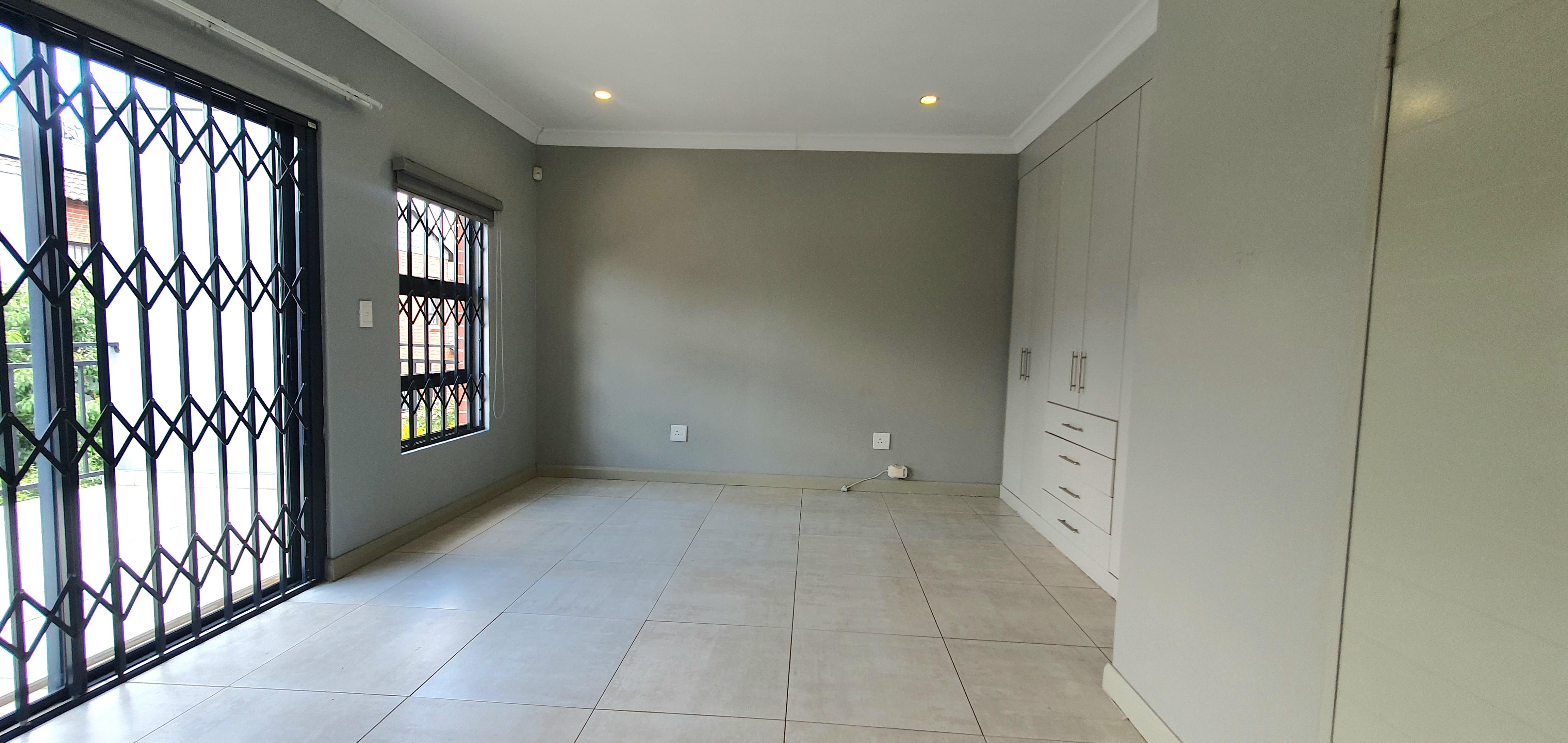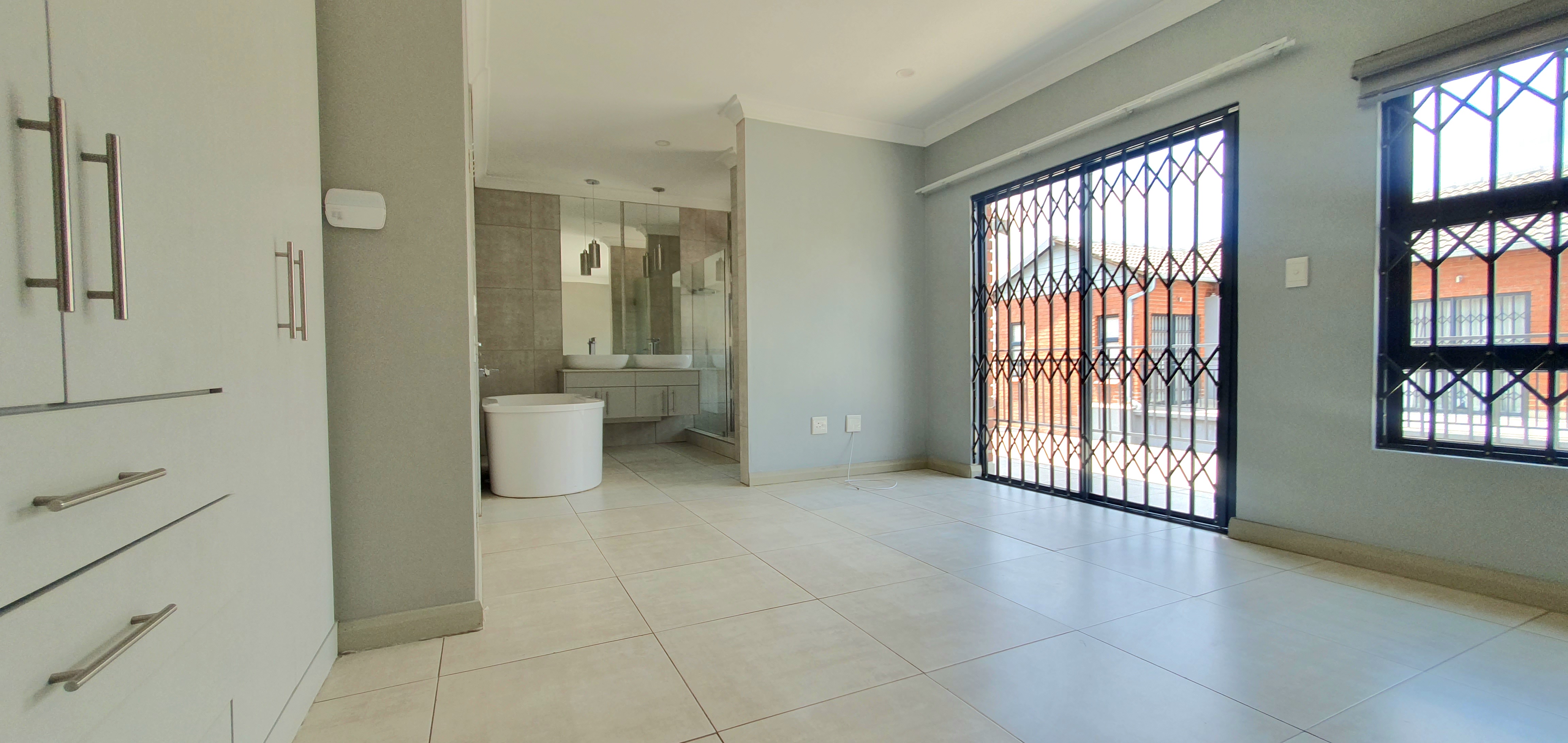 Spacious 4-bedroom cluster with stunning features! Downstairs boasts a 4th bedroom with en-suite bathroom and guest toilet, open-plan lounge and dining area, modern kitchen with gas stove and granite tops, scullery, and plenty of cupboards. Upstairs, the main bedroom has an en-suite full bathroom and balcony, the second bedroom also leads to the balcony, and the 3rd bedroom has lots of cupboards and extra shelves - these two bedrooms share a full bathroom. All bedroom windows have blinds and bathrooms are super modern. Outside, enjoy the patio with built-in braai overlooking a beautiful garden, double automated garage, and backup generator for power. Modern, comfy, and totally liveable! Perfect for families or professionals.
