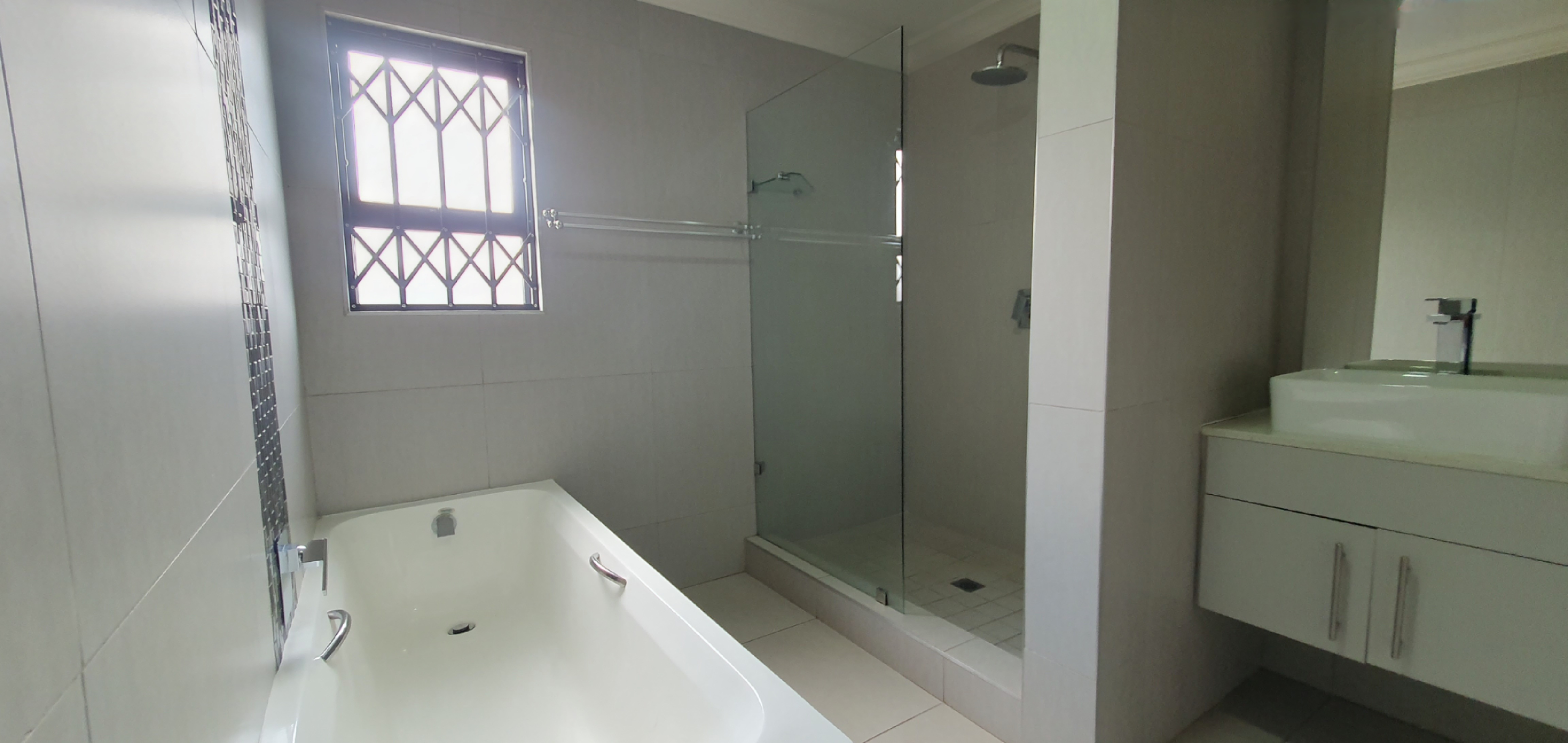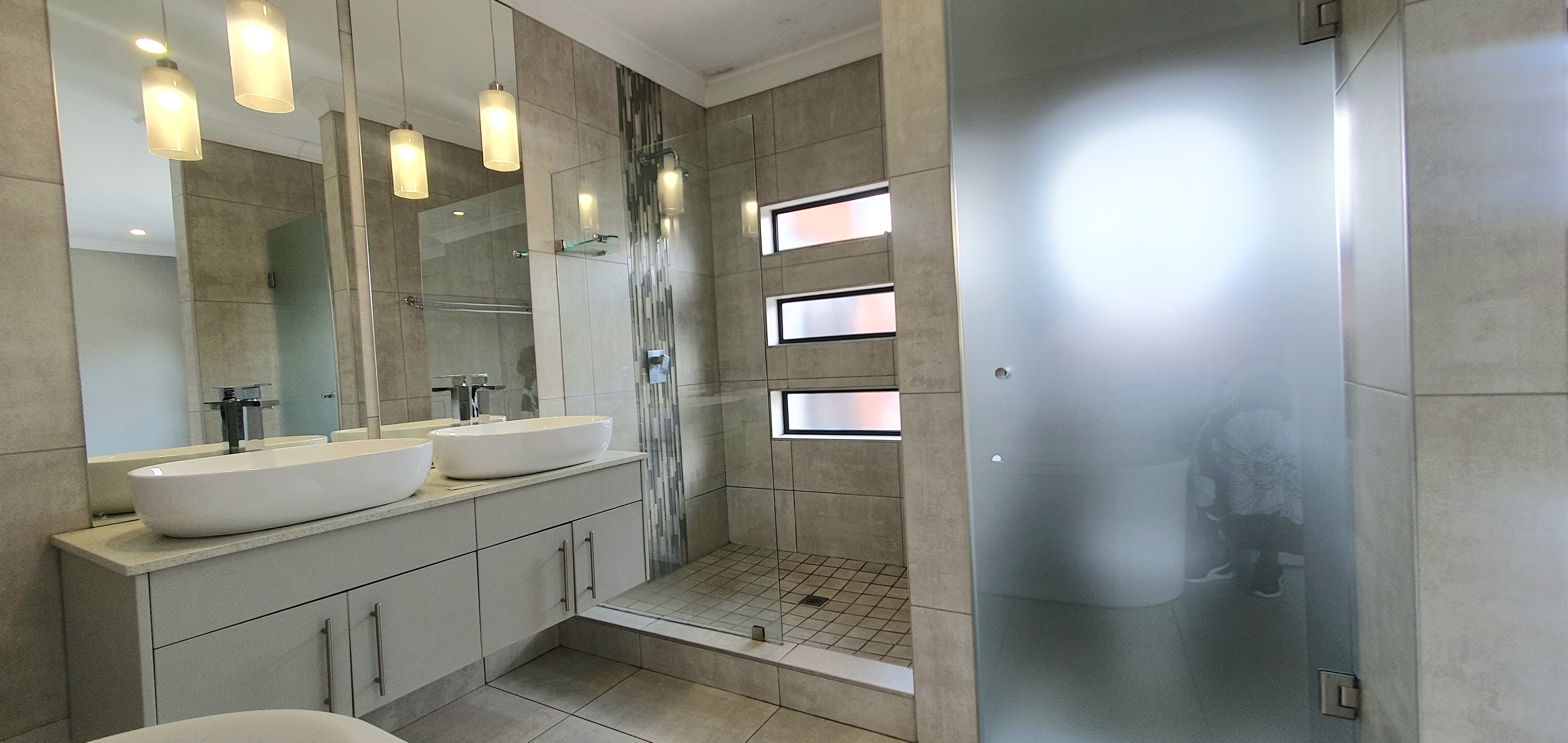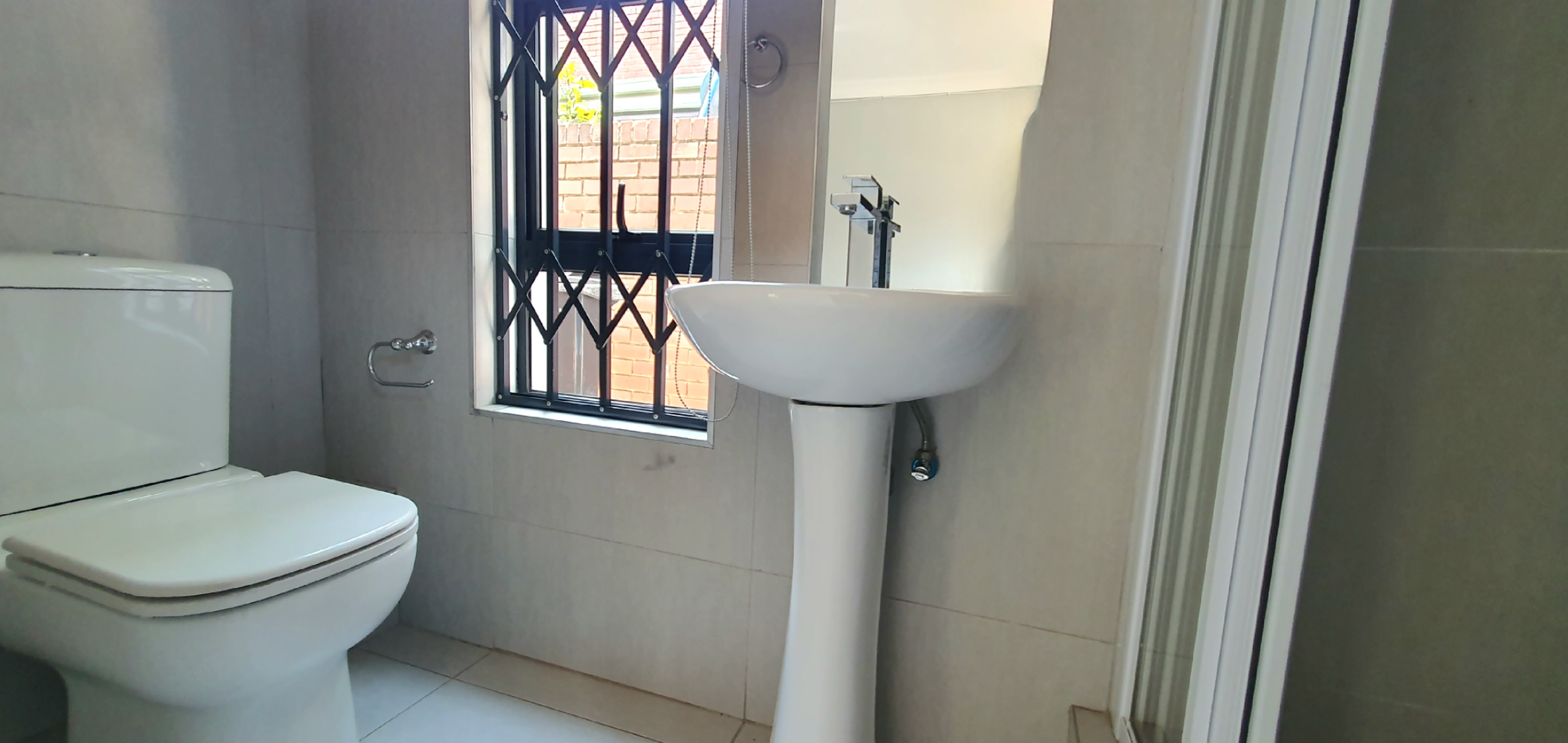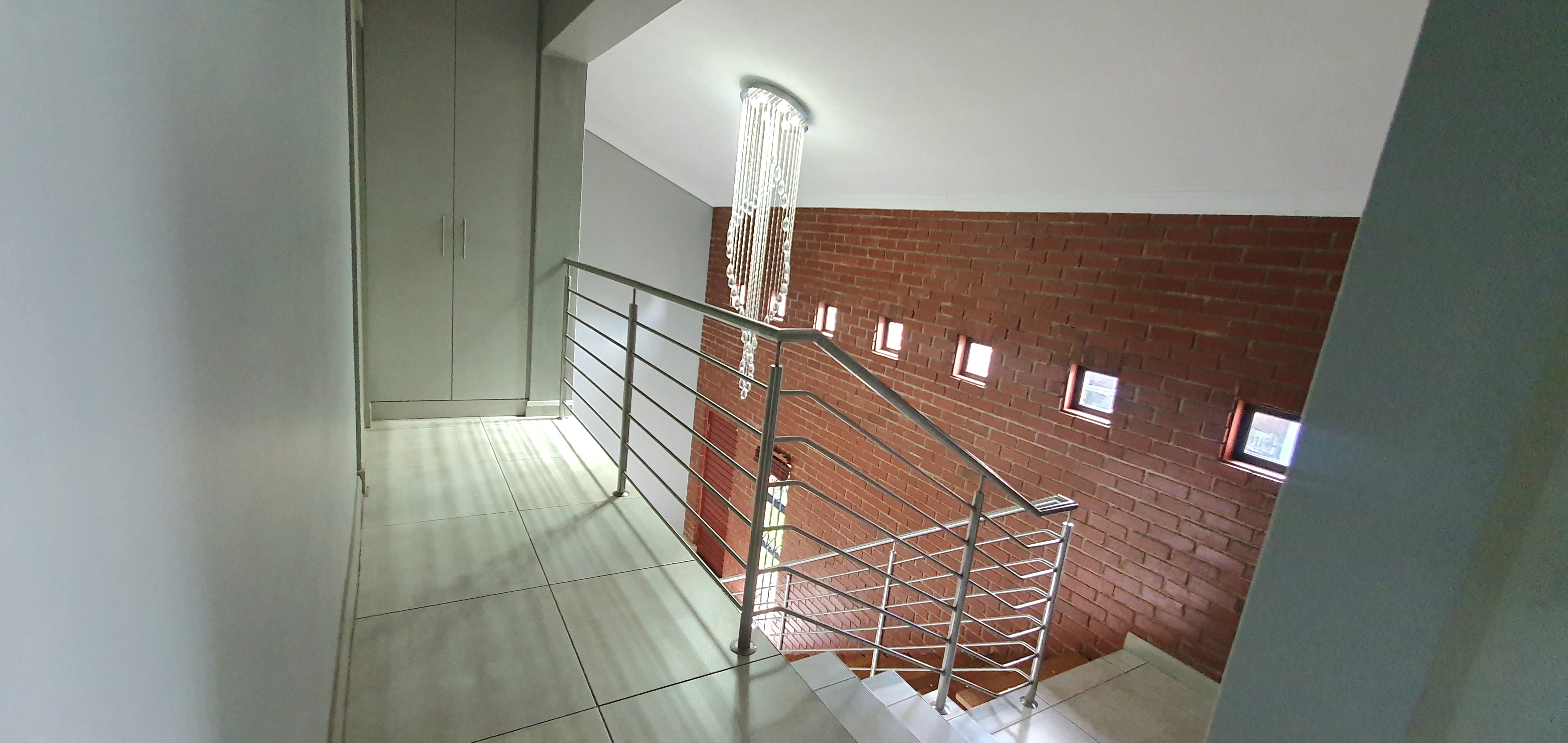 Spacious 4-bedroom cluster with stunning features! Downstairs boasts a 4th bedroom with en-suite bathroom and guest toilet, open-plan lounge and dining area, modern kitchen with gas stove and granite tops, scullery, and plenty of cupboards. Upstairs, the main bedroom has an en-suite full bathroom and balcony, the second bedroom also leads to the balcony, and the 3rd bedroom has lots of cupboards and extra shelves - these two bedrooms share a full bathroom. All bedroom windows have blinds and bathrooms are super modern. Outside, enjoy the patio with built-in braai overlooking a beautiful garden, double automated garage, and backup generator for power. Modern, comfy, and totally liveable! Perfect for families or professionals.