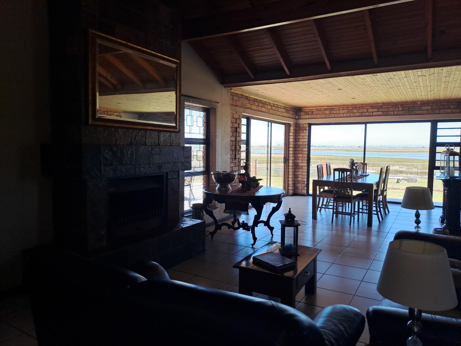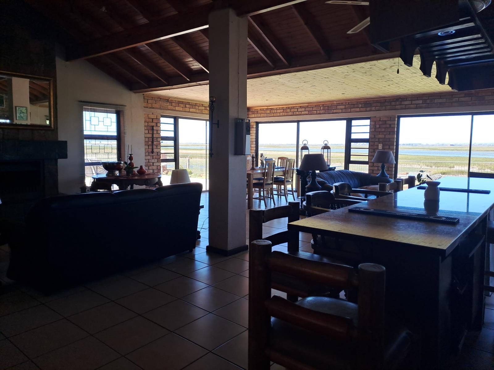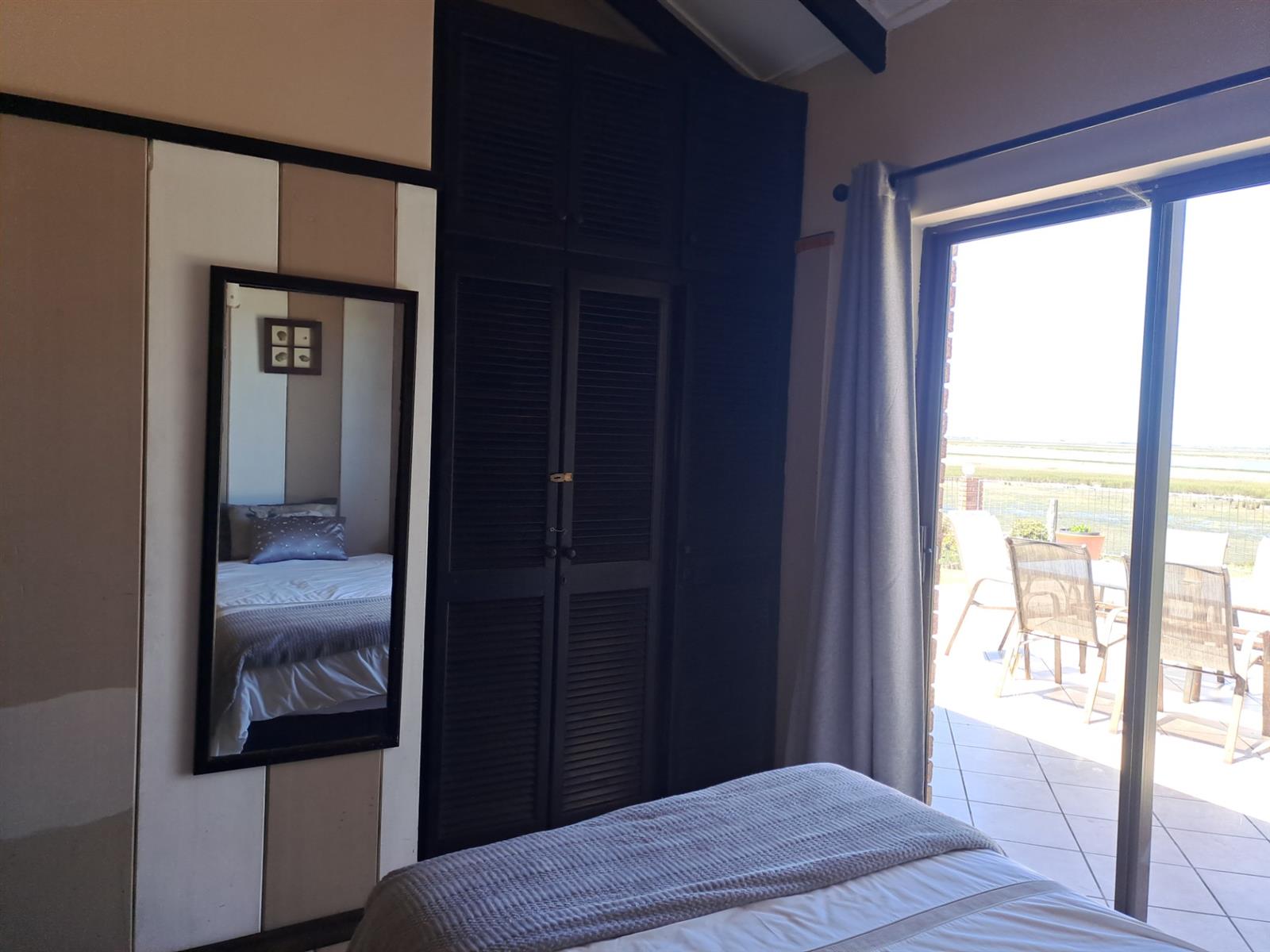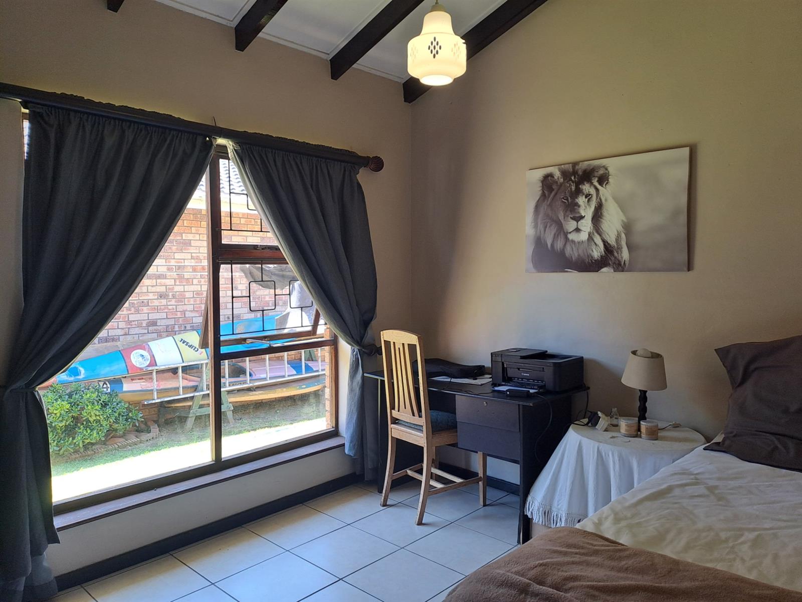 The main house features four generously sized bedrooms, each with sliding doors leading out onto the patio—allowing you to wake up to uninterrupted river vistas. The open-plan kitchen, dining, and living areas are wonderfully spacious, flowing effortlessly into two lounges that can be used as additional living spaces or a dedicated dining area. A built-in braai and bar make this home ideal for entertaining, while a cosy fireplace in the main living area adds warmth and charm during cooler months.