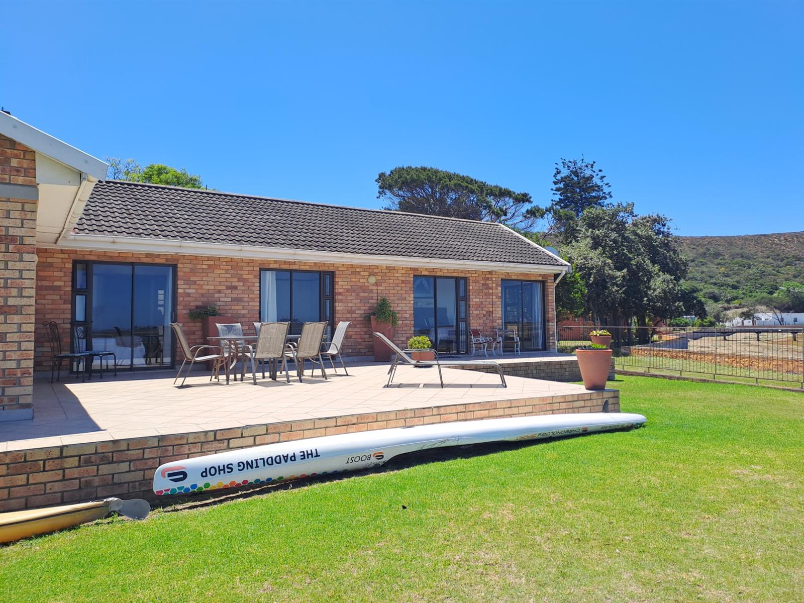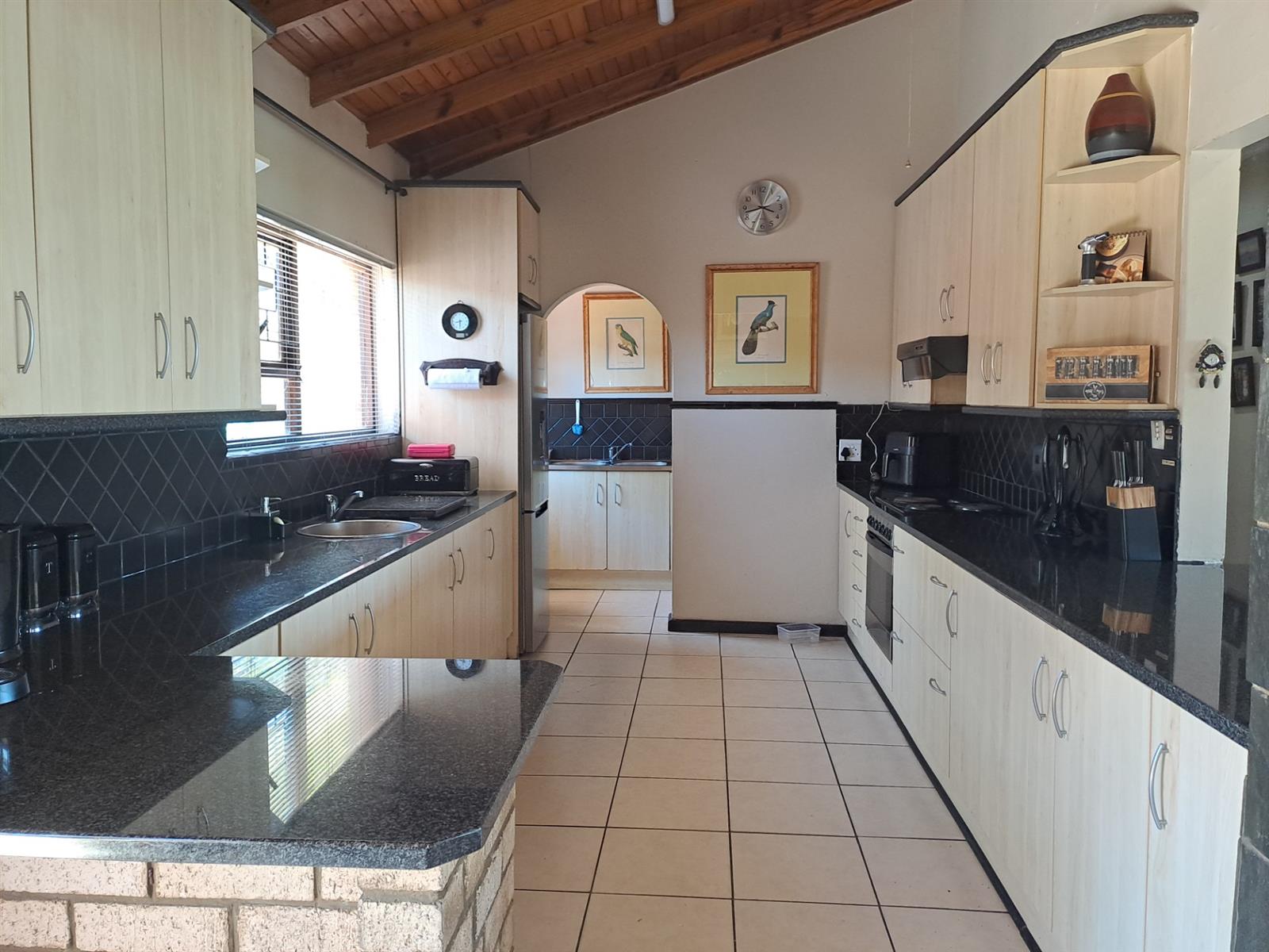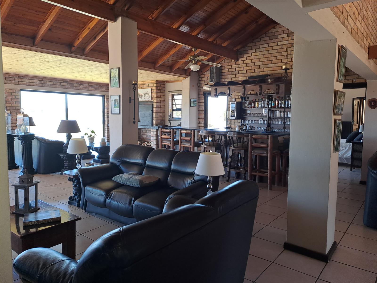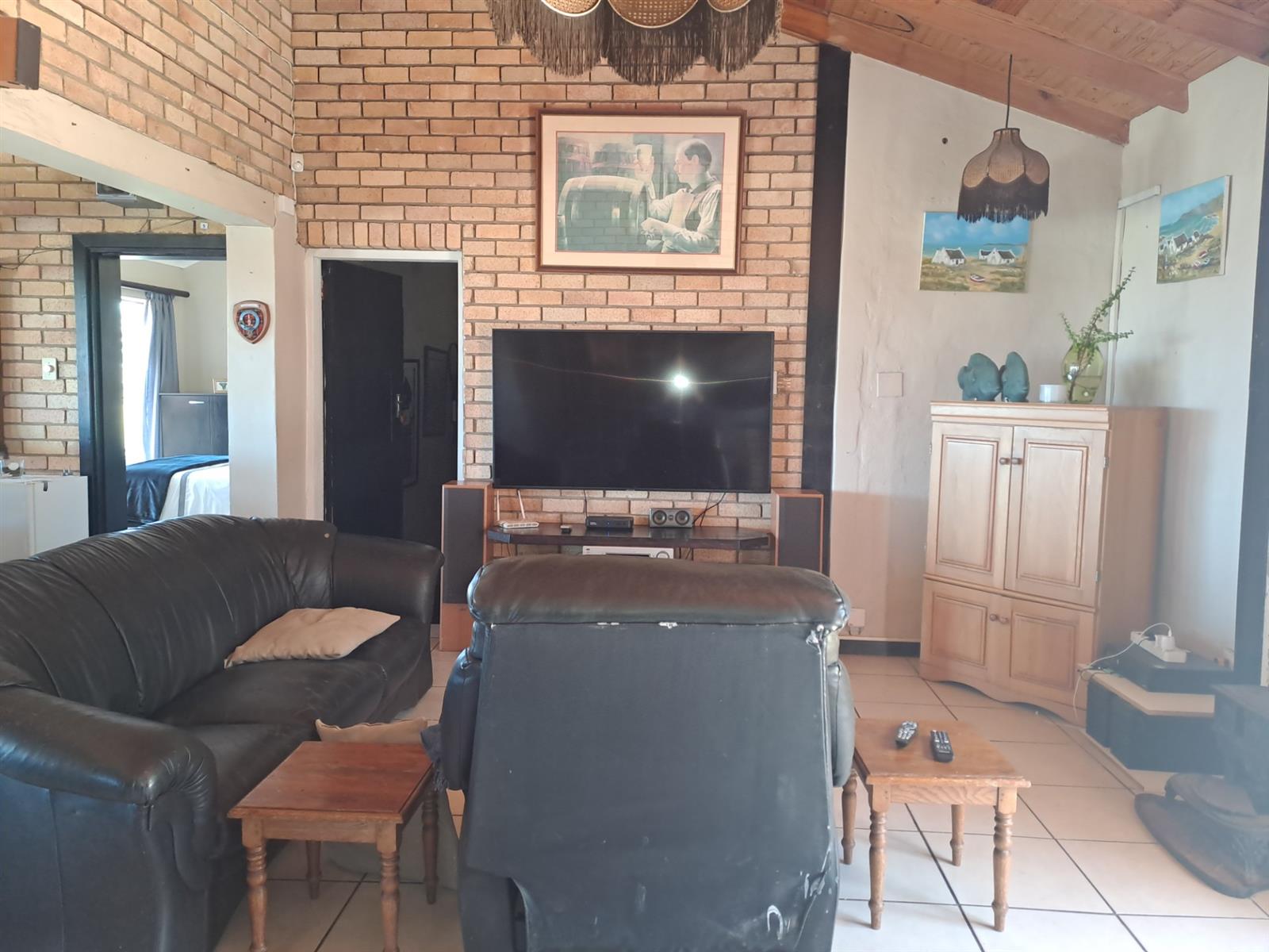The main house features four generously sized bedrooms, each with sliding doors leading out onto the patio—allowing you to wake up to uninterrupted river vistas. The open-plan kitchen, dining, and living areas are wonderfully spacious, flowing effortlessly into two lounges that can be used as additional living spaces or a dedicated dining area. A built-in braai and bar make this home ideal for entertaining, while a cosy fireplace in the main living area adds warmth and charm during cooler months.