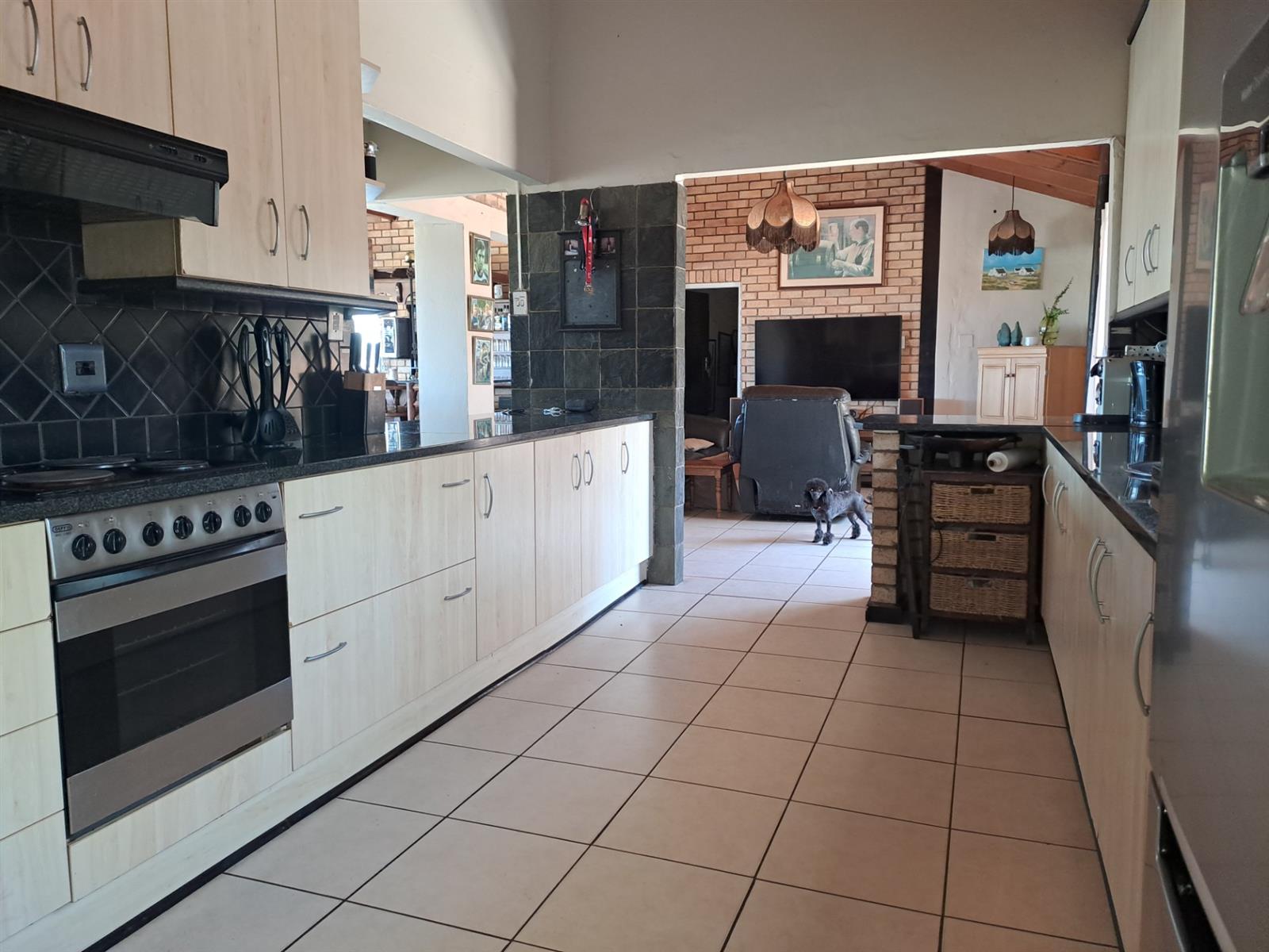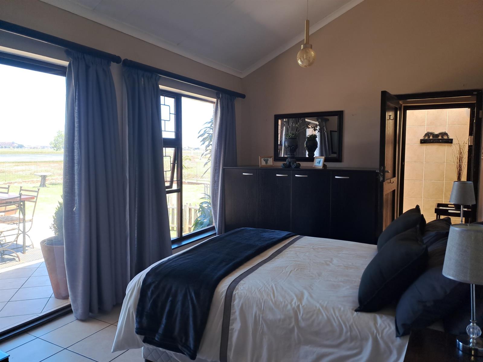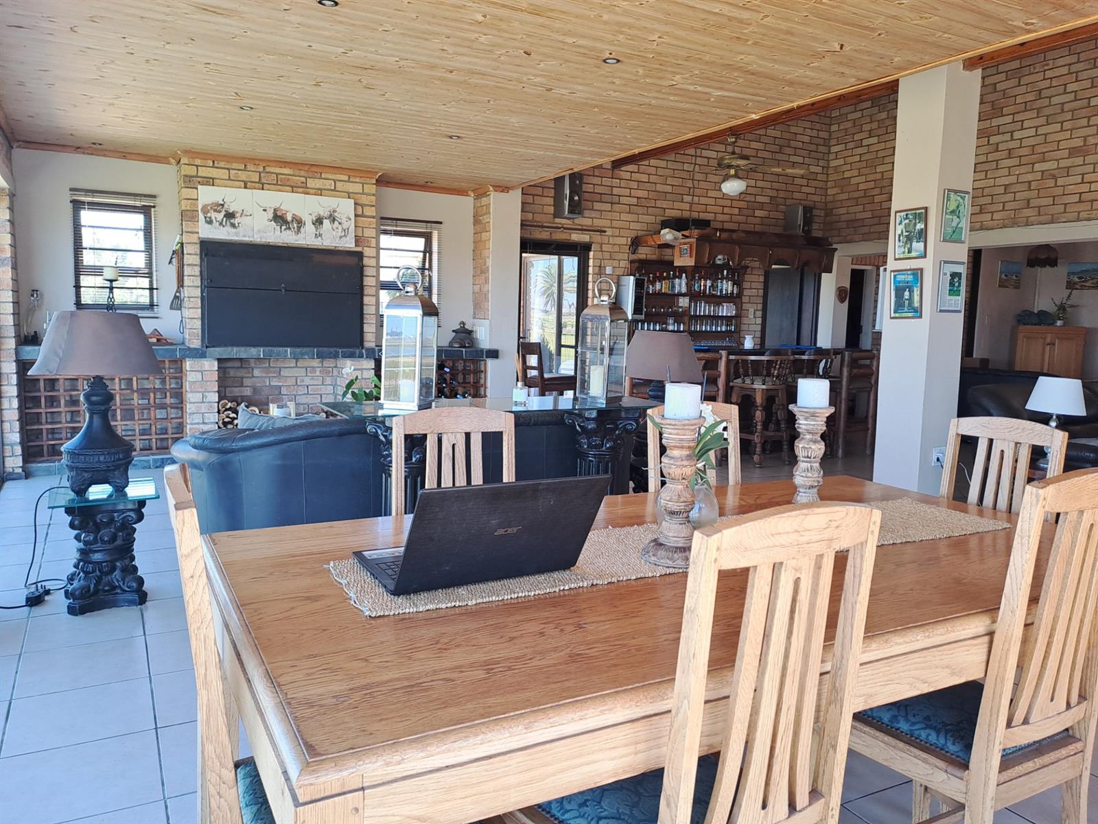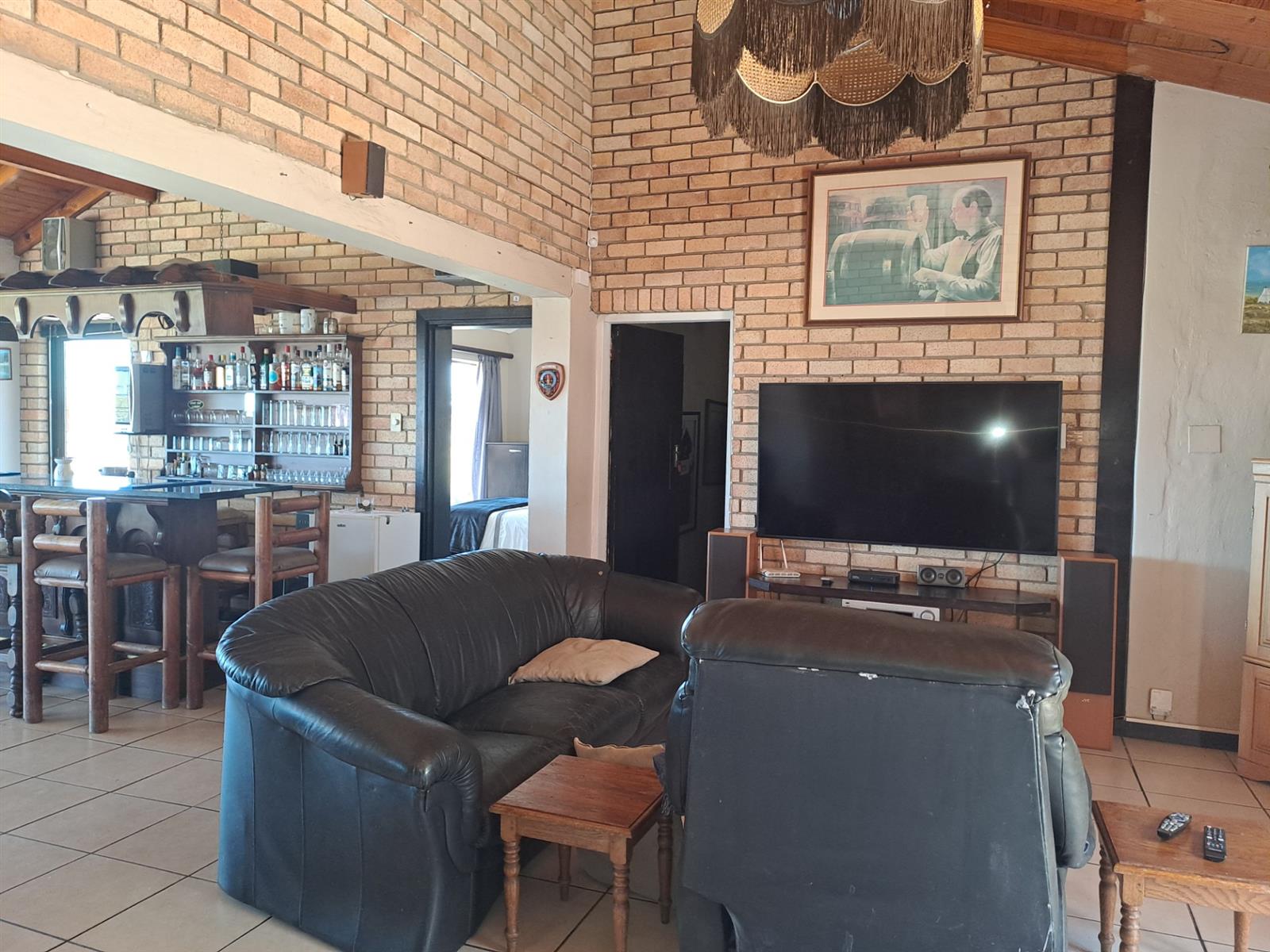 The main house features four generously sized bedrooms, each with sliding doors leading out onto the patio—allowing you to wake up to uninterrupted river vistas. The open-plan kitchen, dining, and living areas are wonderfully spacious, flowing effortlessly into two lounges that can be used as additional living spaces or a dedicated dining area. A built-in braai and bar make this home ideal for entertaining, while a cosy fireplace in the main living area adds warmth and charm during cooler months.