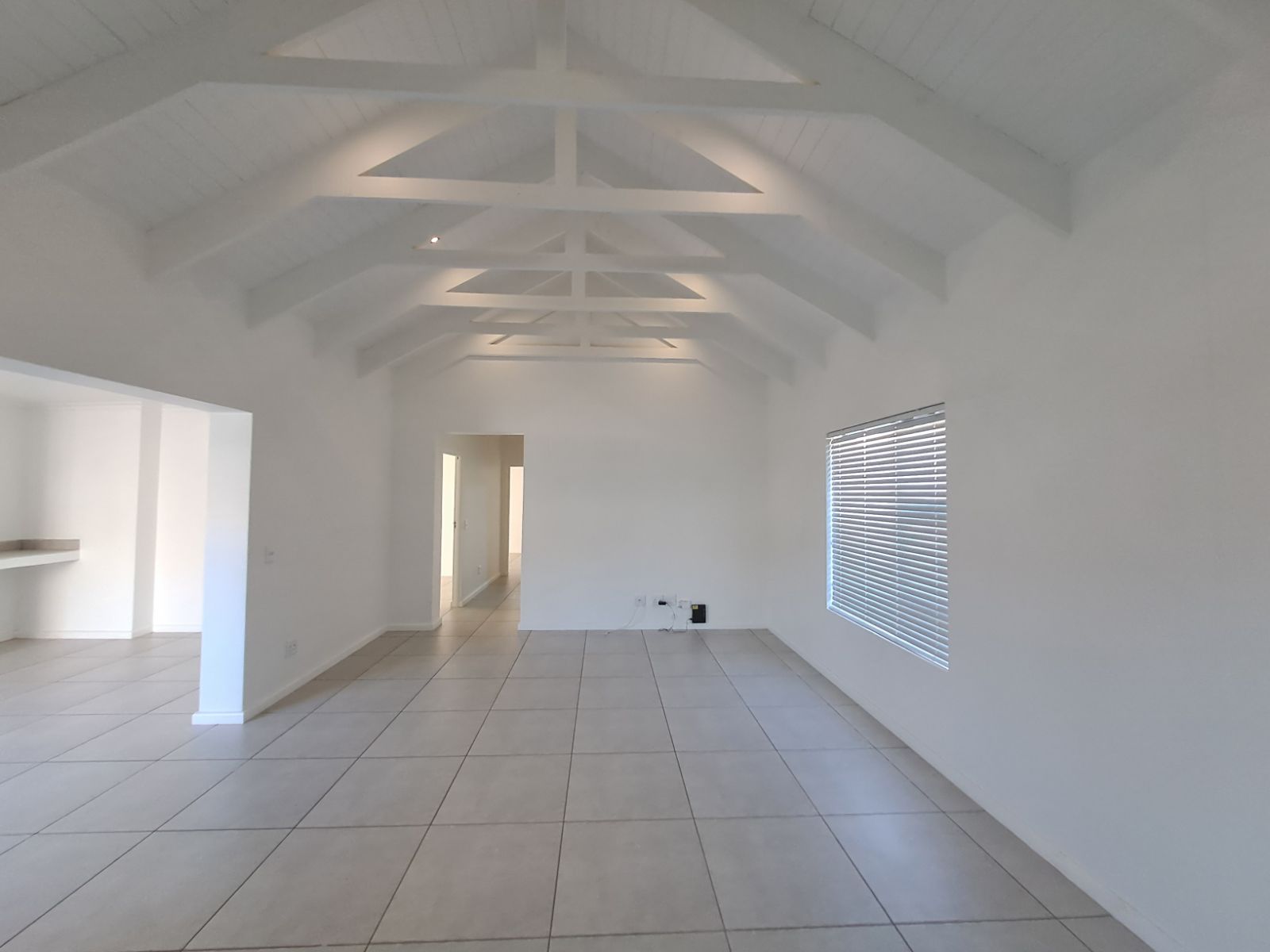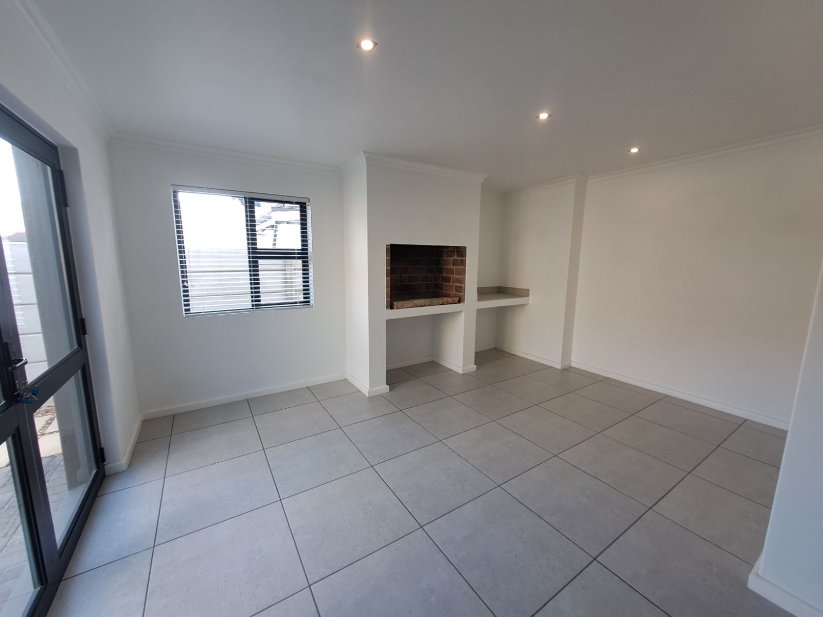 The open plan kitchen and living area form the heart of the home, a warm and welcoming space flowing seamlessly into the entertainment area with a built-in braai, perfect for relaxed weekends and easy evenings with family and friends.
