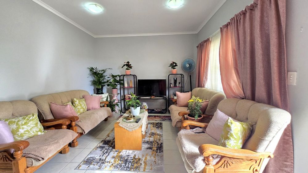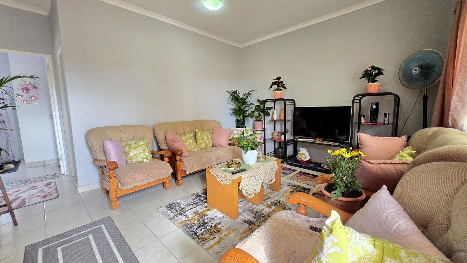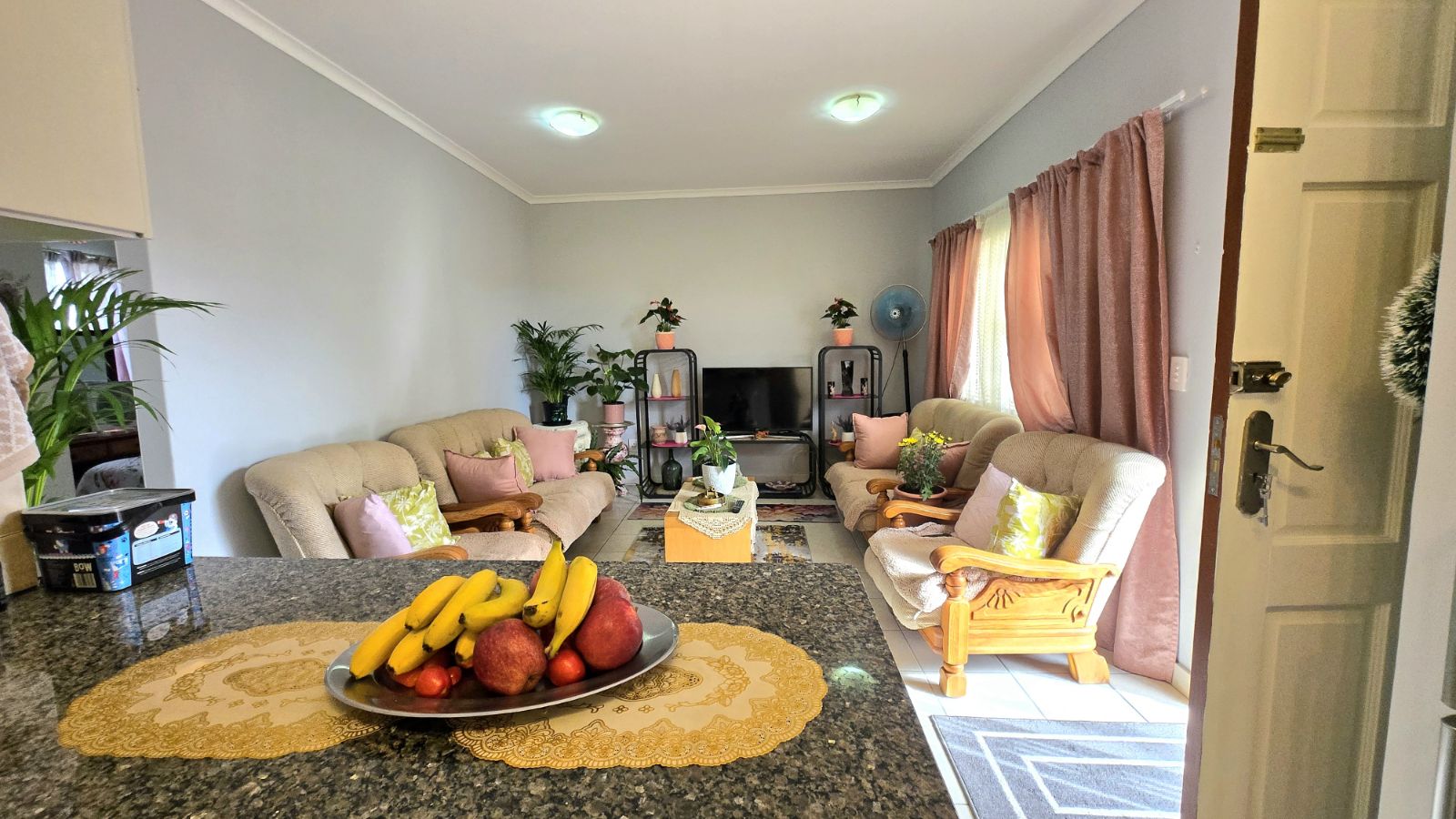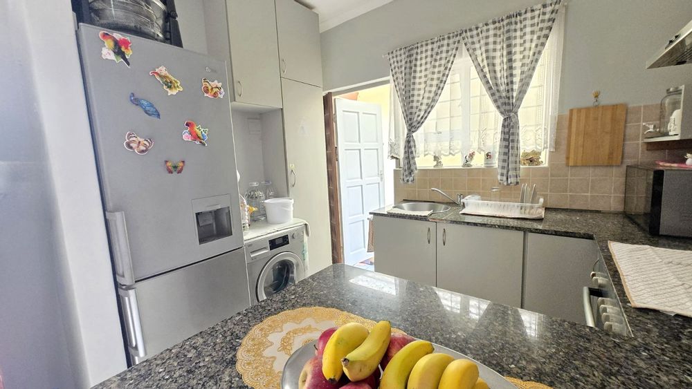 Both spacious bedrooms feature built-in cupboards and share a family bathroom. The open-plan kitchen seamlessly flows into the living area, creating a warm, inviting space.