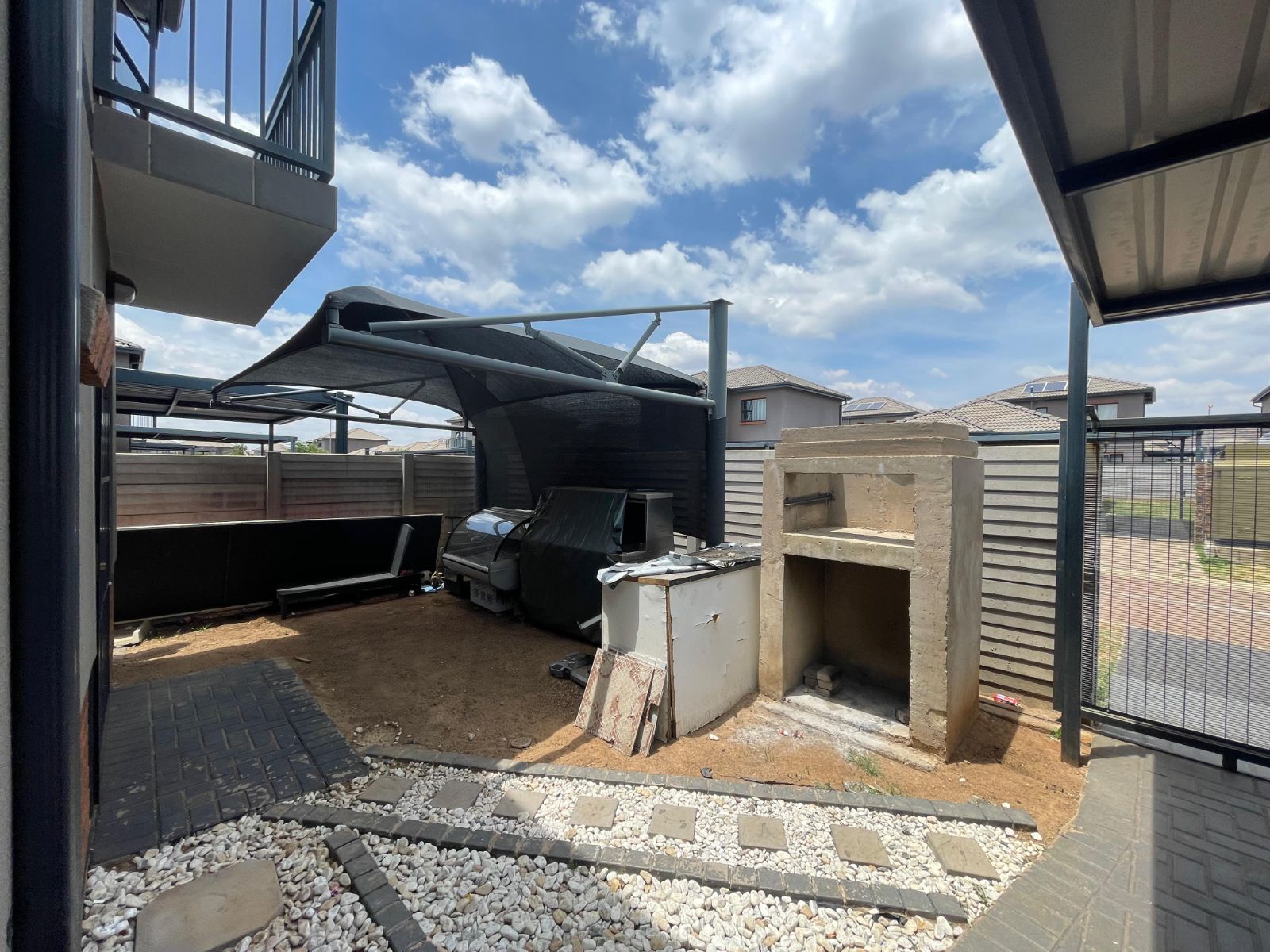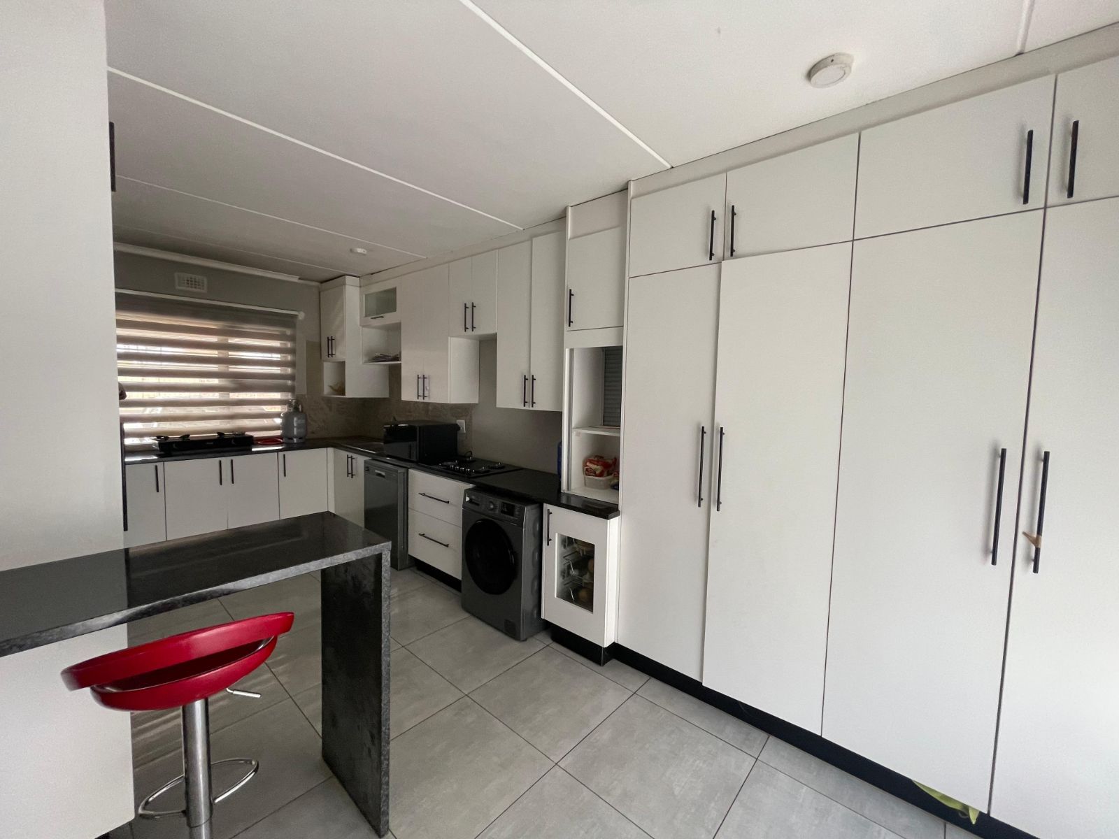 The heart of the home is a large open-plan kitchen that flows seamlessly into the living and dining areas, perfect for family gatherings or entertaining. Step outside to enjoy a cozy braai area and a low-maintenance garden, providing a tranquil outdoor space.