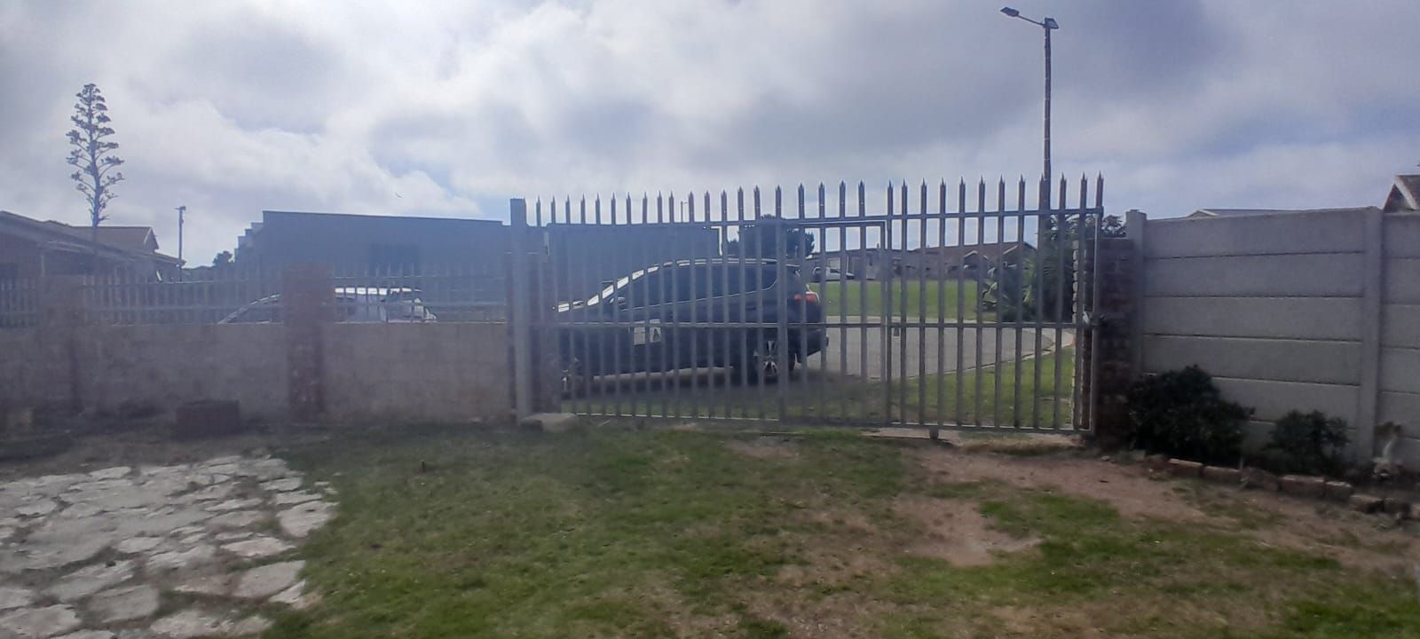 Open courtyard and paved front yard.