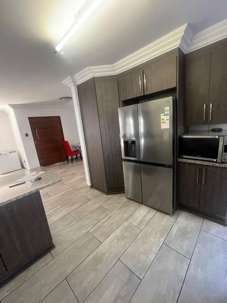 The open-plan design creates an effortless flow between the modern kitchen, expansive living areas, and the outdoors. The kitchen is a chef’s dream, showcasing granite countertops, ample cabinetry, and a separate scullery complete with laundry connections.