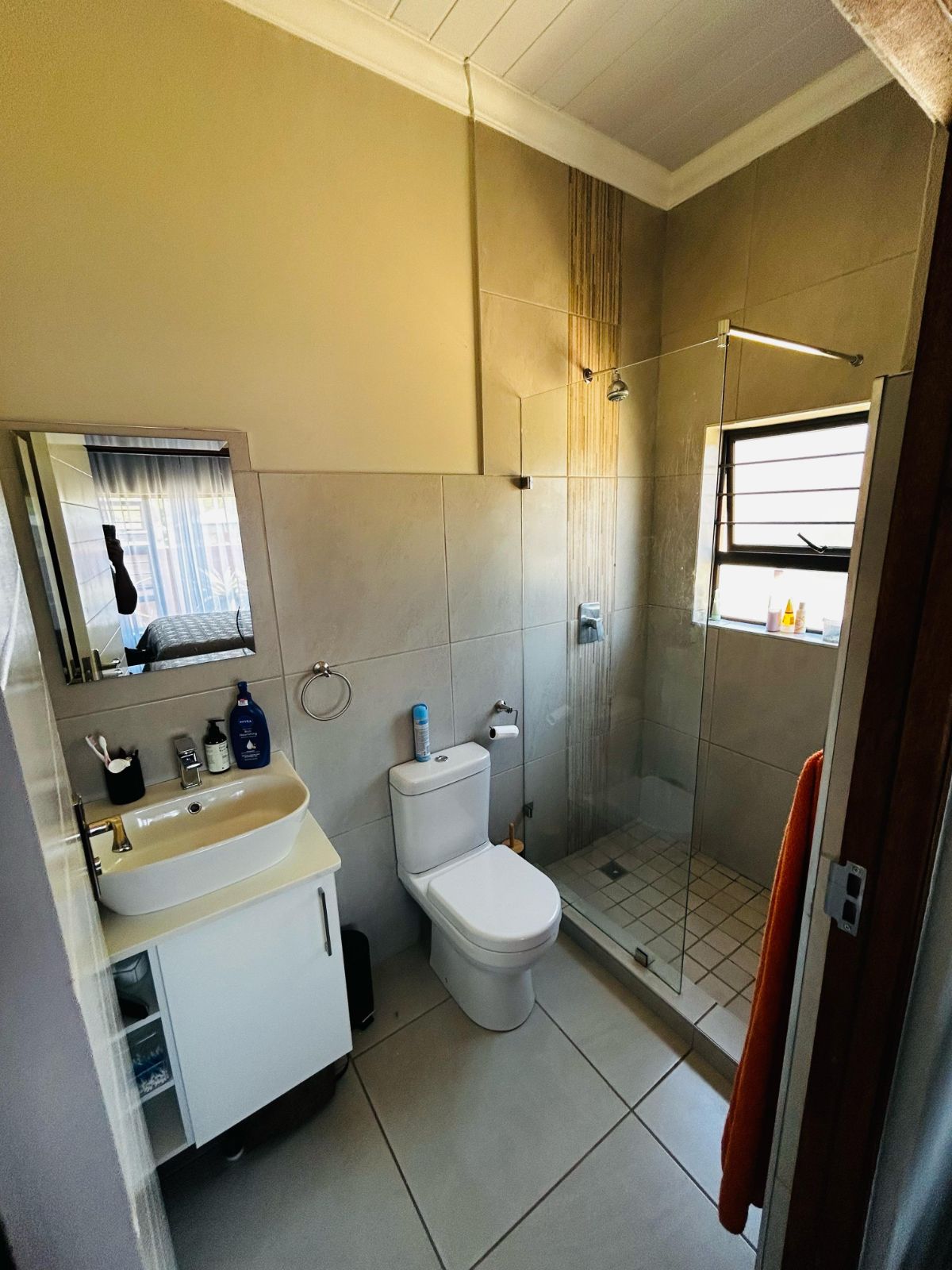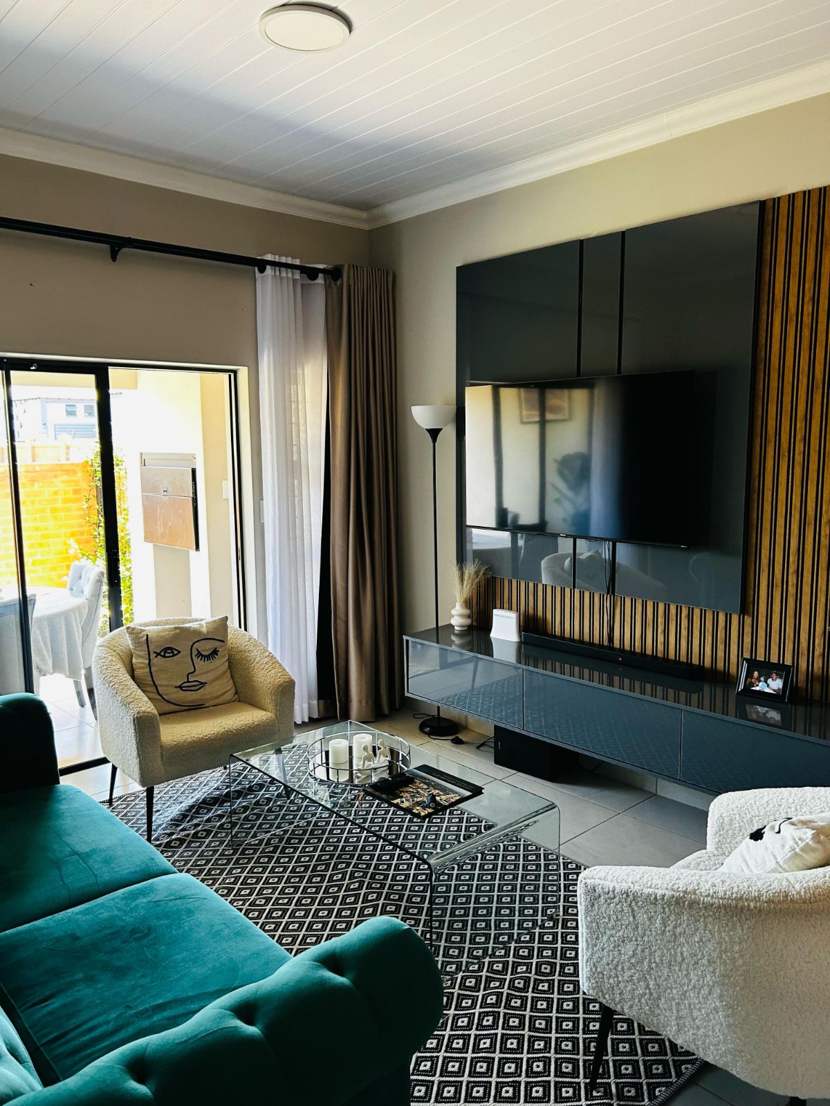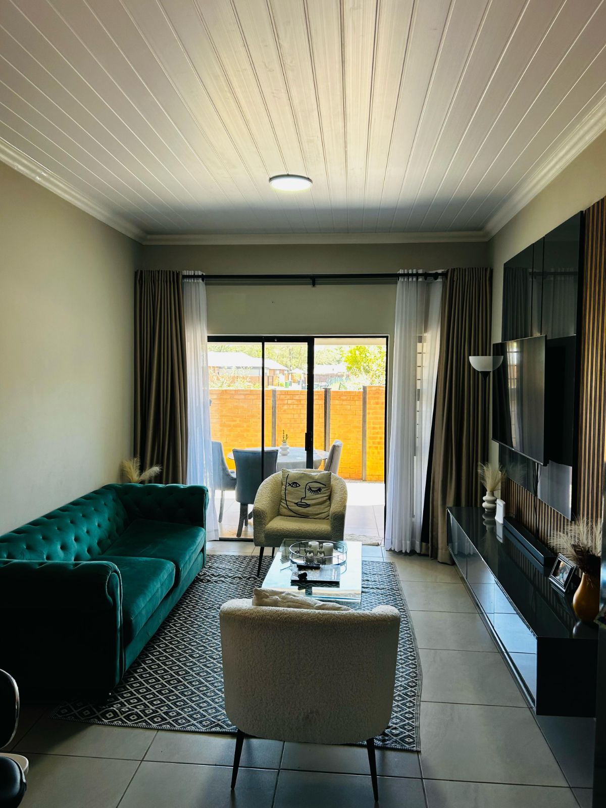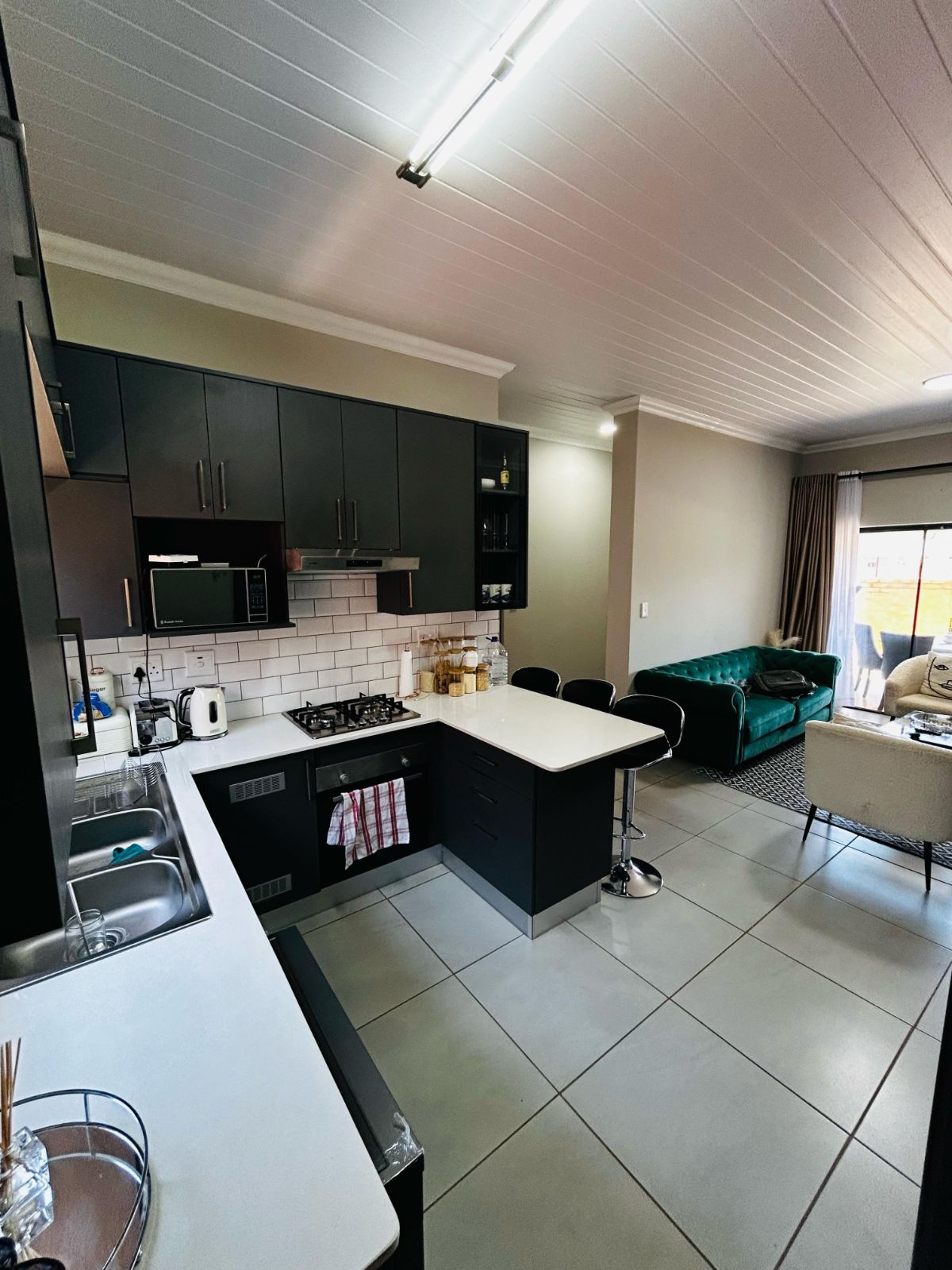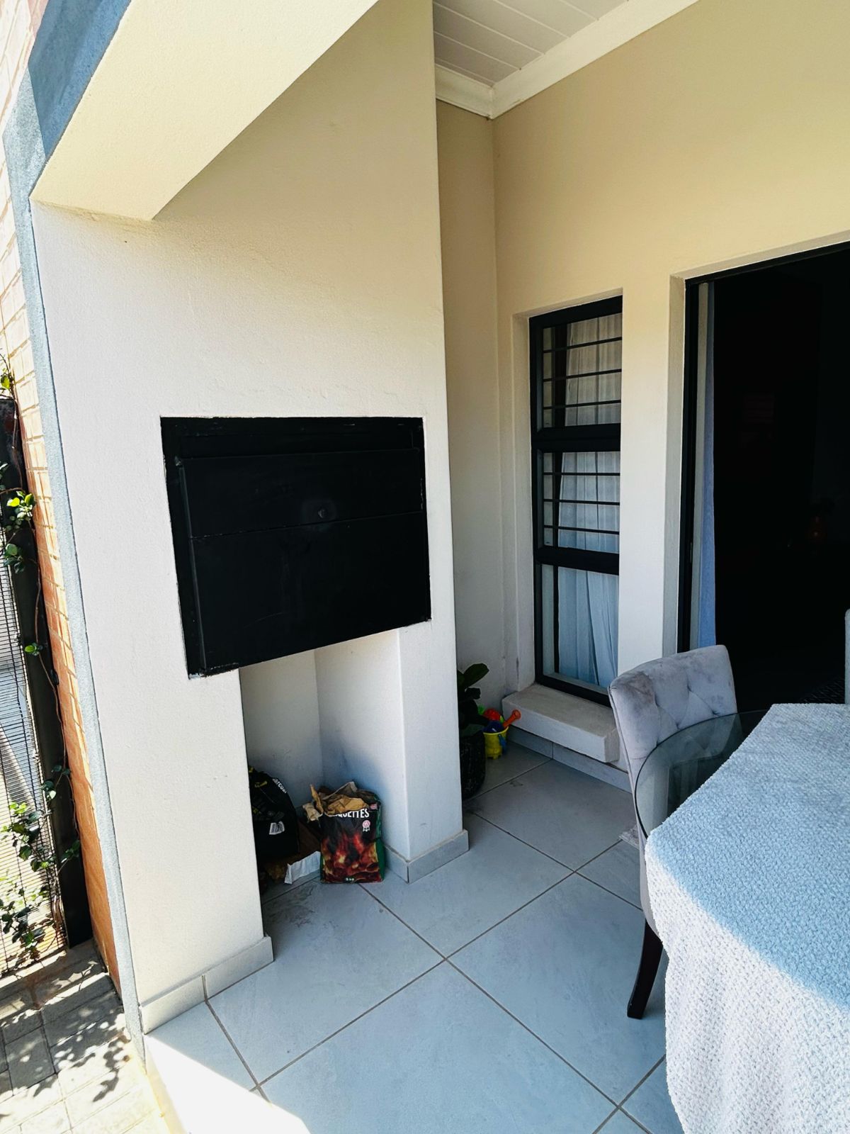This beautiful home in the secure Royal Blue Sky Estate offers the perfect combination of style and comfort. Featuring 2 spacious bedrooms and 2 bathrooms – one with a tub for relaxation and the other with a sleek shower – it caters to every lifestyle need. The modern kitchen flows effortlessly into the dining area, creating an inviting space for family meals and entertaining. A well-kept garden surrounds the home, while the private braai area and lapa provide the ideal spot for outdoor gatherings. With a double garage and bright living spaces, this property is designed for convenience and modern living, making it the perfect choice for those seeking both comfort and security.