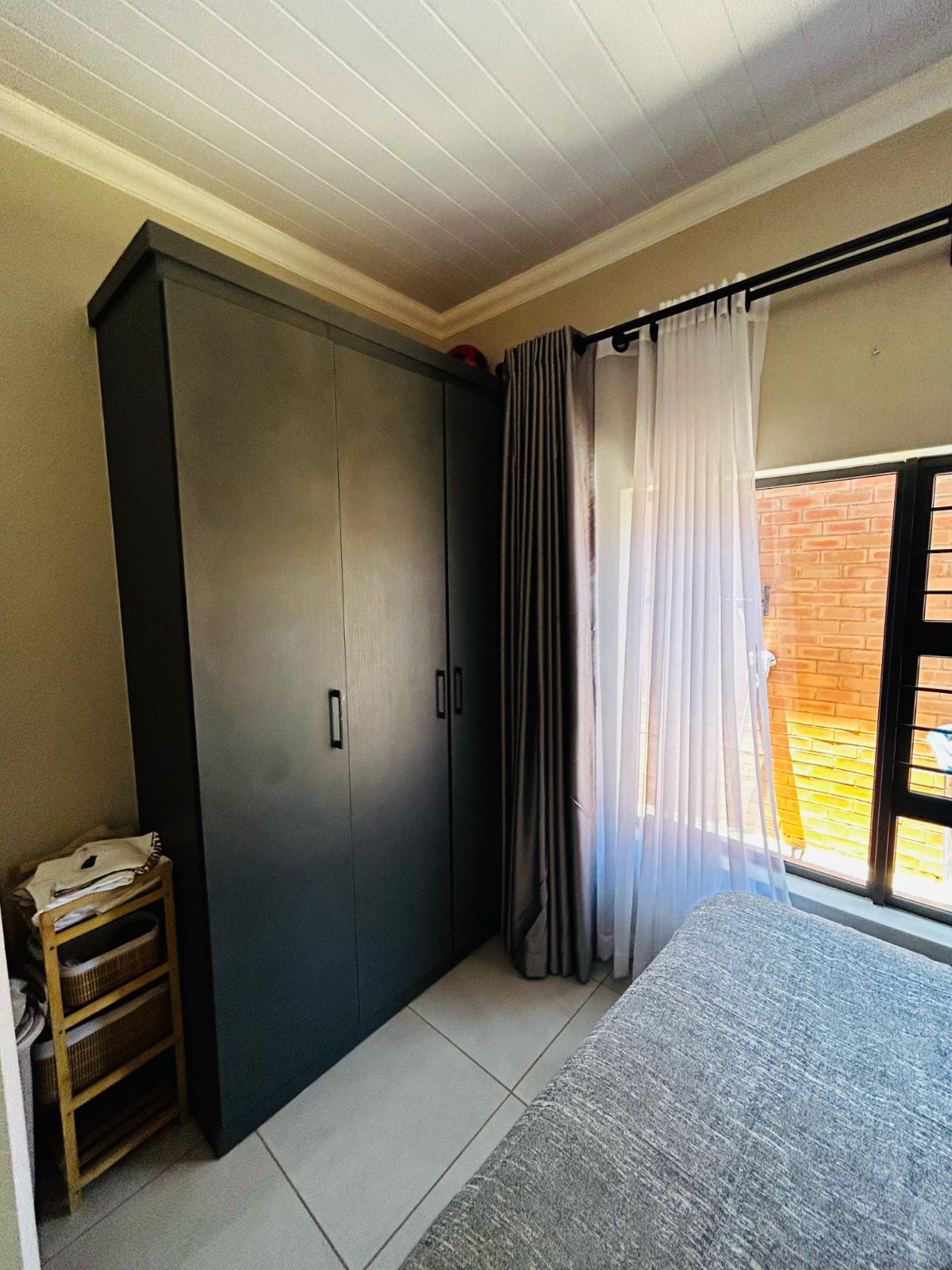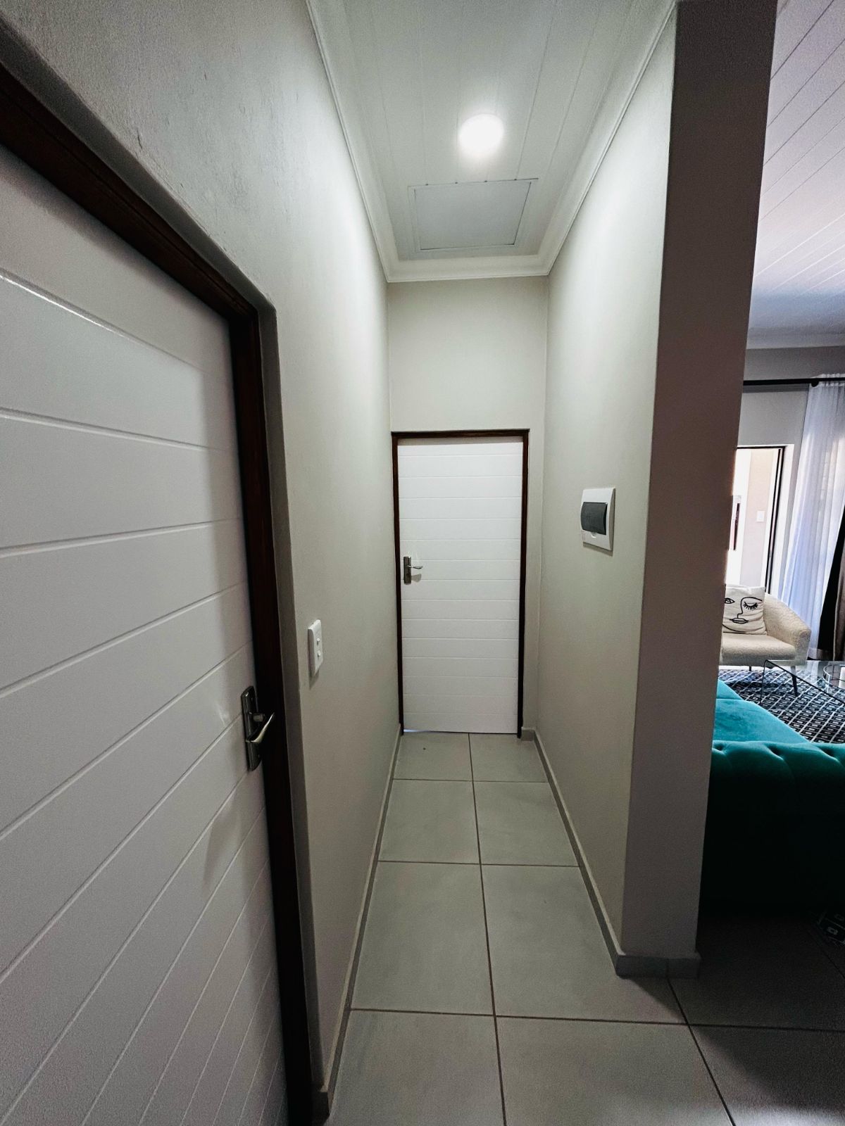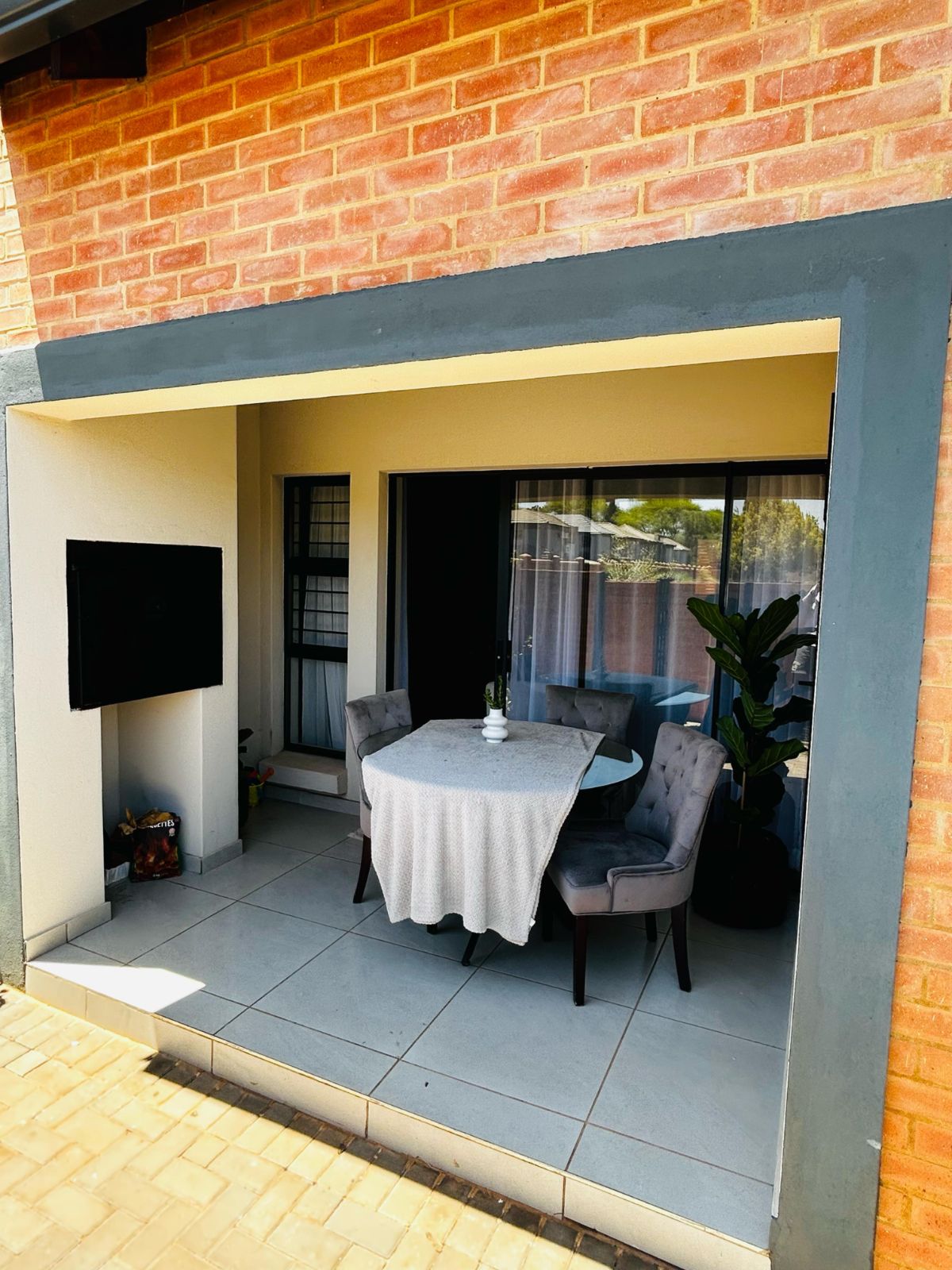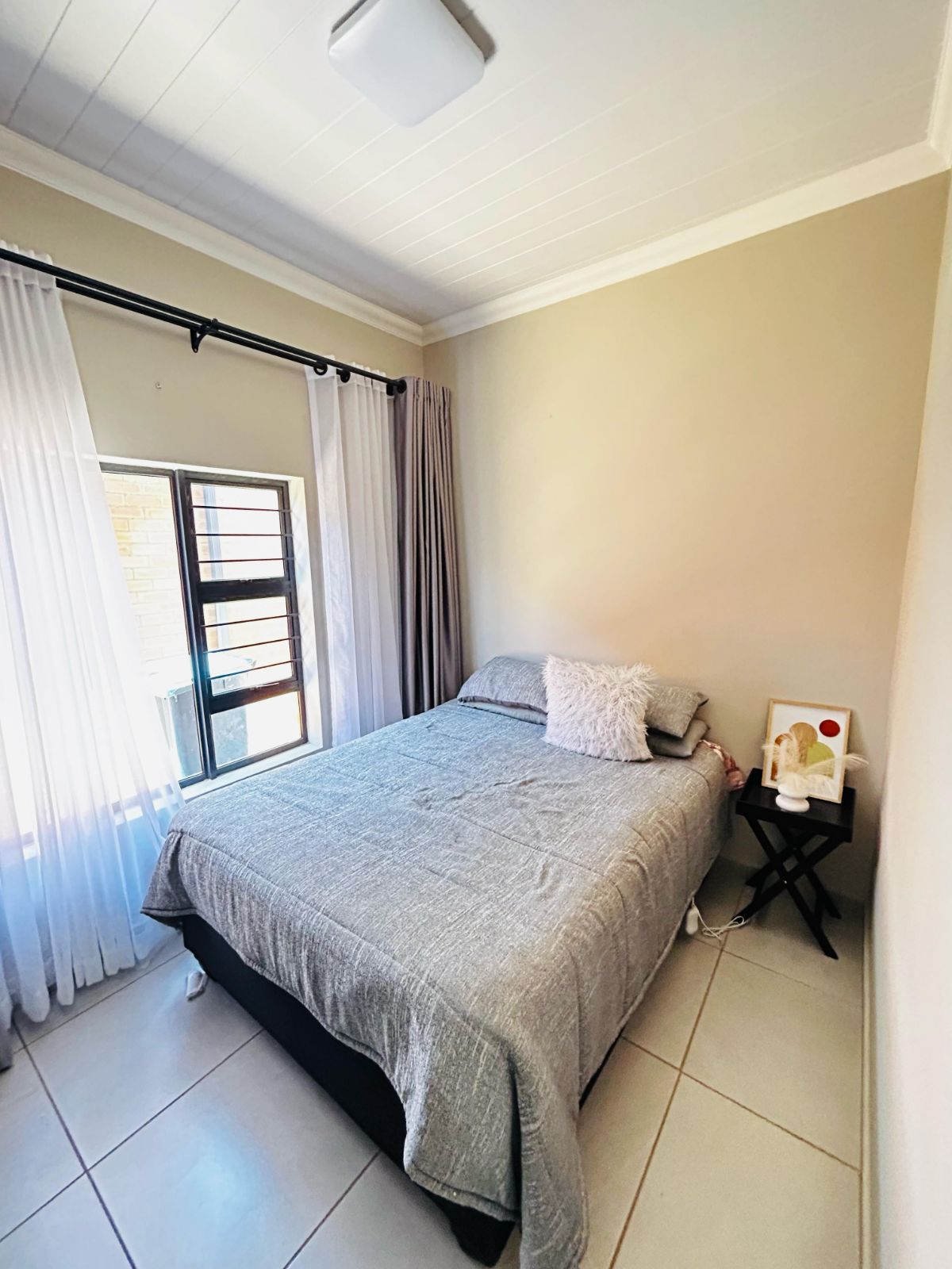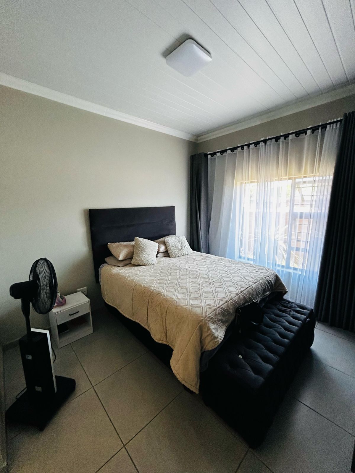 This beautiful home in the secure Royal Blue Sky Estate offers the perfect combination of style and comfort. Featuring 2 spacious bedrooms and 2 bathrooms – one with a tub for relaxation and the other with a sleek shower – it caters to every lifestyle need. The modern kitchen flows effortlessly into the dining area, creating an inviting space for family meals and entertaining. A well-kept garden surrounds the home, while the private braai area and lapa provide the ideal spot for outdoor gatherings. With a double garage and bright living spaces, this property is designed for convenience and modern living, making it the perfect choice for those seeking both comfort and security.
