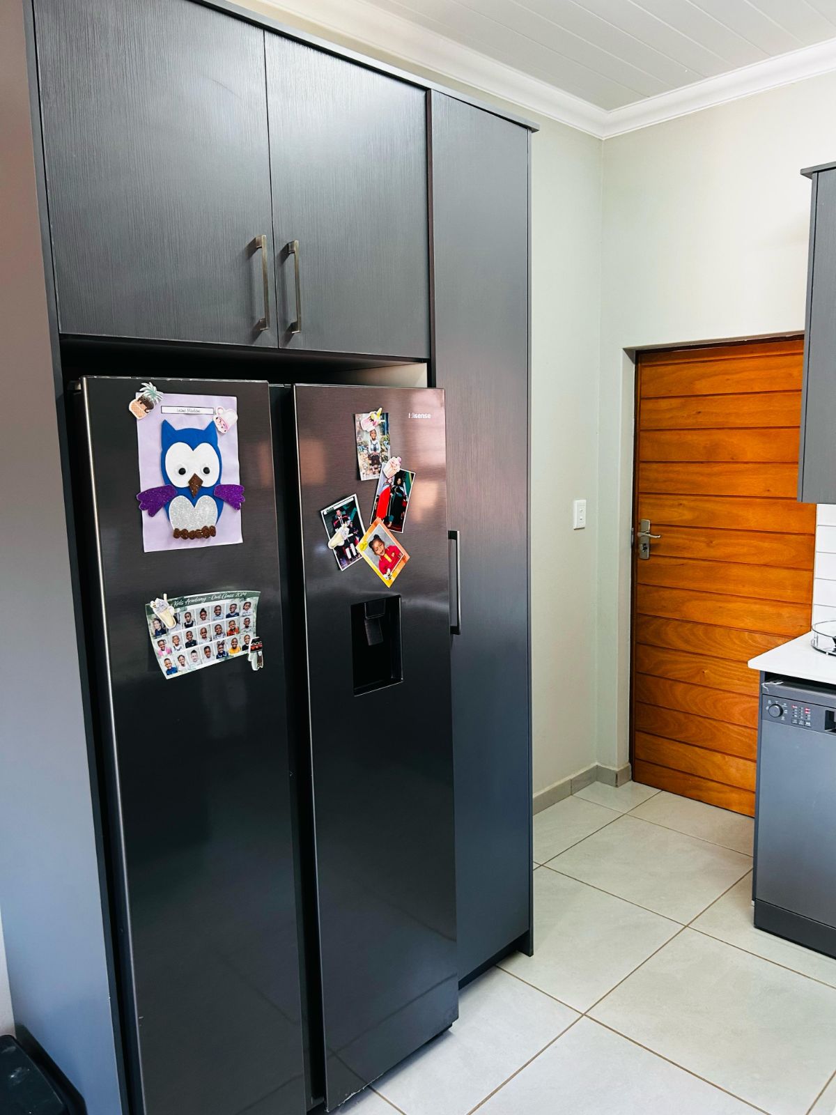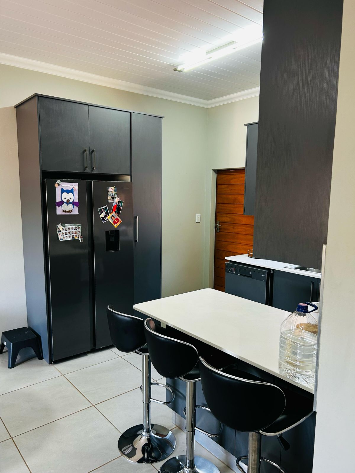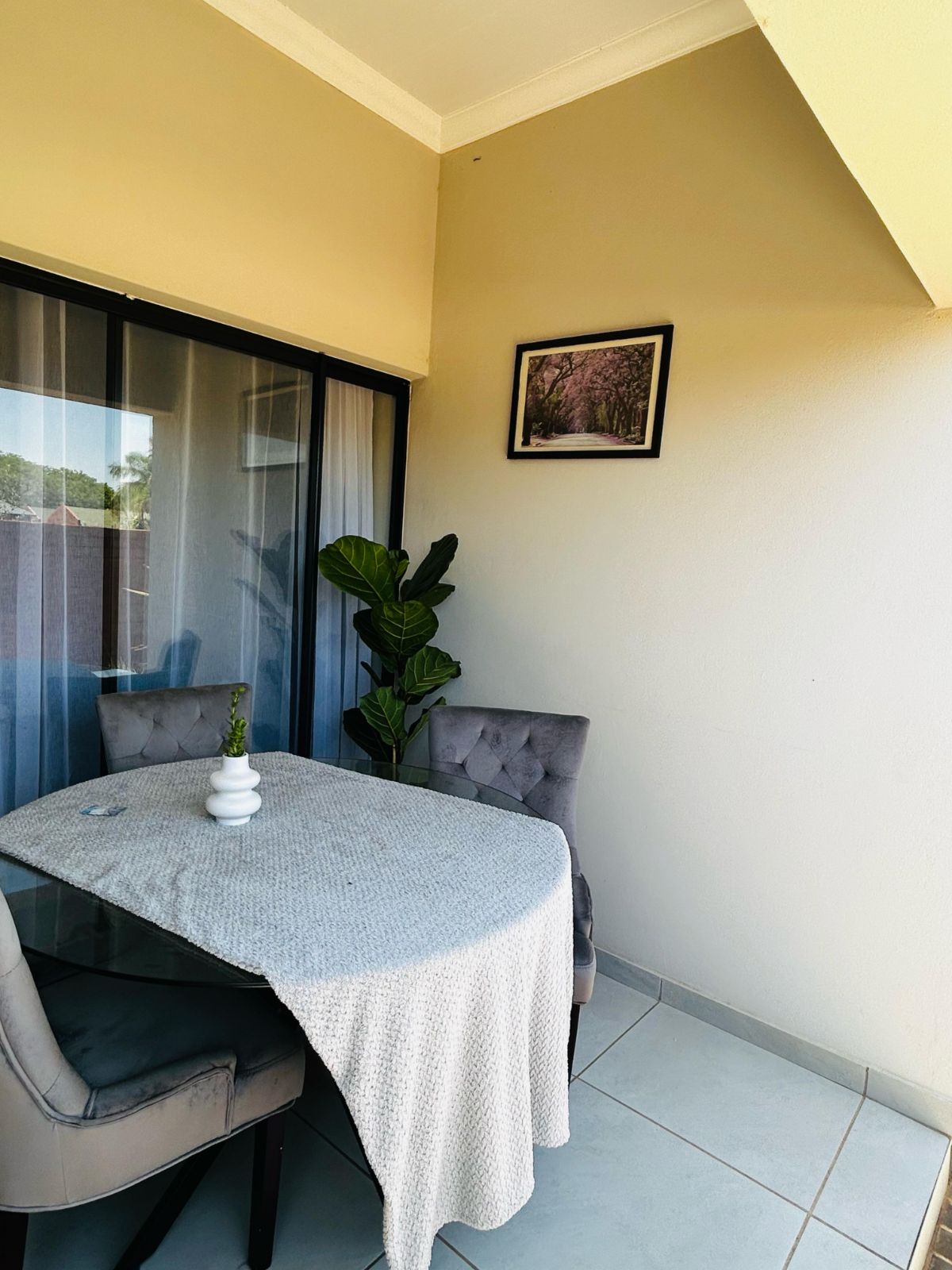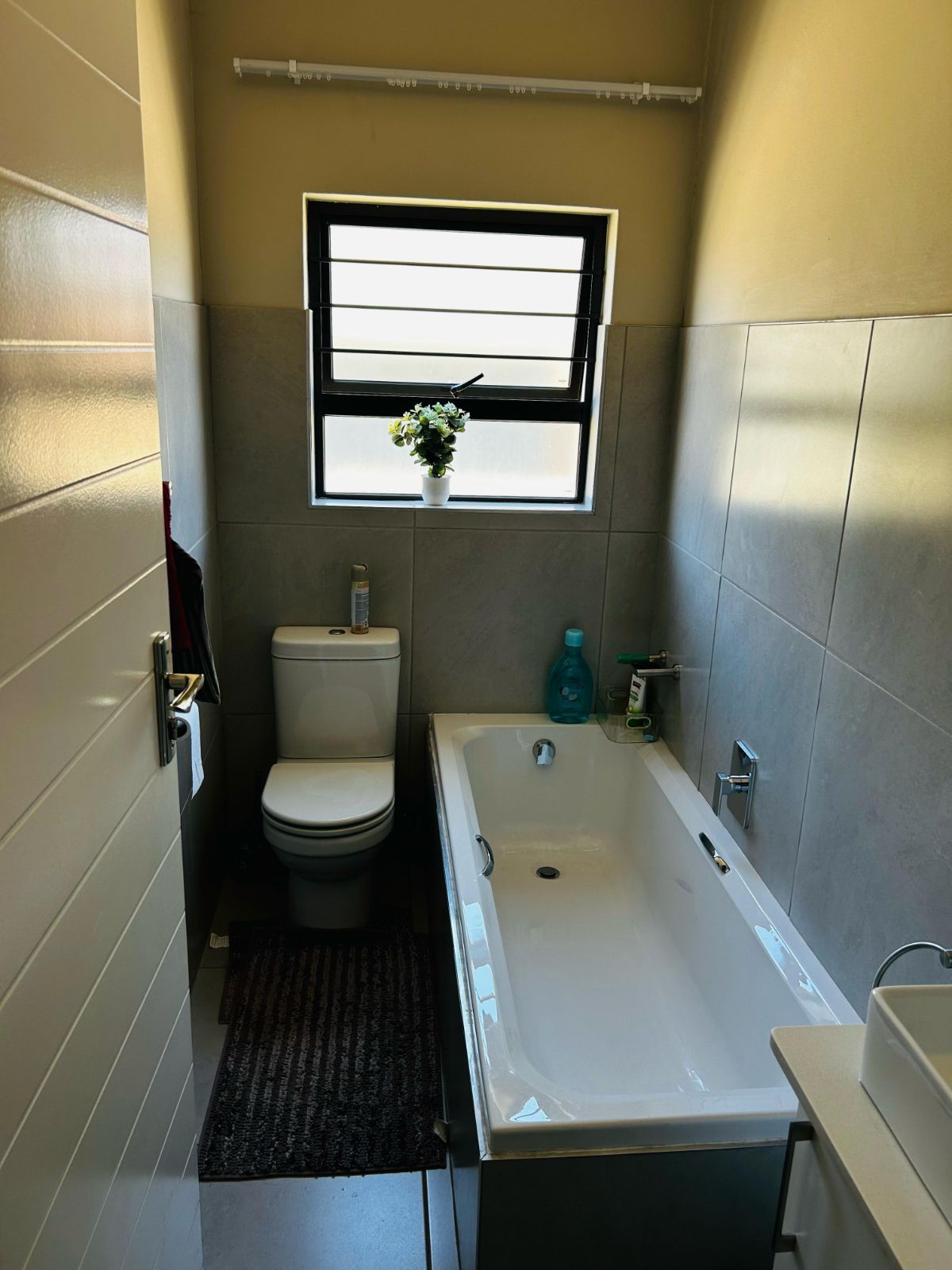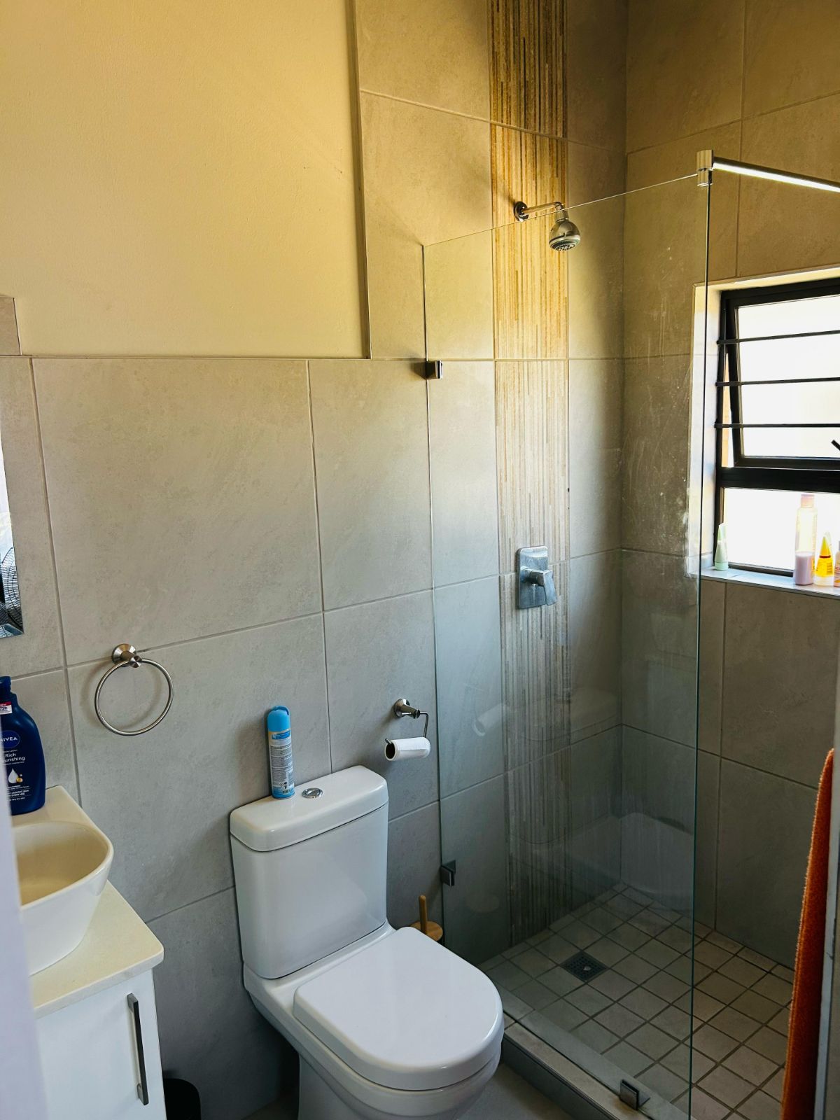 This beautiful home in the secure Royal Blue Sky Estate offers the perfect combination of style and comfort. Featuring 2 spacious bedrooms and 2 bathrooms – one with a tub for relaxation and the other with a sleek shower – it caters to every lifestyle need. The modern kitchen flows effortlessly into the dining area, creating an inviting space for family meals and entertaining. A well-kept garden surrounds the home, while the private braai area and lapa provide the ideal spot for outdoor gatherings. With a double garage and bright living spaces, this property is designed for convenience and modern living, making it the perfect choice for those seeking both comfort and security.