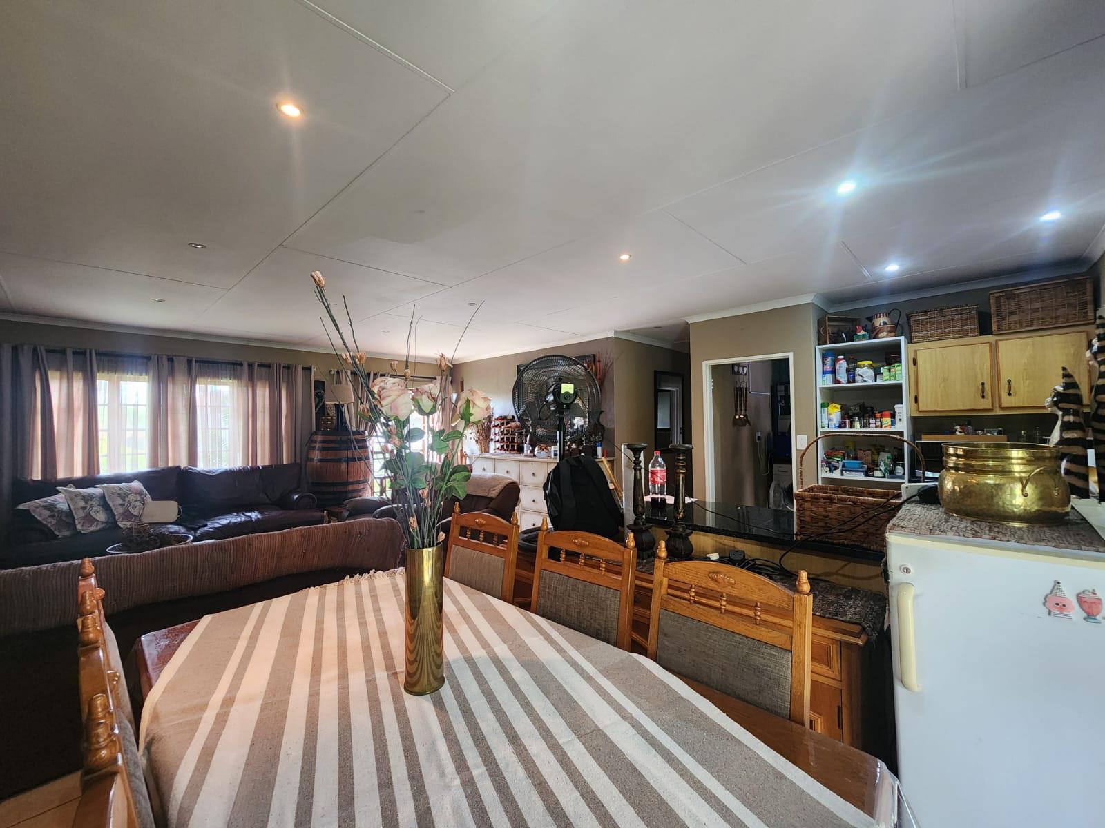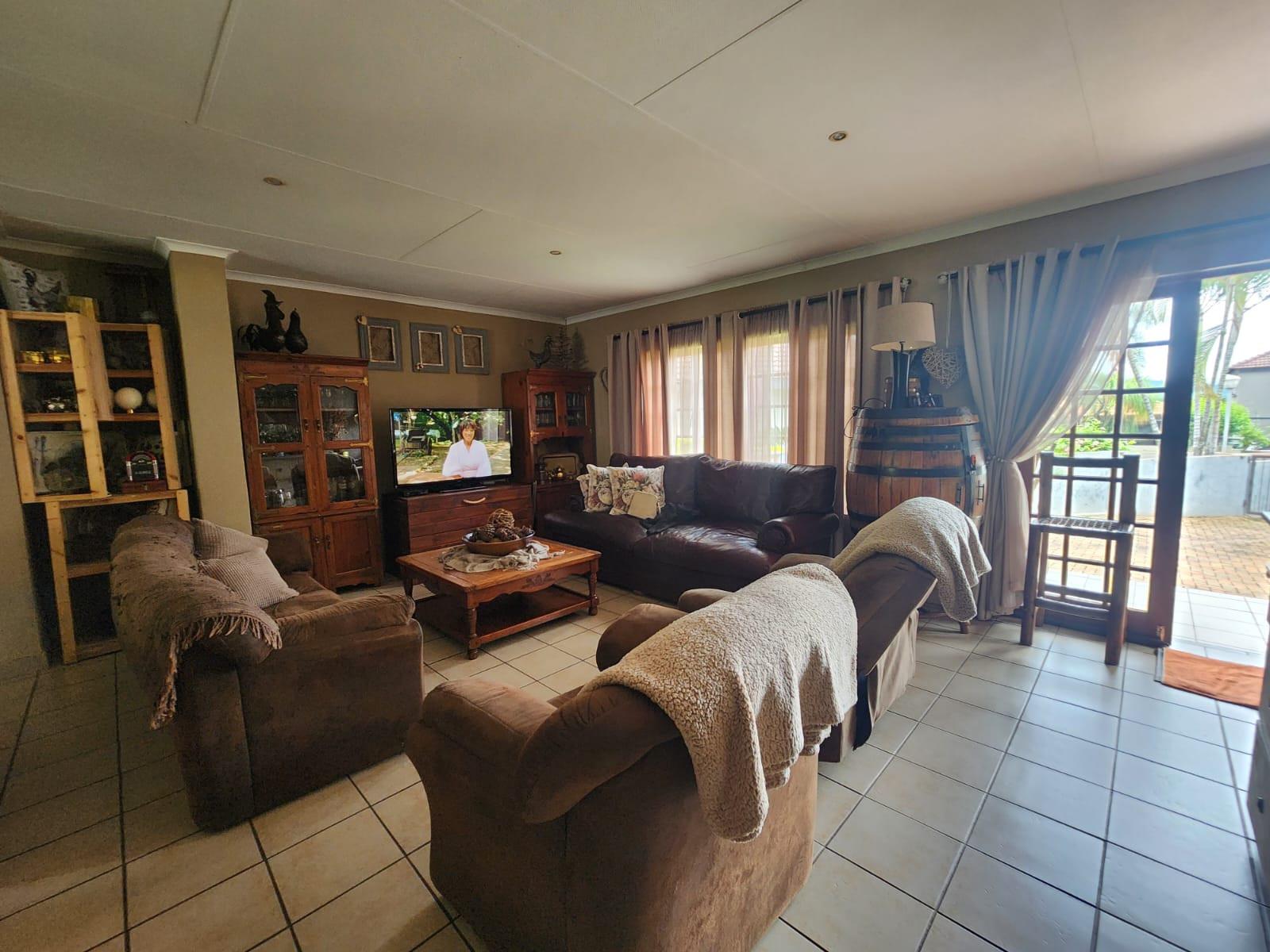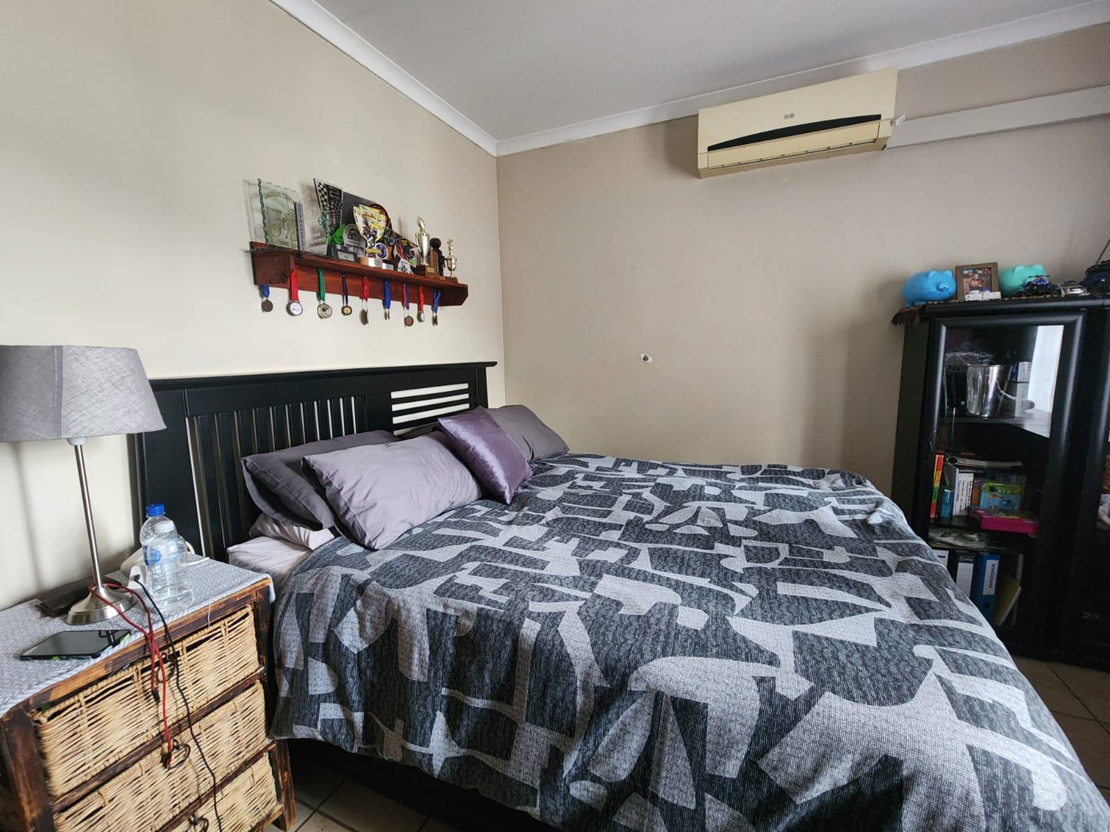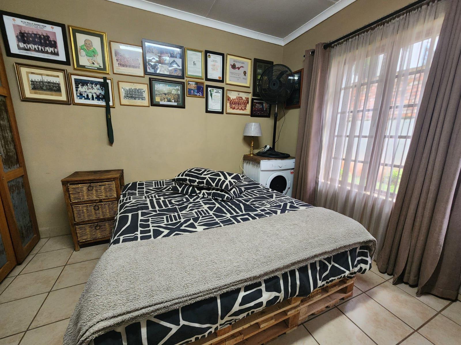 The property offers three tiled bedrooms with built-in cupboards. The main bedroom is en-suite with a shower, toilet and basin, while the second bathroom includes a bath and basin, with a separate toilet for added convenience.