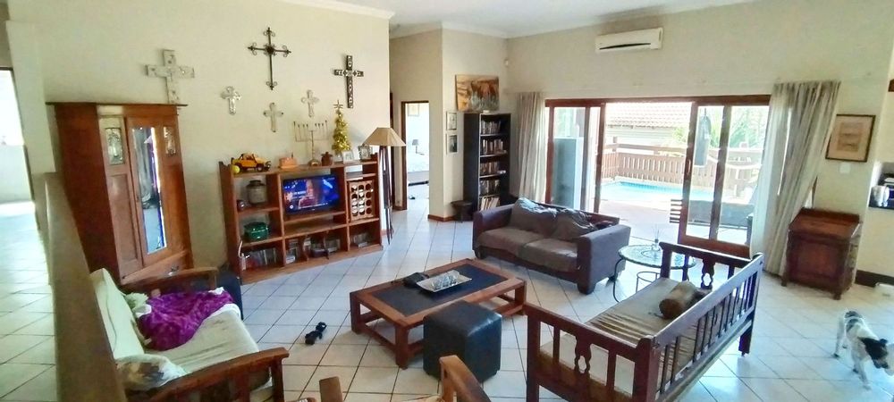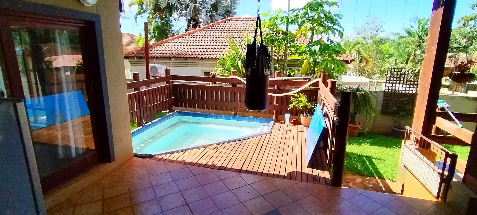 Outdoor Living at Its Best – The lounge and kitchen open onto a private patio, complete with a built-in braai and splash pool—perfect for entertaining or relaxing with family.