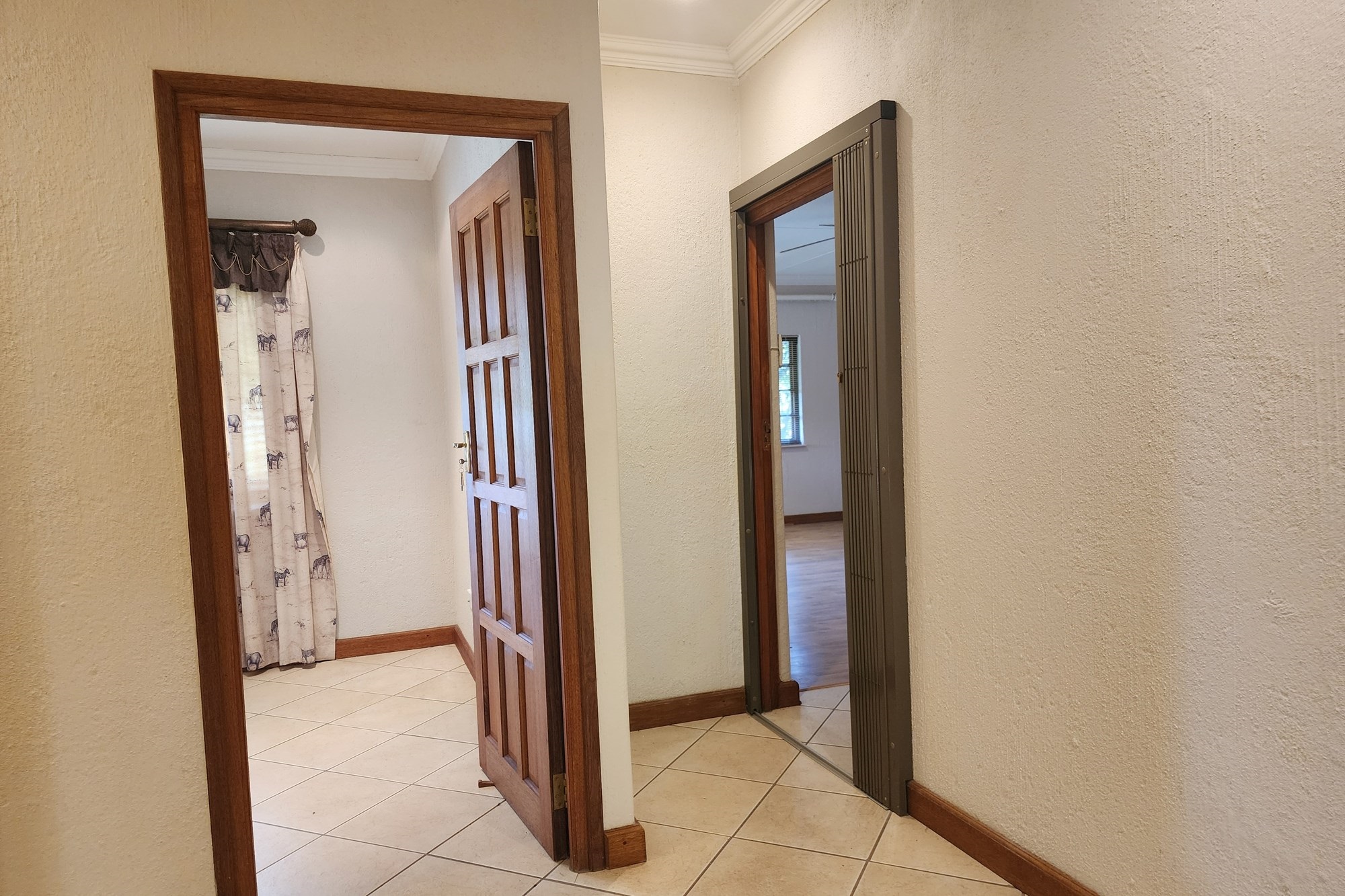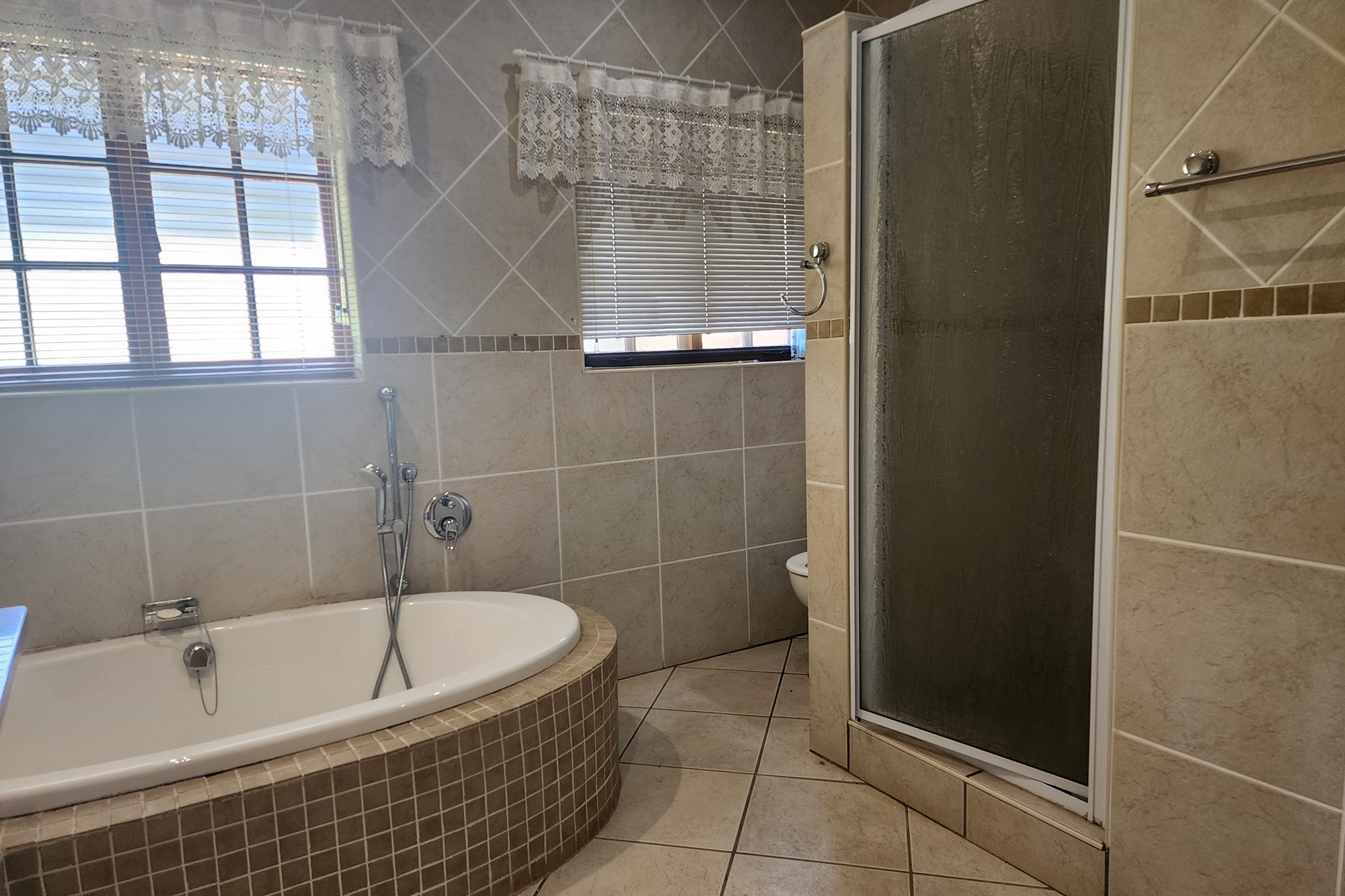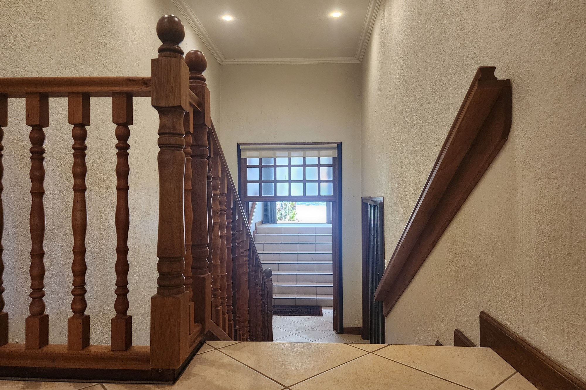 An expansive enclosed patio with stacker doors seamlessly extends the living areas outdoors, leading to a breathtaking, well-kept garden that serves as a peaceful retreat. The property sits on a spacious double stand of 855m2, offering ample space to enjoy, while the 460m2 home provides generous proportions for comfortable living.
