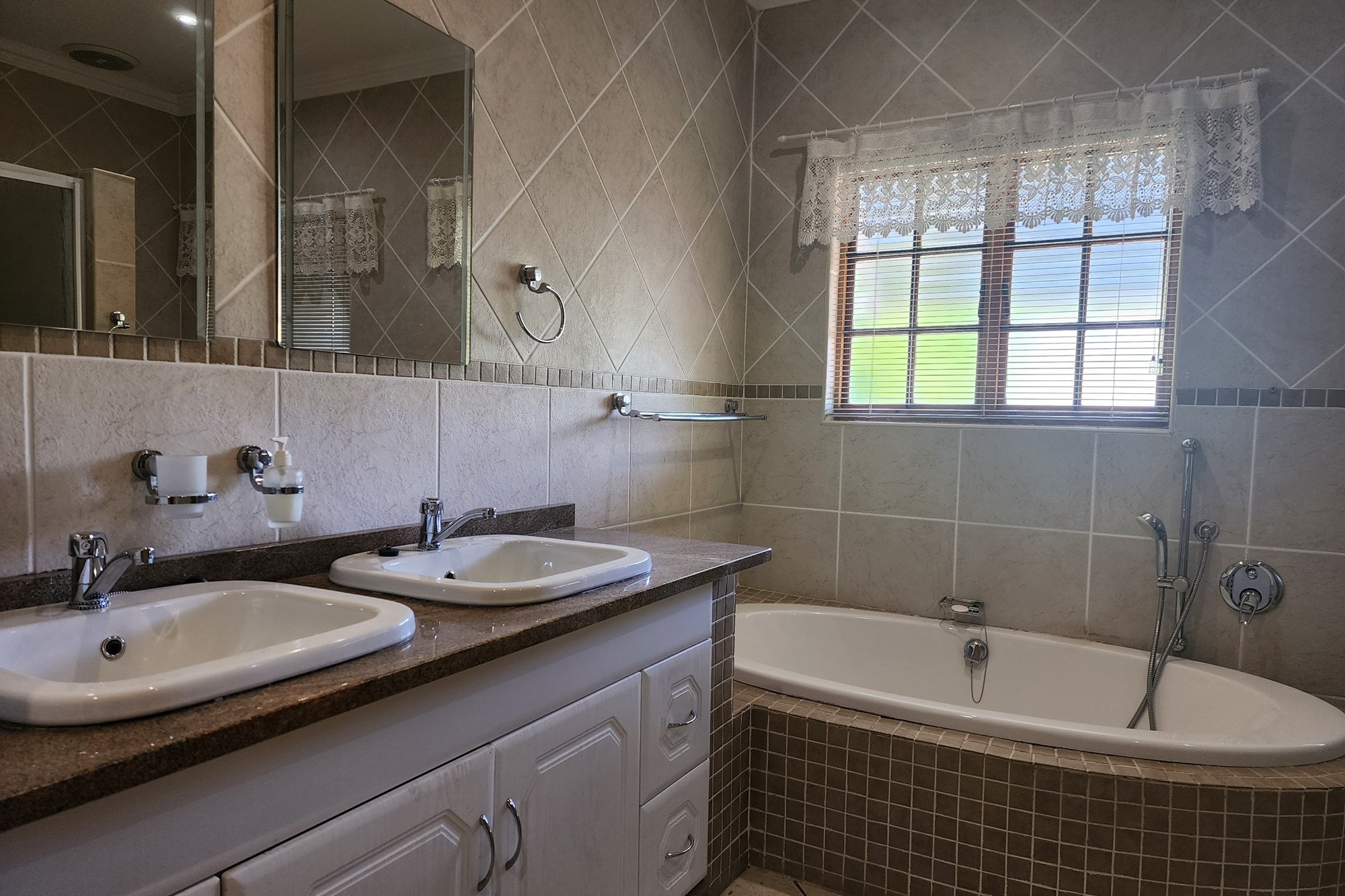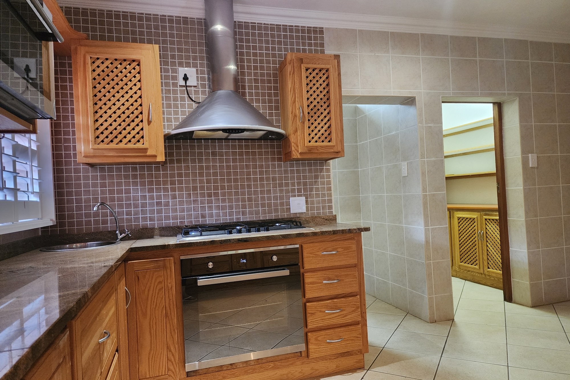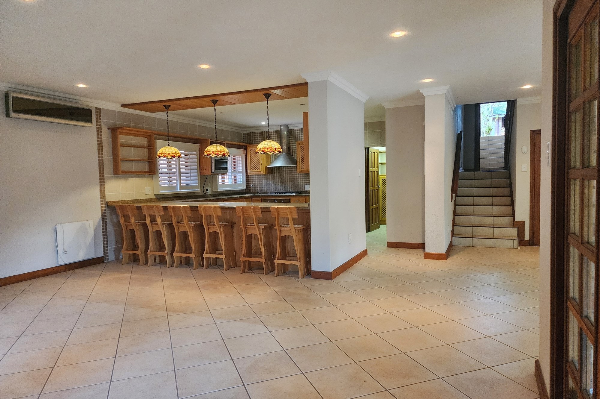 The home features three and a half beautifully appointed bathrooms, a private study with a walk-in safe, and three generous living areas that create a bright and inviting atmosphere. The well-equipped kitchen, complete with a scullery, pantry, and laundry room, is a dream for those who enjoy cooking and entertaining.