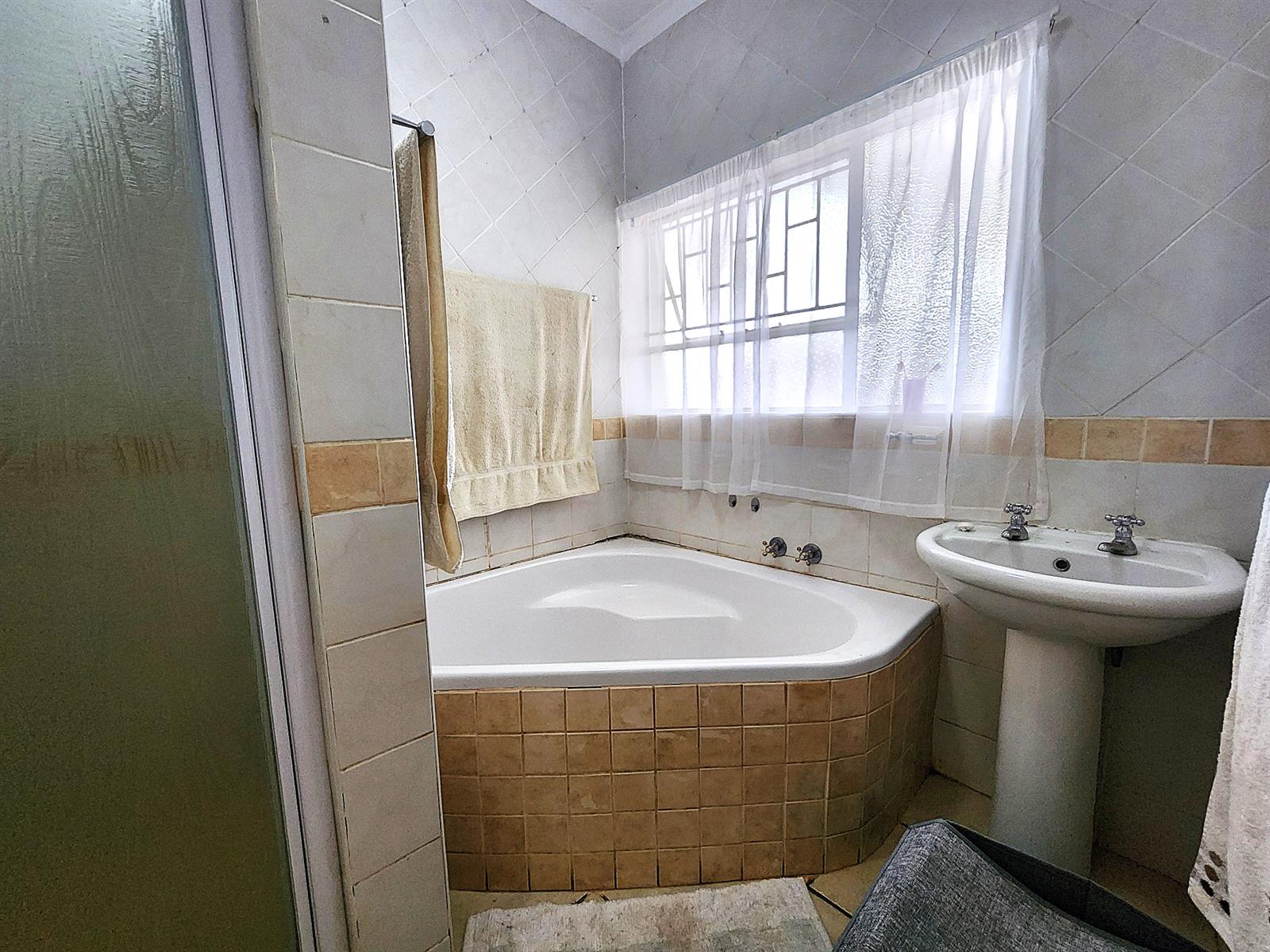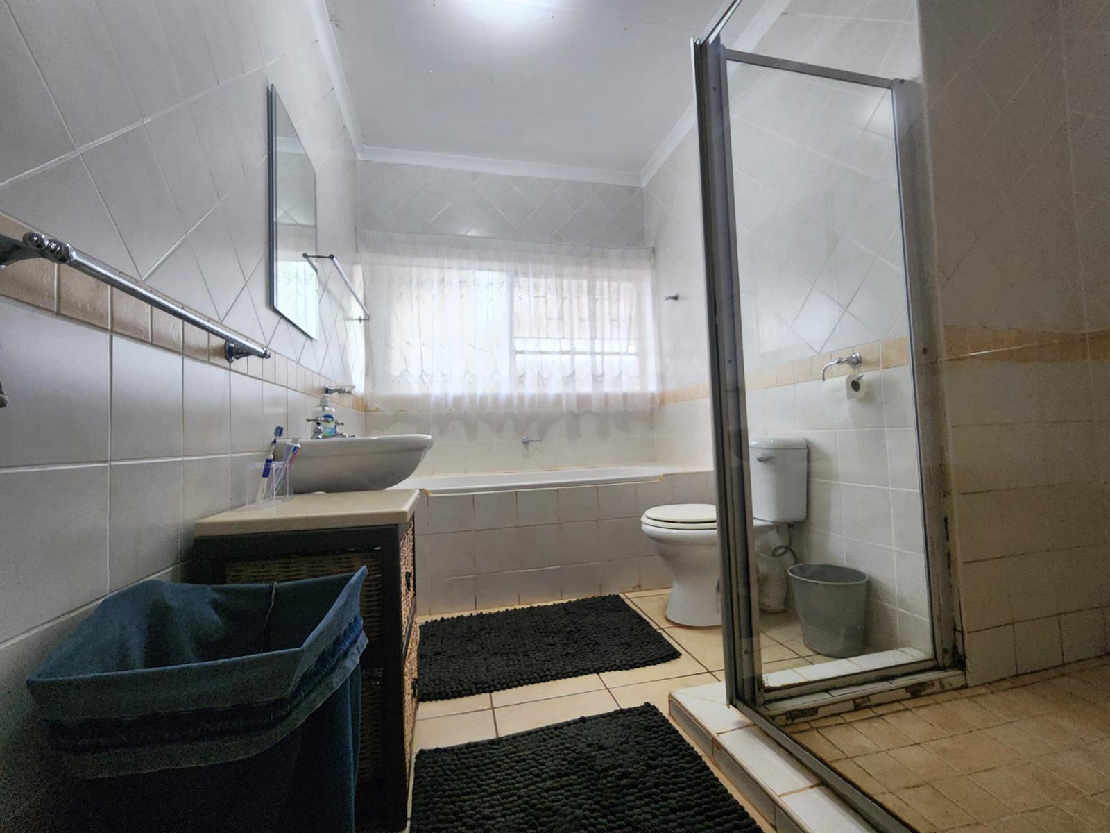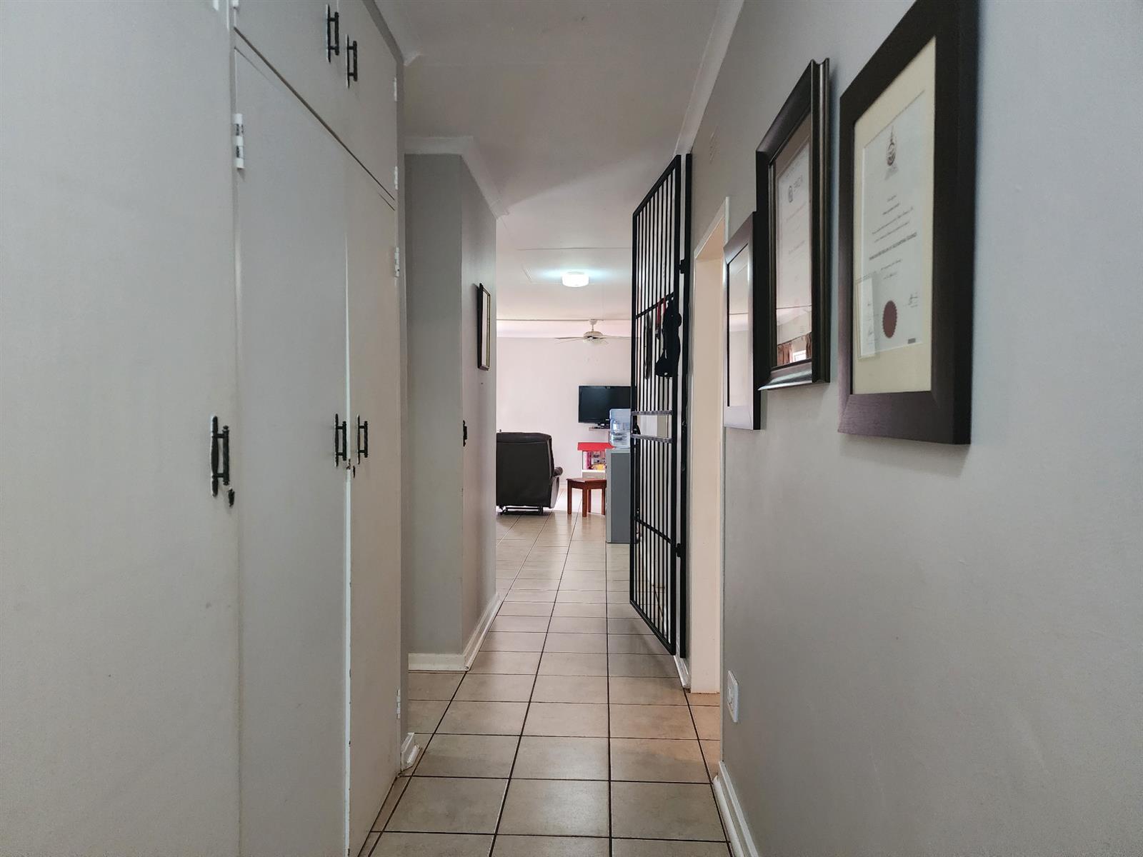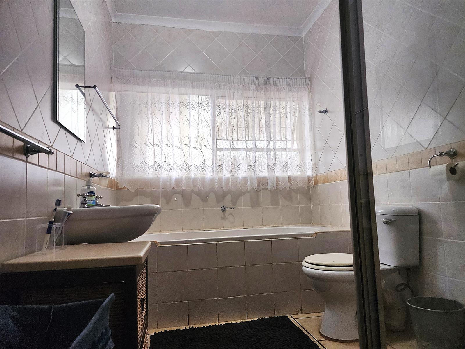 Inside, you’ll find four spacious bedrooms, all fitted with built-in cupboards, with the main bedroom offering air conditioning and an en-suite bathroom. A second full bathroom and guest toilet cater to family and guests with ease.