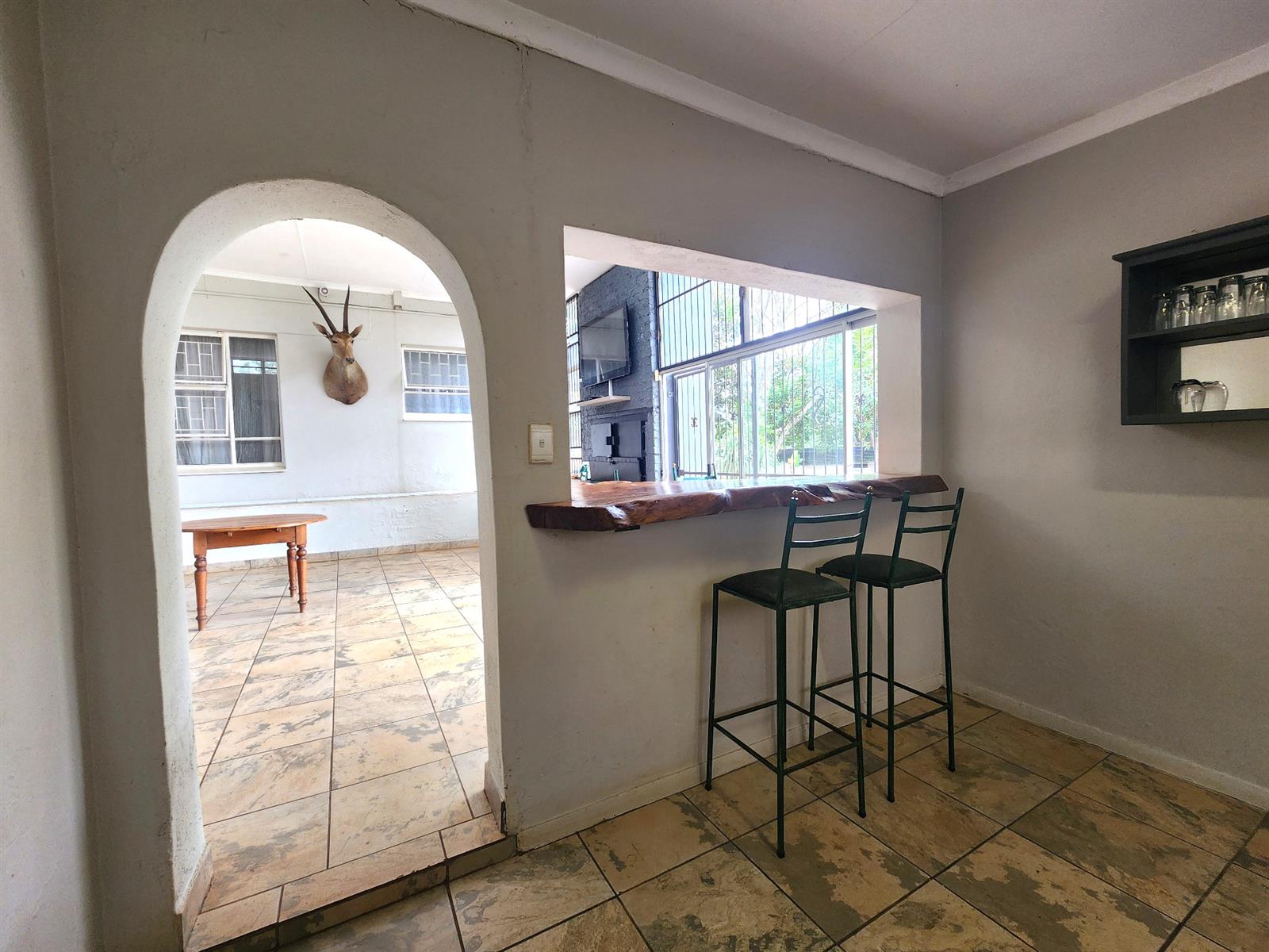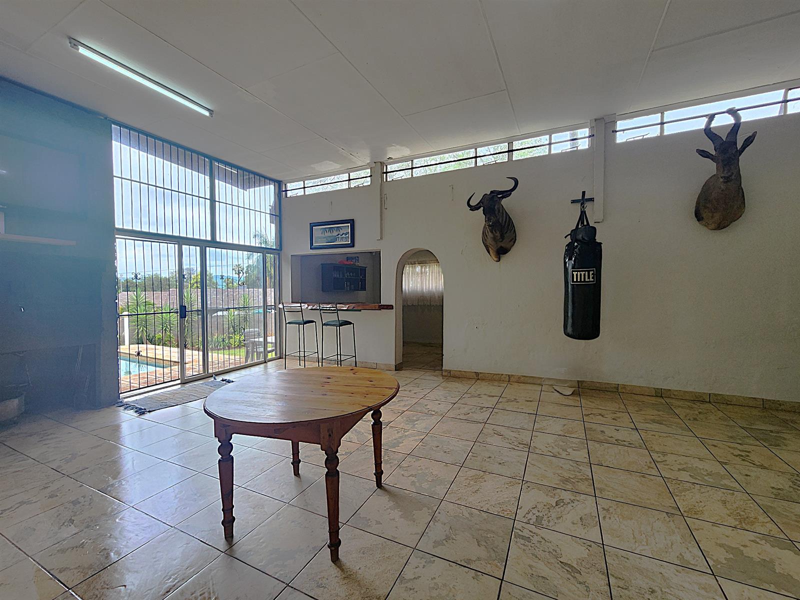Step outside and discover a true entertainer’s paradise — a massive covered patio with built-in braai and bar counter, overlooking a sparkling pool and lush, pet-friendly garden with ample space for children to play.